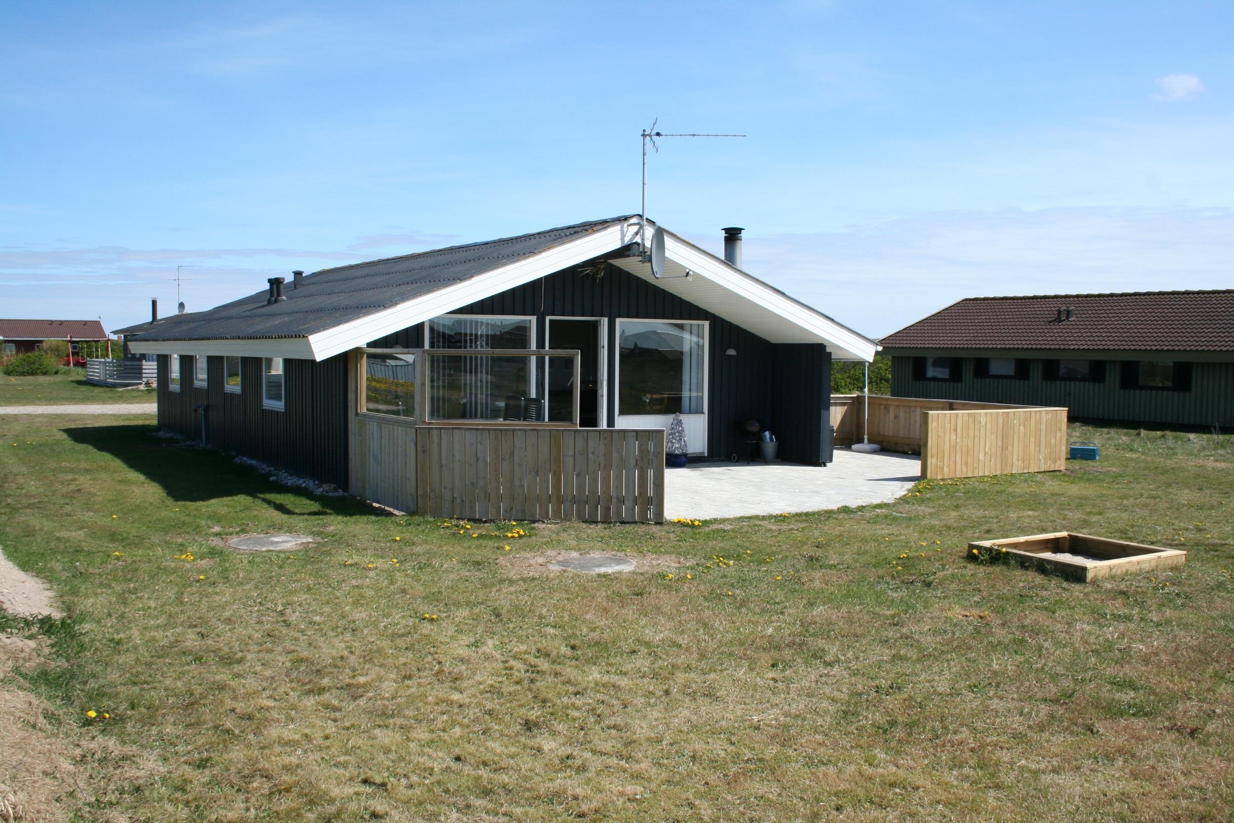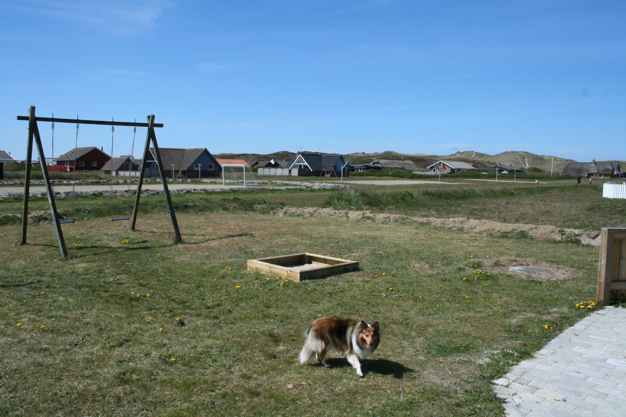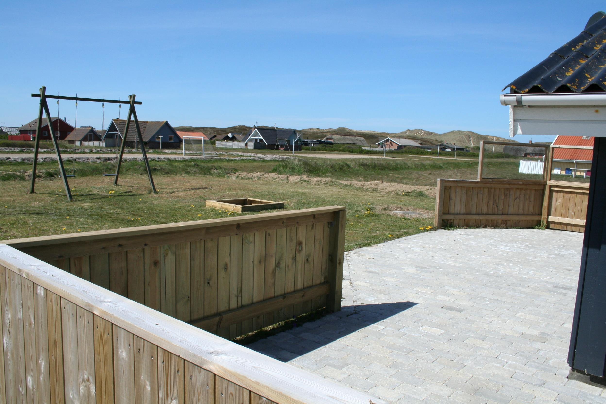 Husets sydvendte terrasse kan give masser af sol dagen igennem og der er udgang direkte fra stuen. Der er grill, havemøbler og 2 solvogne, så her kan man fornøje sig i mange timer. Børnene kan hygge sig i sandkassen eller gyngerne og er man flere så benyt beliggenheden ved siden af boldbanerne til at få nogle aktiviteter ind i ferien. Er man ikke til boldspil, så er havet kun 5 minutters gang væk og man kan her både bade, fiske, finde rav, flyve med drage eller tage på vandreture såvel korte som lange. Således anbefaler vi også gerne en gåtur rundt om Ferring Sø som er 10 kilometer hvor man kommer igennem masser af natur og kan få røde kinder i blæsten.