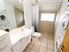 Badeværelset er forsynet med gulvvarme samt toilet, håndvask, bruser og indgang til saunaen.