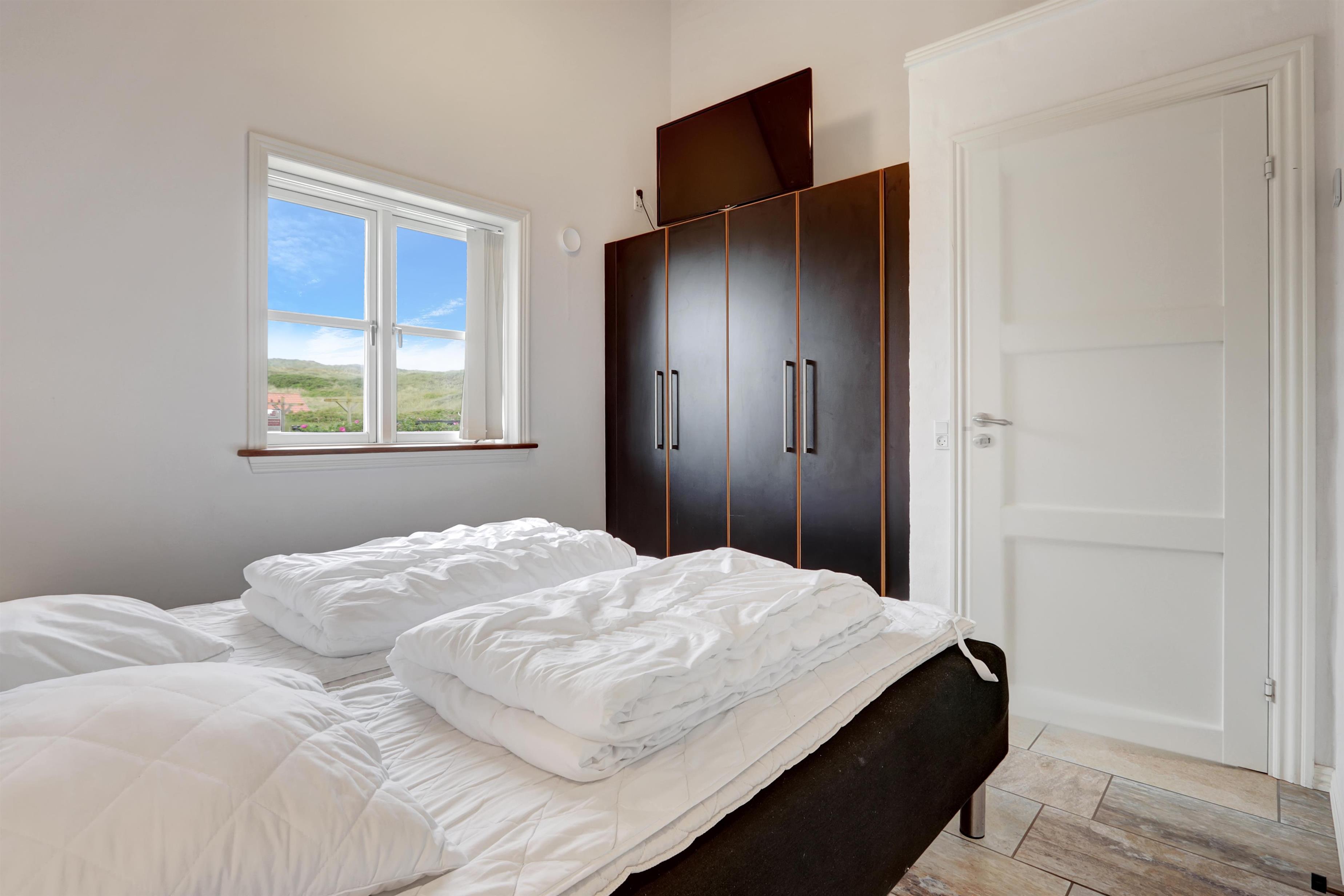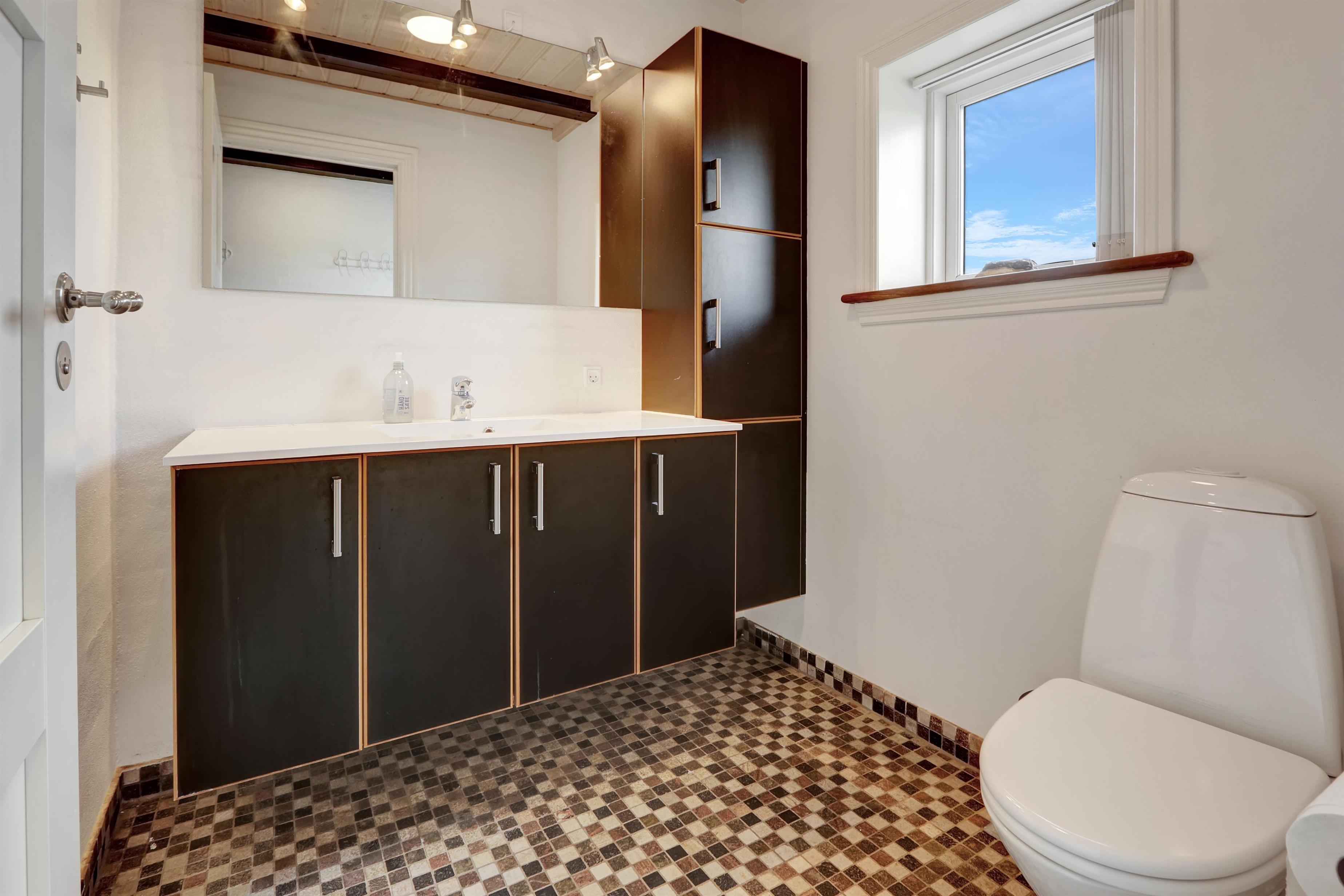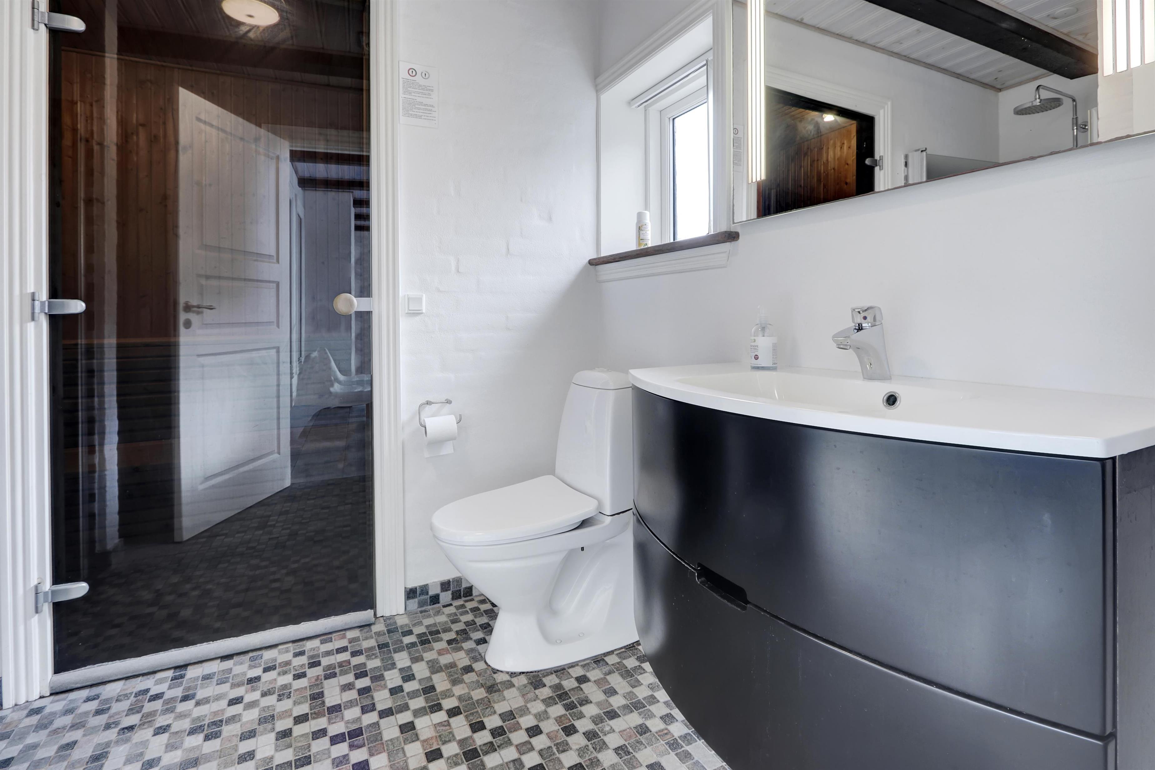 Tre moderne badeværelser med gulvvarme, vaskemaskine og tørretumbler sikrer optimal komfort og funktionalitet under hele opholdet. Huset er desuden udstyret med energivenligt luft-til-vand-anlæg, hvilket giver et lavt forbrug og skåner miljøet.