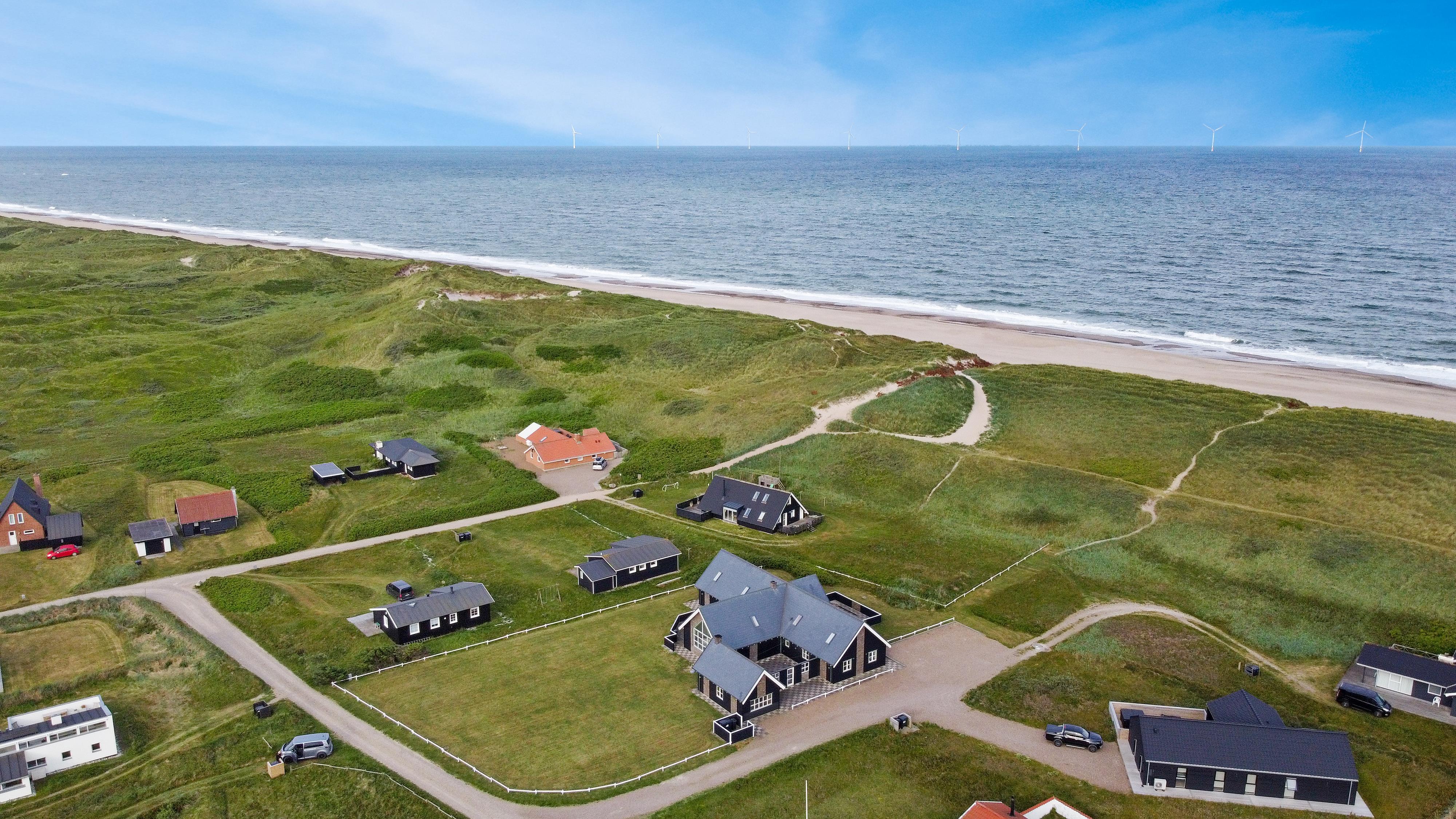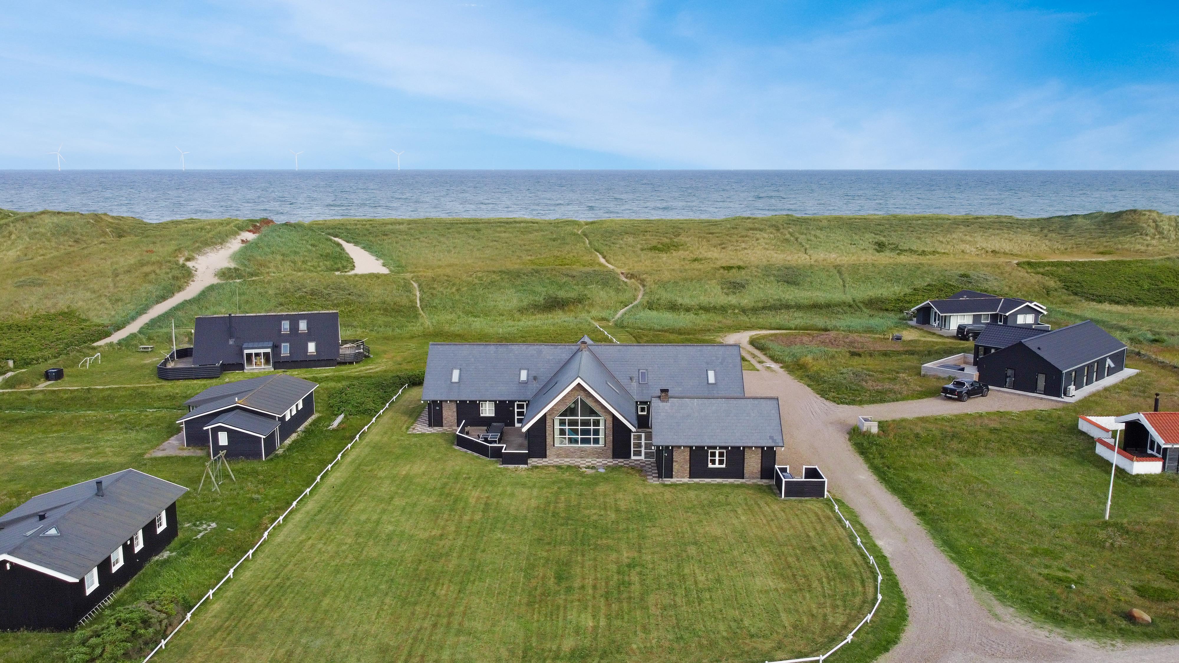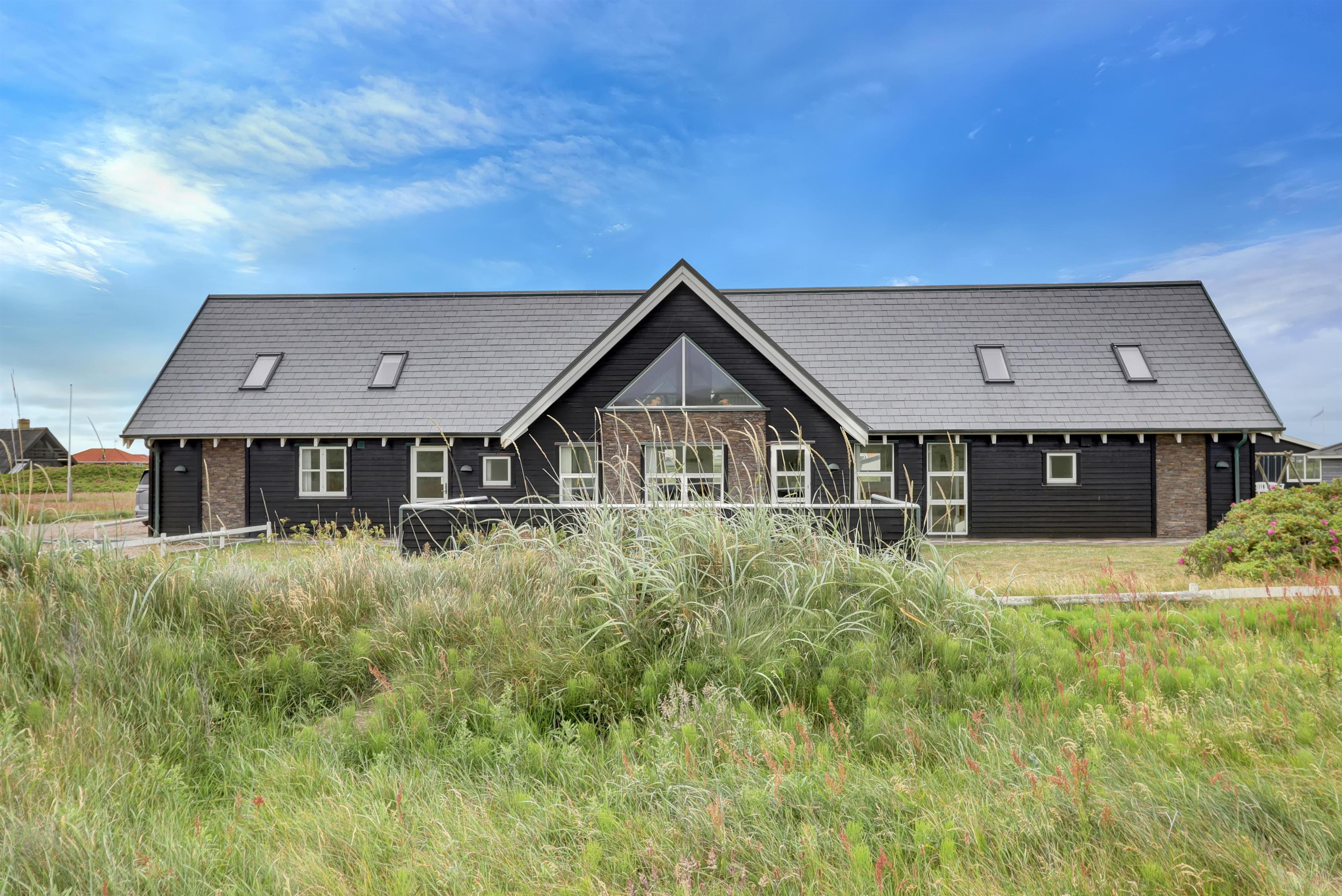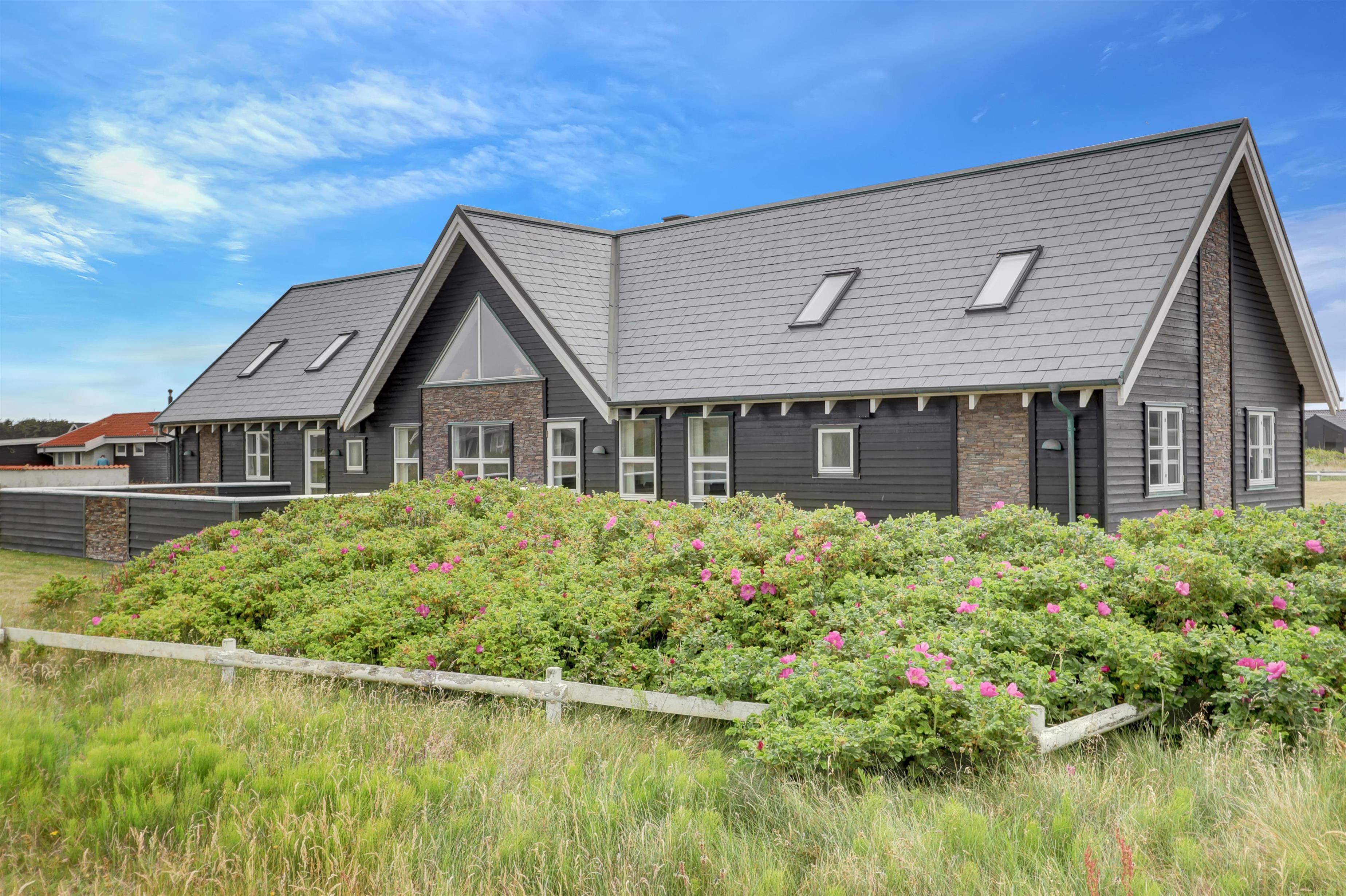 Velkommen til et helt unikt luksusferiehus i særklasse – opført i 2014 og ideelt beliggende tæt ved det brusende Vesterhav i det attraktive Vejlby Klit. Her får I 250 m² gennemført kvalitet og komfort, fordelt over to etager, og med plads til op til 20 gæster. Uanset om I er en storfamilie, flere vennepar eller kolleger på tur, sætter dette hus de perfekte rammer for uforglemmelige feriedage med både ro, nærvær og aktivitet i højsædet.