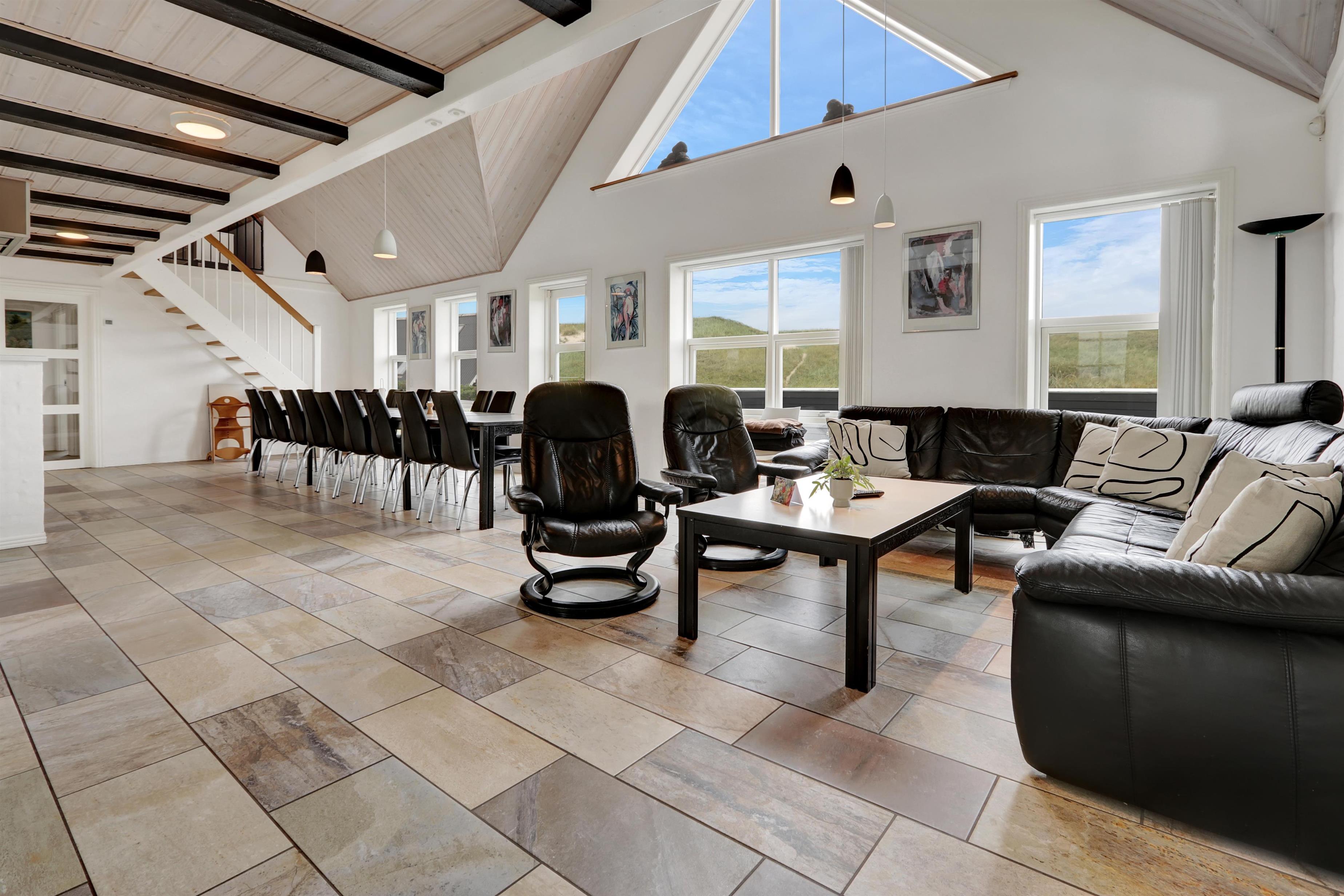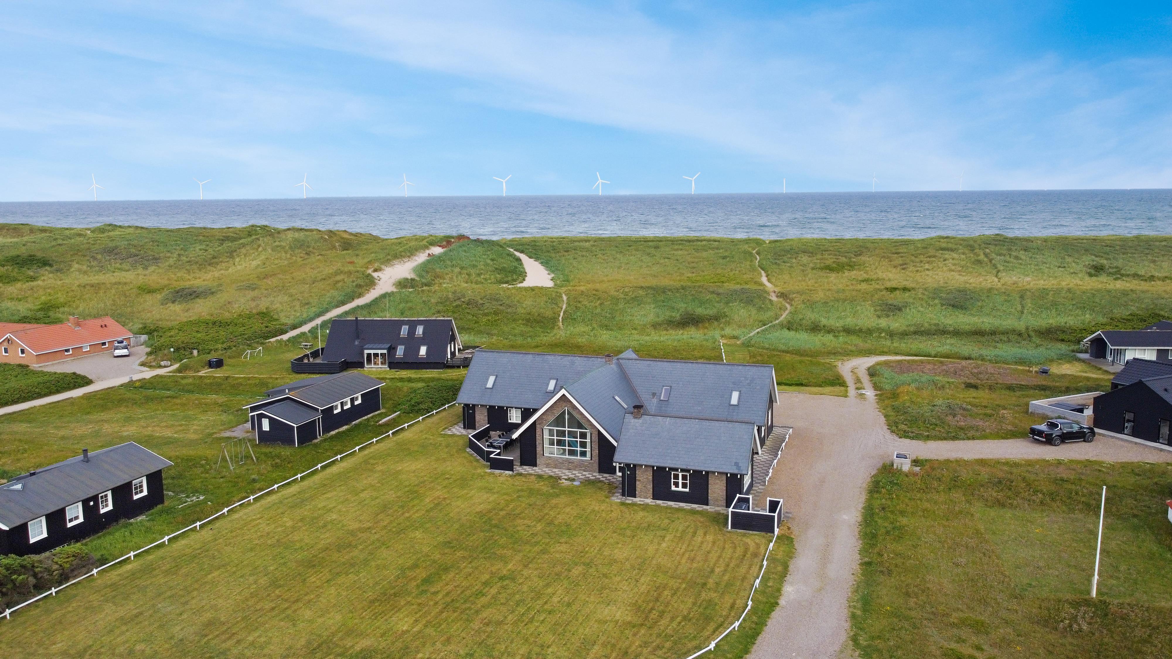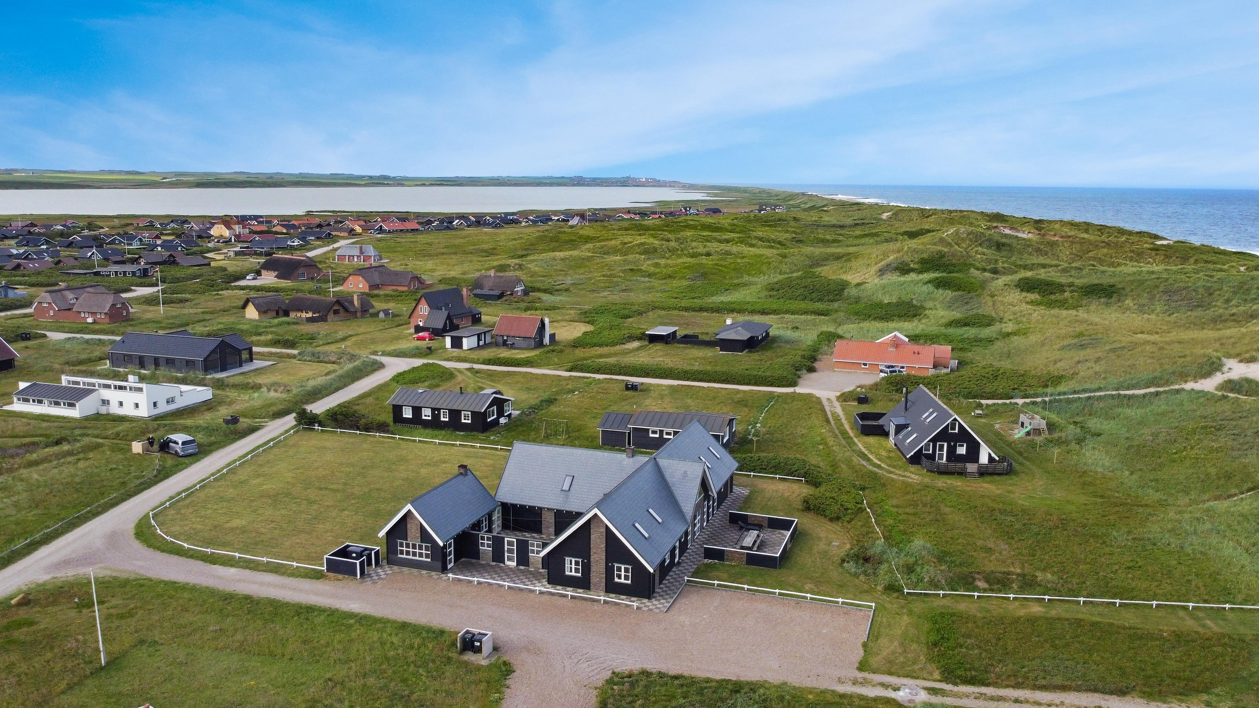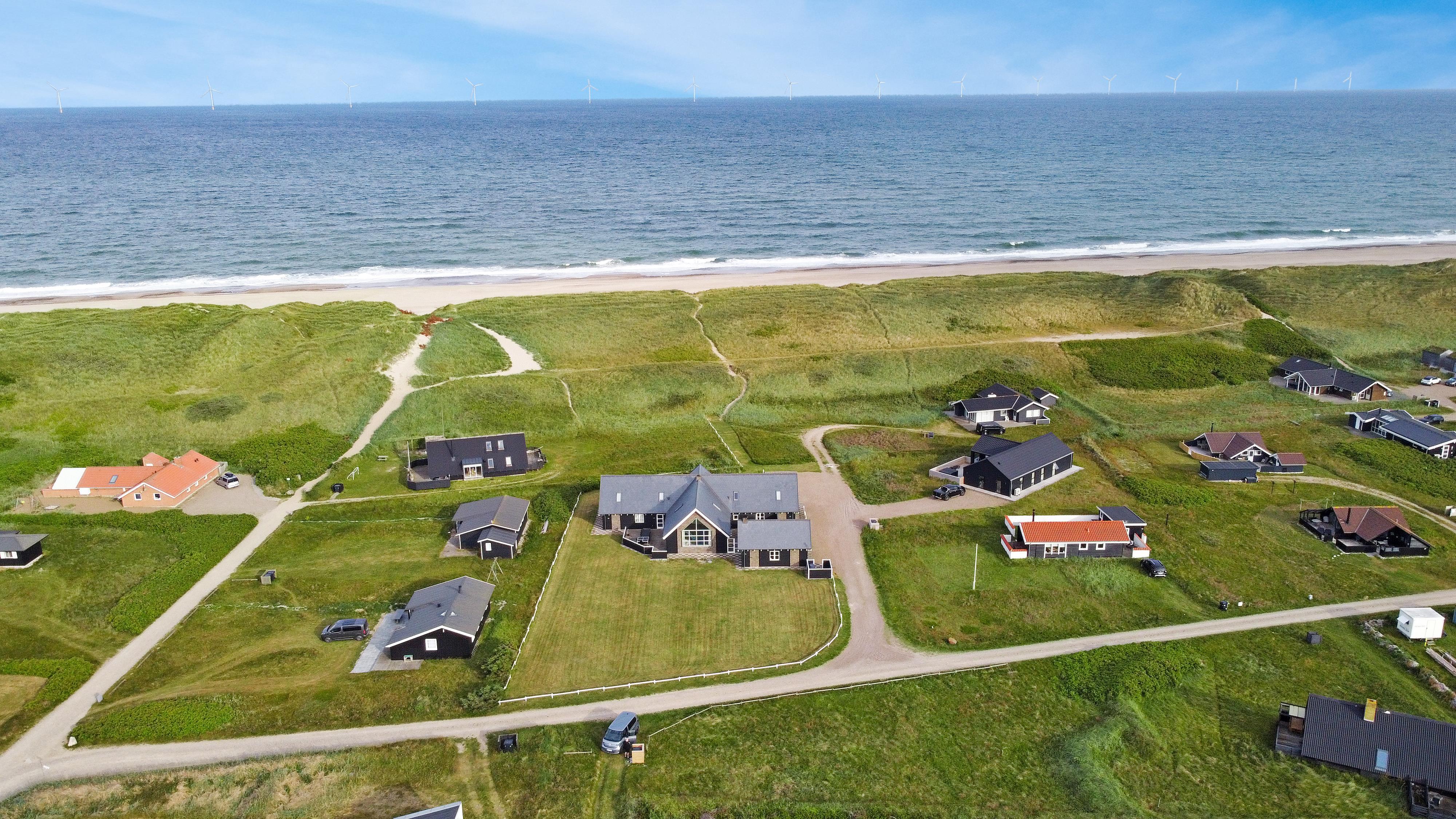 Velkommen til et helt unikt luksusferiehus i særklasse – opført i 2014 og ideelt beliggende tæt ved det brusende Vesterhav i det attraktive Vejlby Klit. Her får I 250 m² gennemført kvalitet og komfort, fordelt over to etager, og med plads til op til 20 gæster. Uanset om I er en storfamilie, flere vennepar eller kolleger på tur, sætter dette hus de perfekte rammer for uforglemmelige feriedage med både ro, nærvær og aktivitet i højsædet.