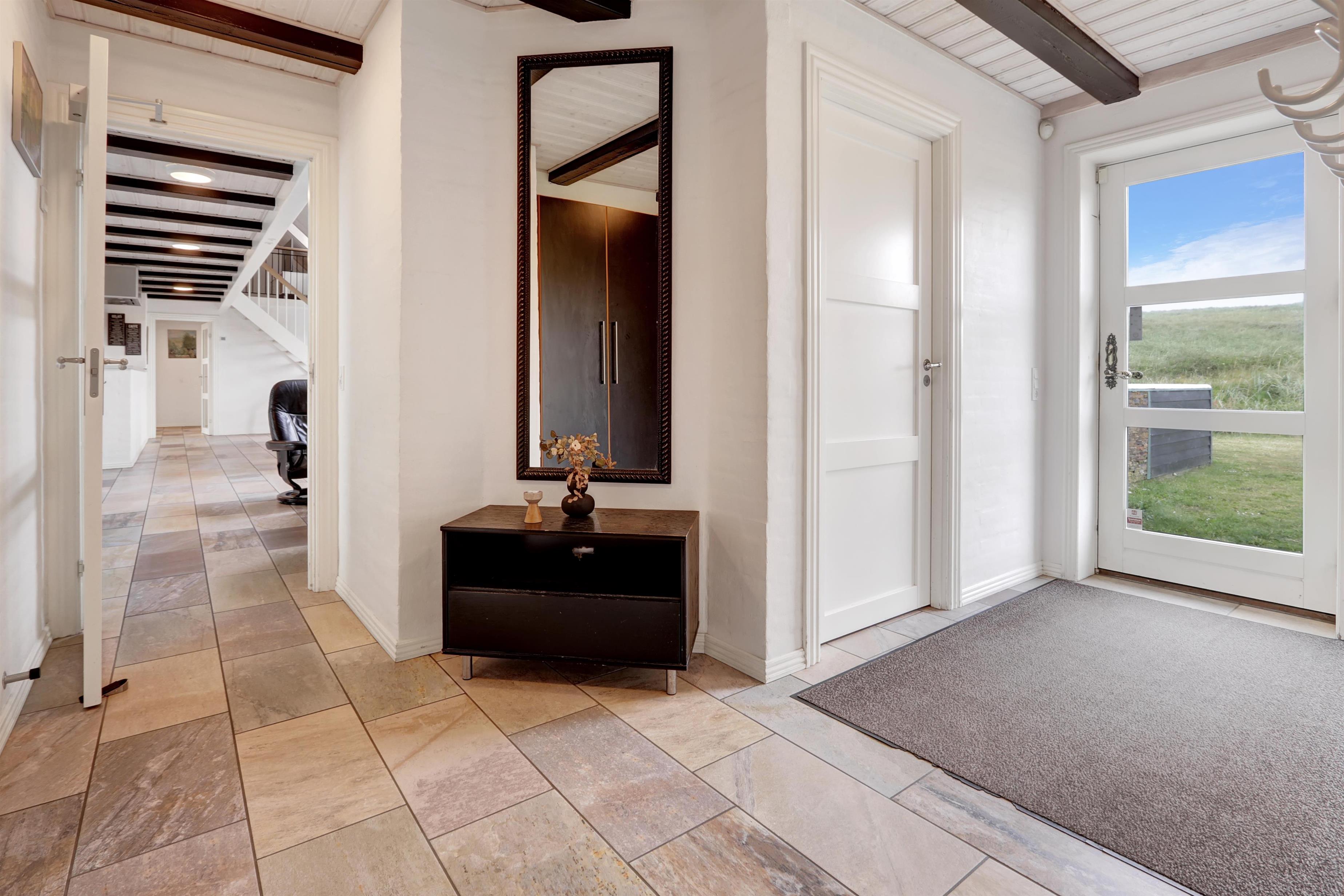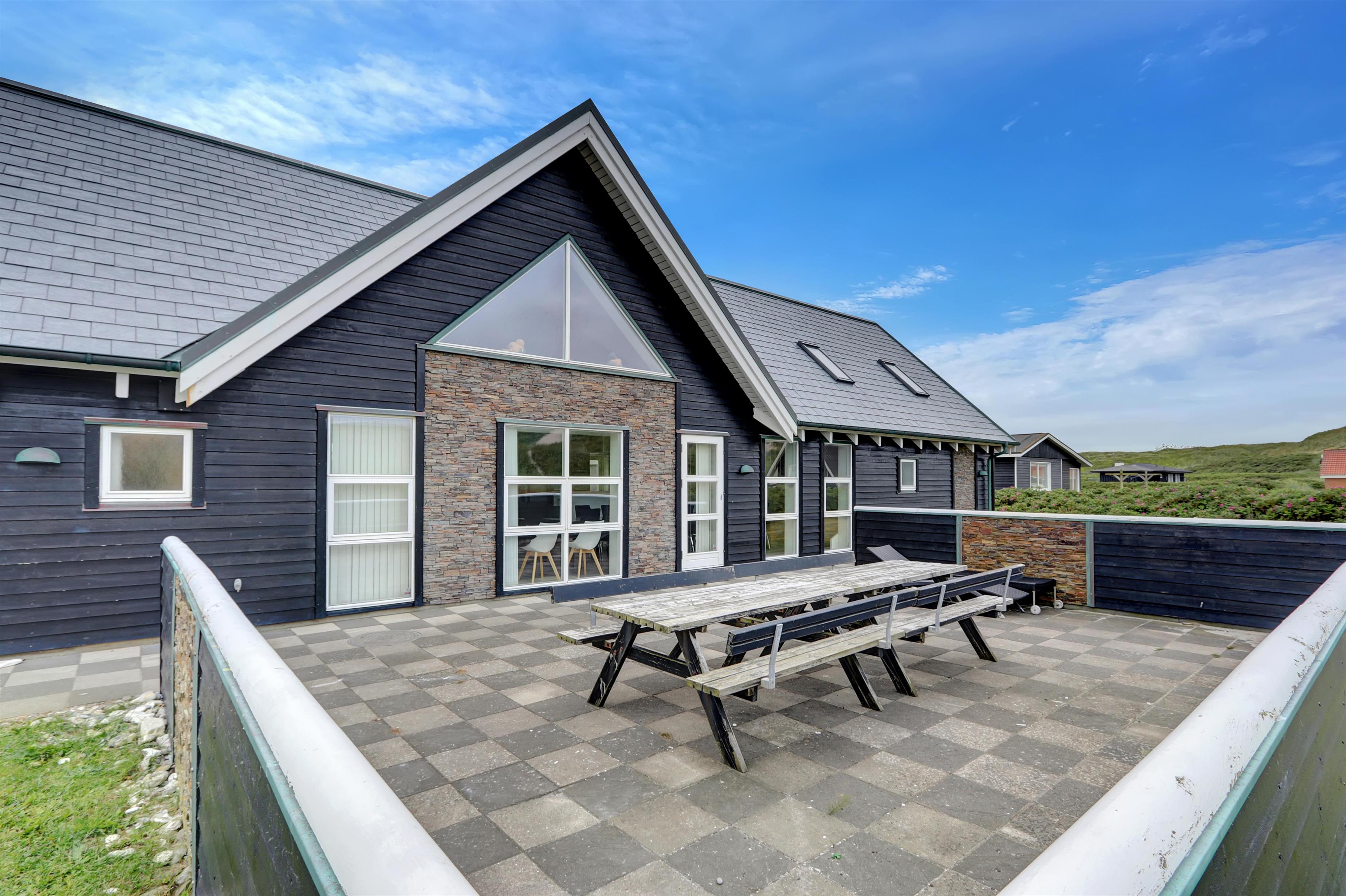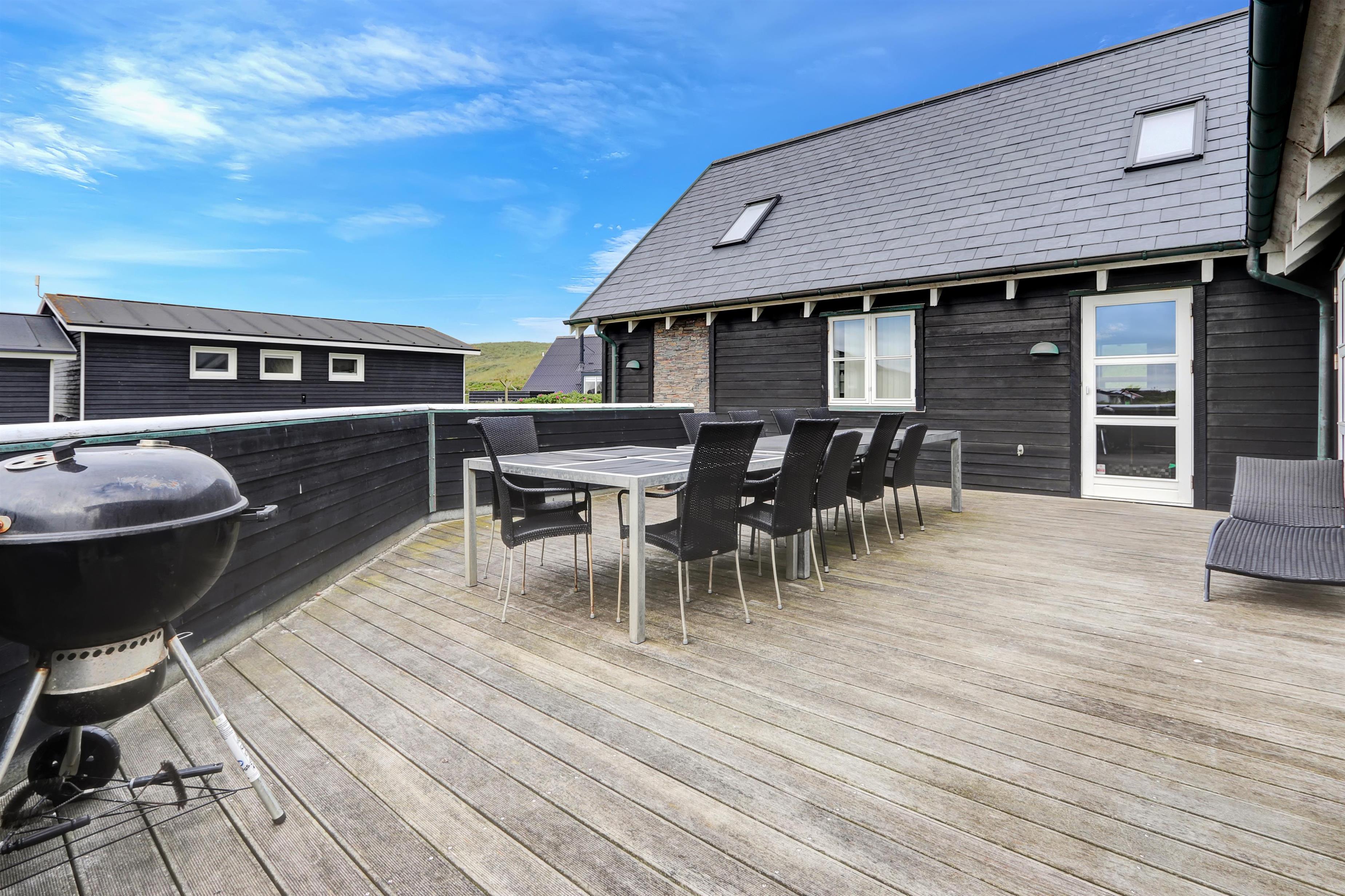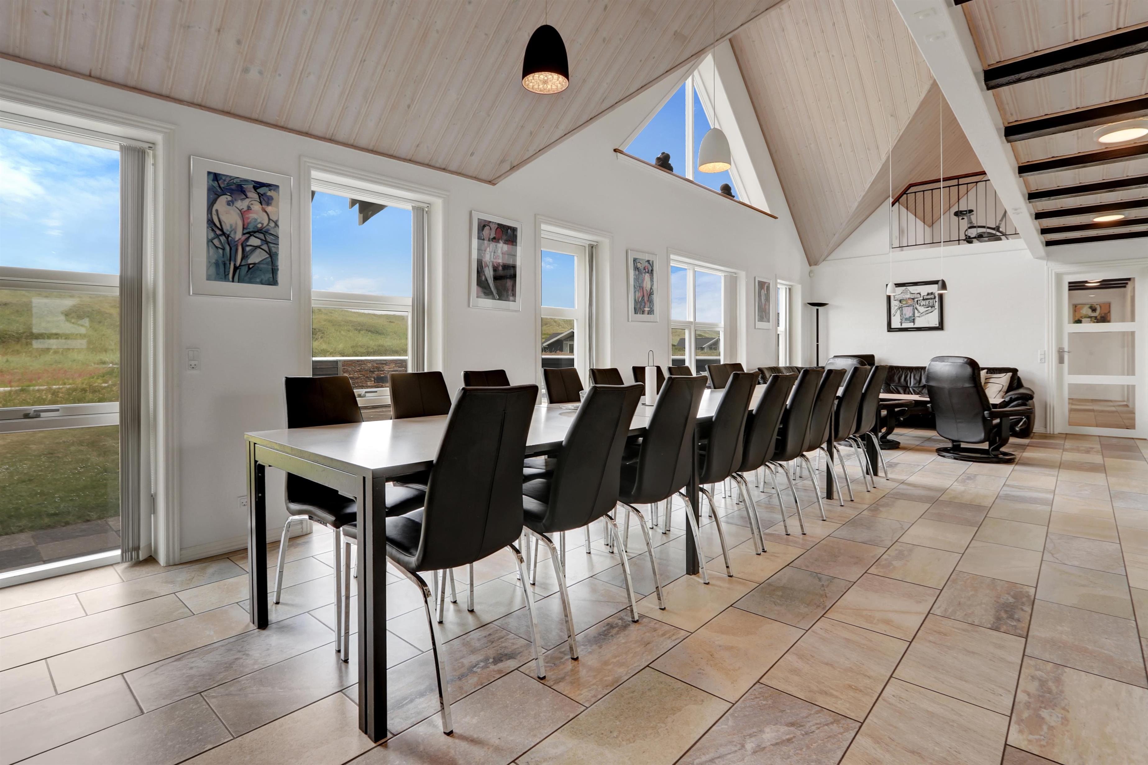 Velkommen til et helt unikt luksusferiehus i særklasse – opført i 2014 og ideelt beliggende tæt ved det brusende Vesterhav i det attraktive Vejlby Klit. Her får I 250 m² gennemført kvalitet og komfort, fordelt over to etager, og med plads til op til 20 gæster. Uanset om I er en storfamilie, flere vennepar eller kolleger på tur, sætter dette hus de perfekte rammer for uforglemmelige feriedage med både ro, nærvær og aktivitet i højsædet.