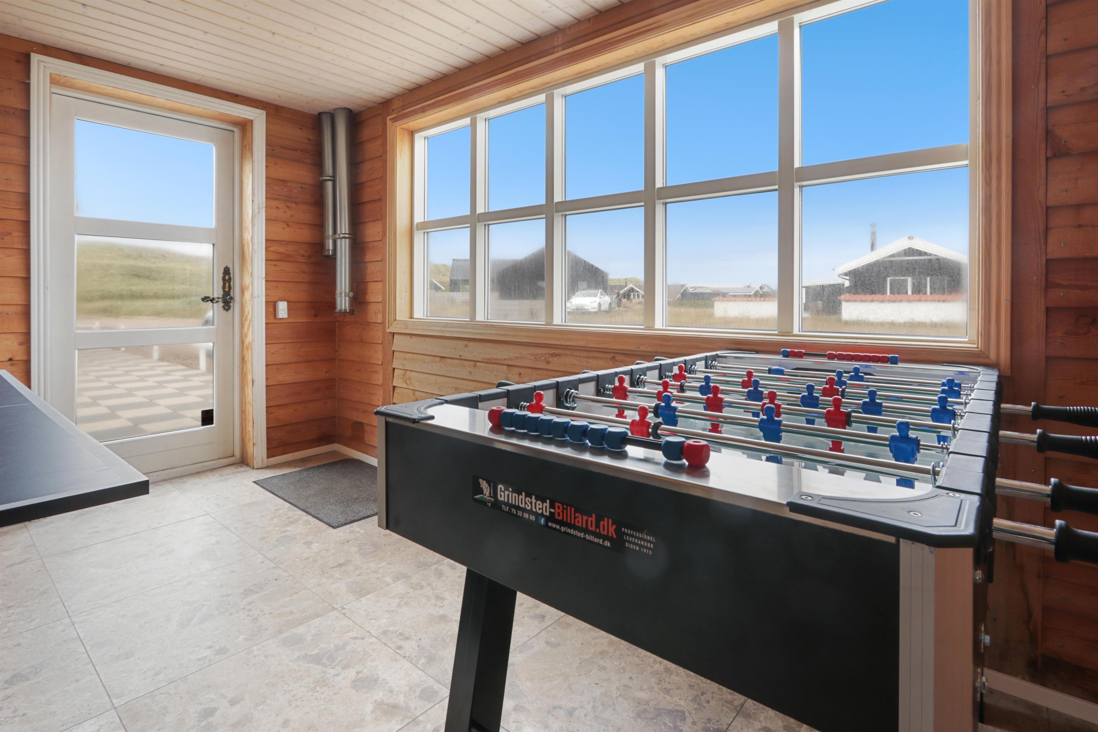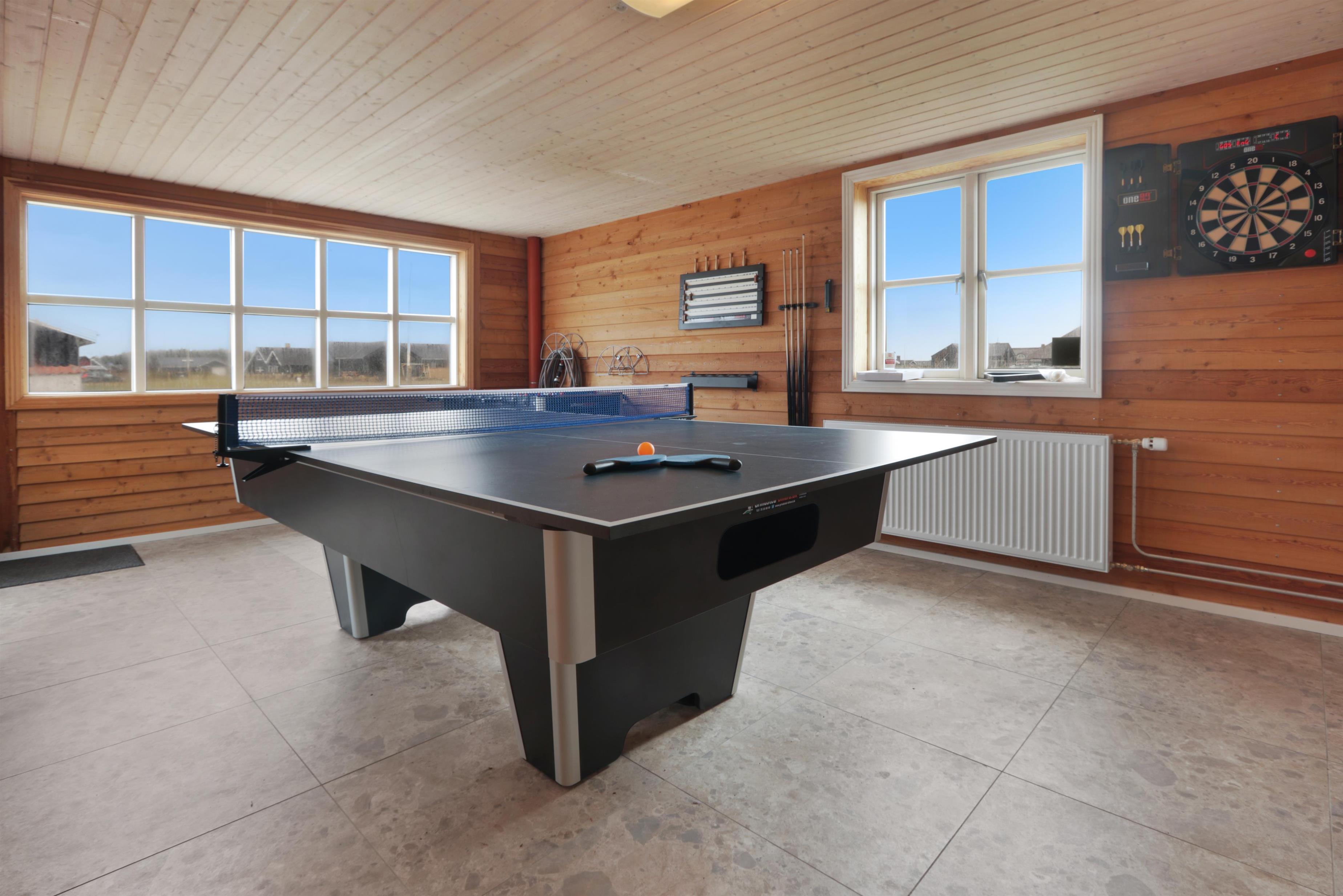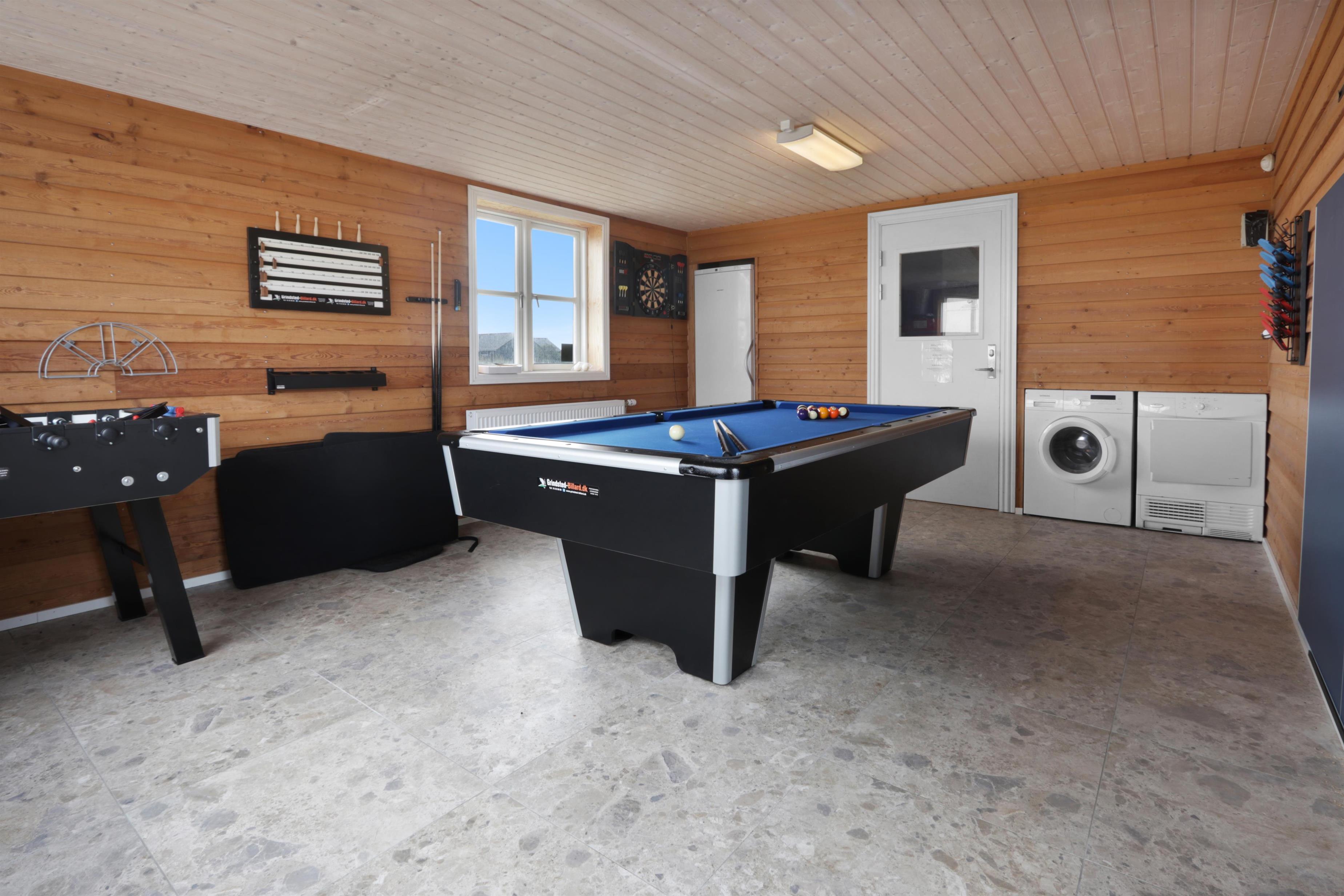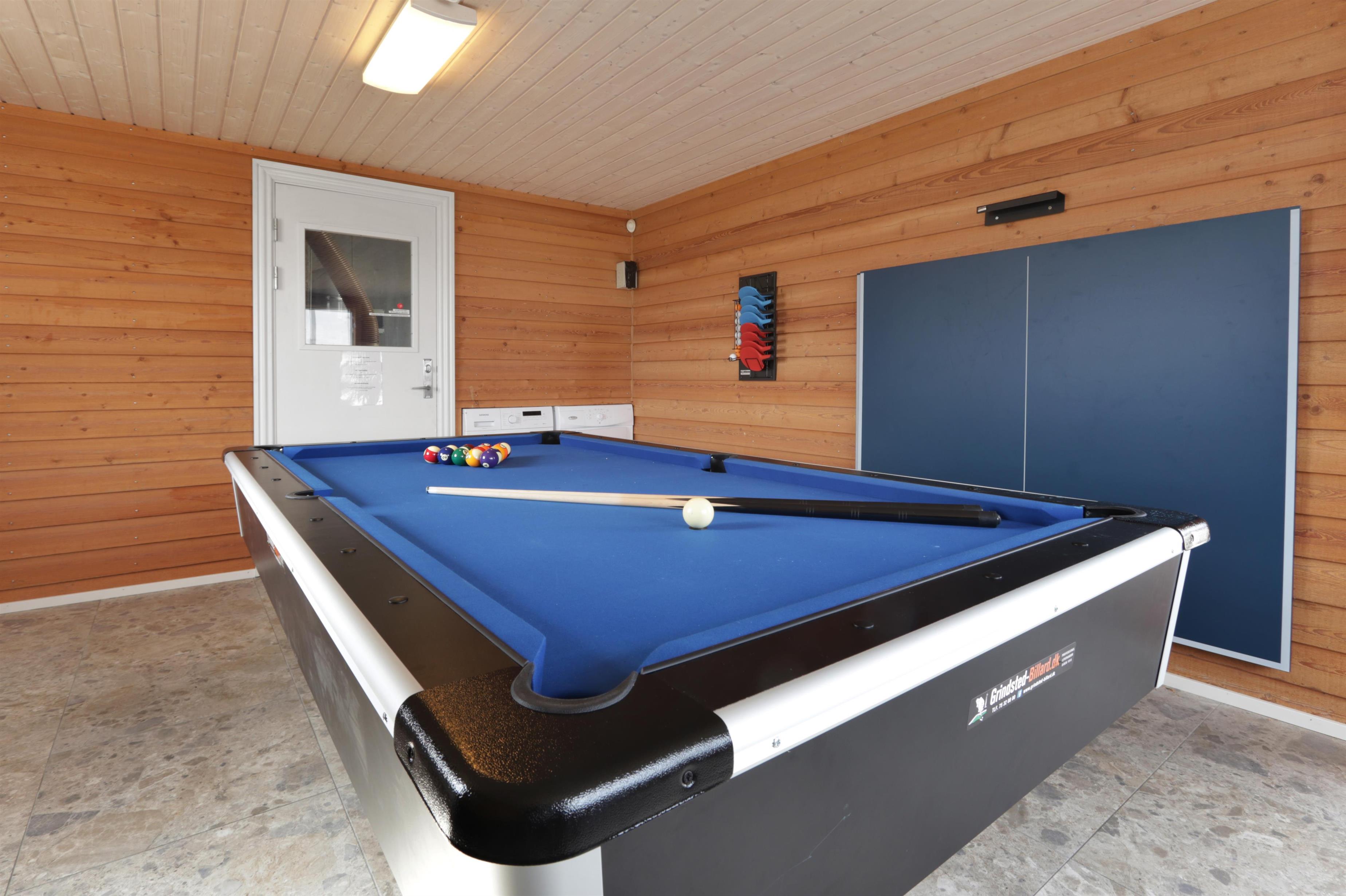 I udhuset finder I et skønt aktivitetsrum med billard, bordtennis, bordfodbold og dart. Her er der lagt op til masser af sjov, spænding og hyggelige timer sammen for hele familien.