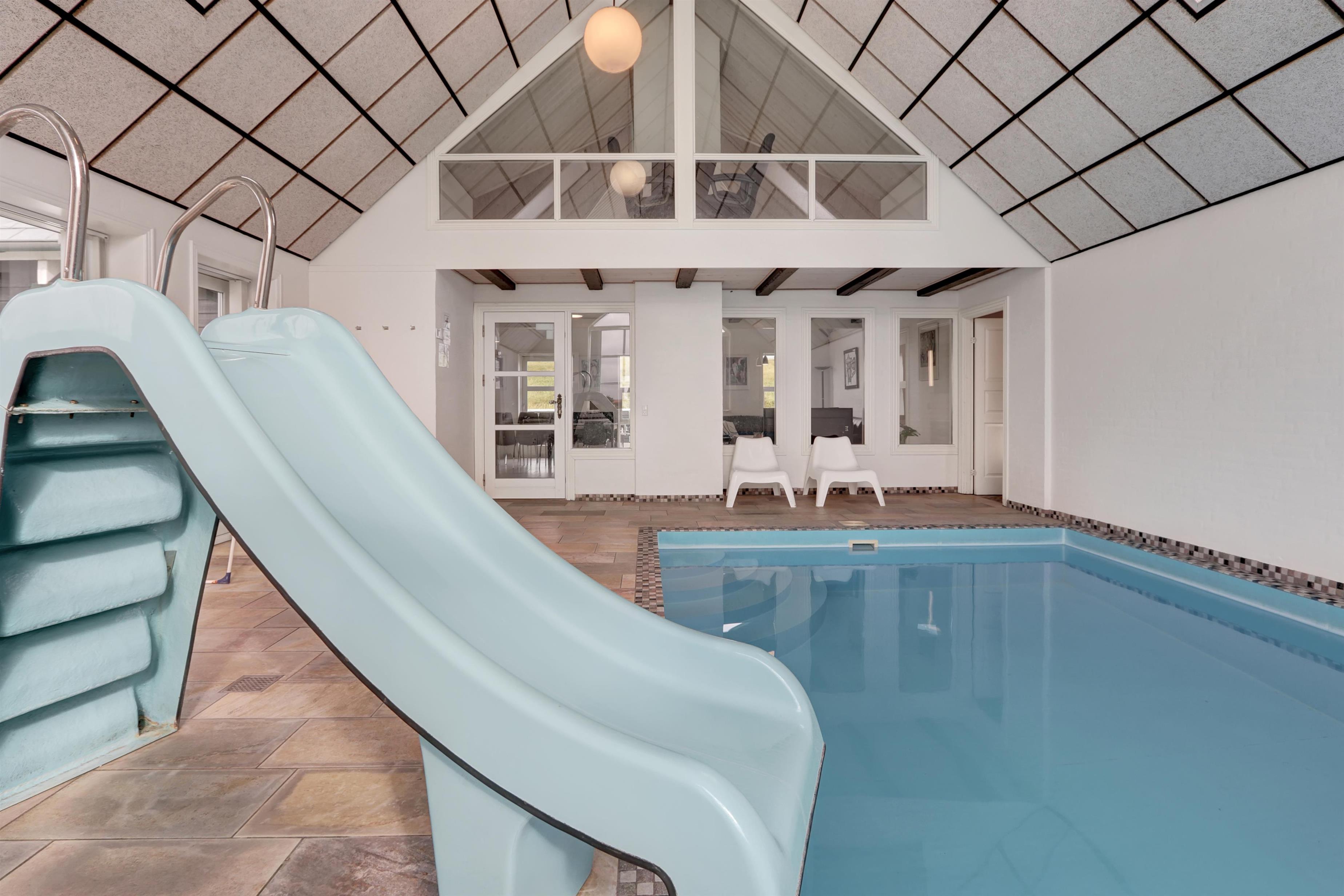 Indendørs swimmingpool med rutsjebane og modstrøm