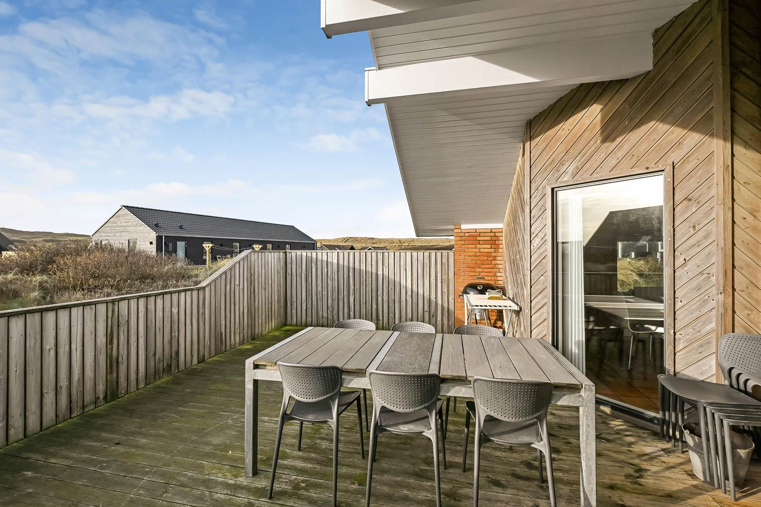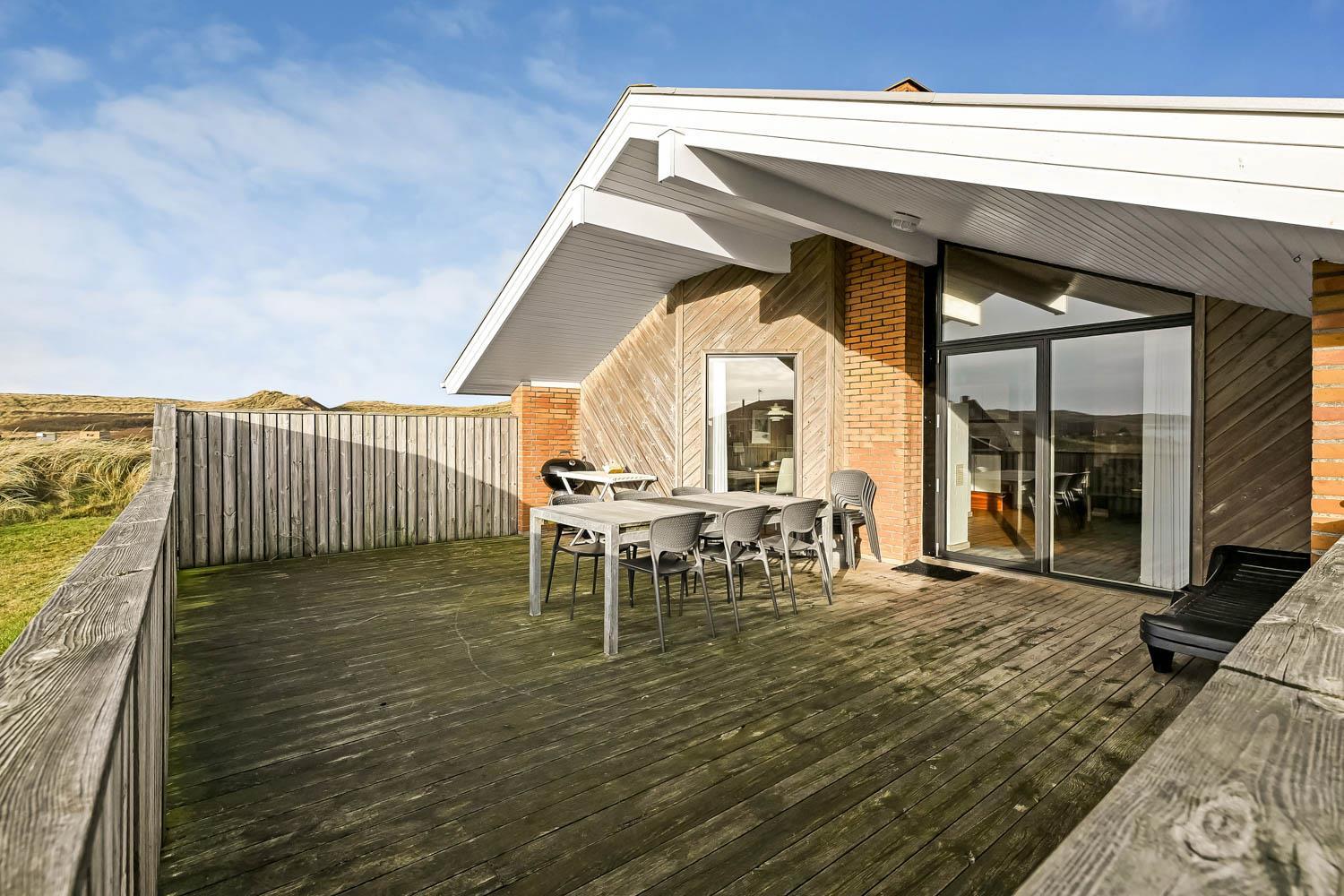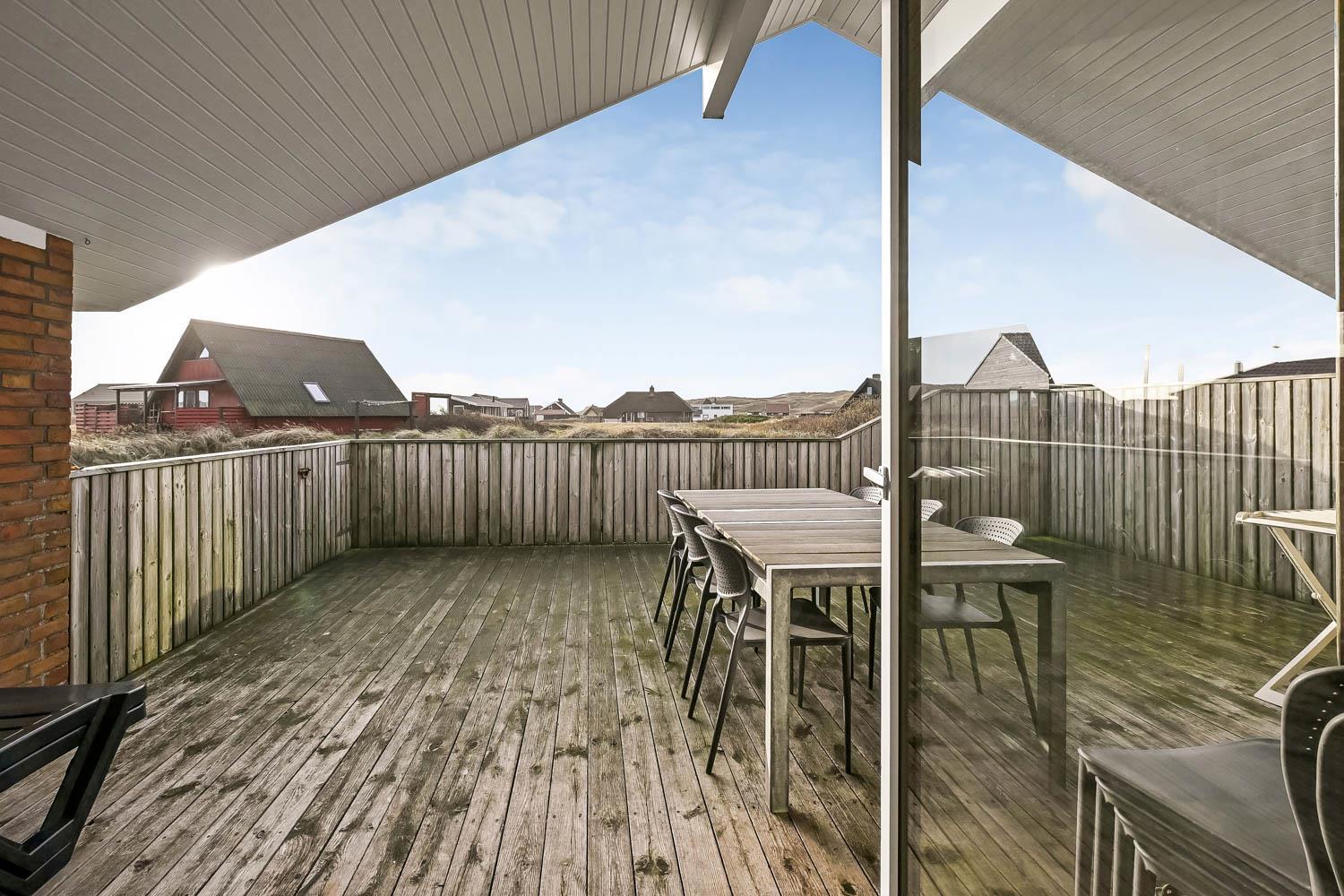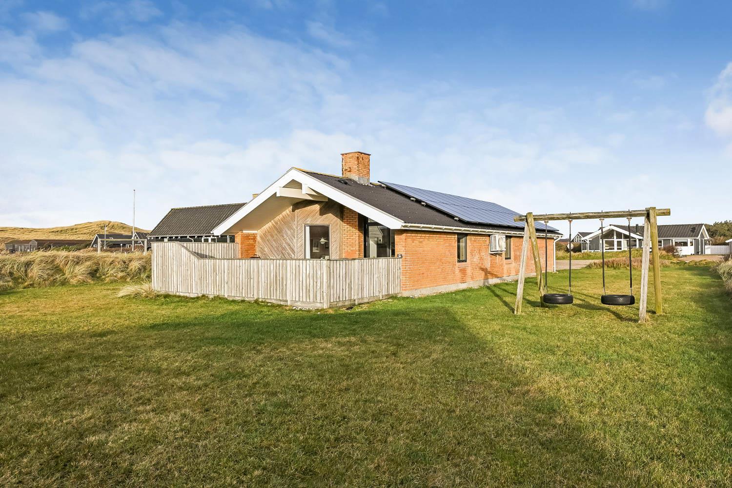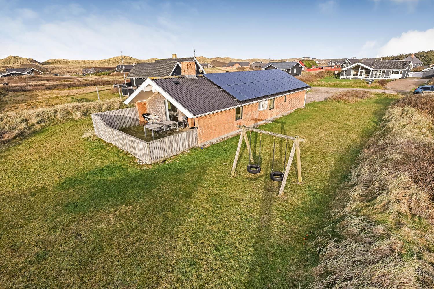 Huset er beliggende på en naturgrund på 1100 m2 i Vejlby Klit og fra huset er der ikke langt til indkøb, restaurant og Vesterhavet. Købmanden og restauranten har kun sæson åbnet. Der er en dejlig lukket terrasse med havemøbler, solvogne og grill og på grunden er der gynger til de mindste gæster. I Vejlby Klit er der gode muligheder for vandre, løbe og cykelture i området. Omkring Ferring Sø er der anlagt en sti så man kan gå hele vejen omkring søen og opleve naturen på nær hold. Fiskerbyen Thyborøn og handelsbyen lemvig er beliggende i kort køreafstand fra huset. Begge byer har flere gode restauranter, seværdigheder og butikker. Et godt feriehus som ligger i gåafstand til Vesterhavet, som hver dag byder på nye maleriske oplevelser.
