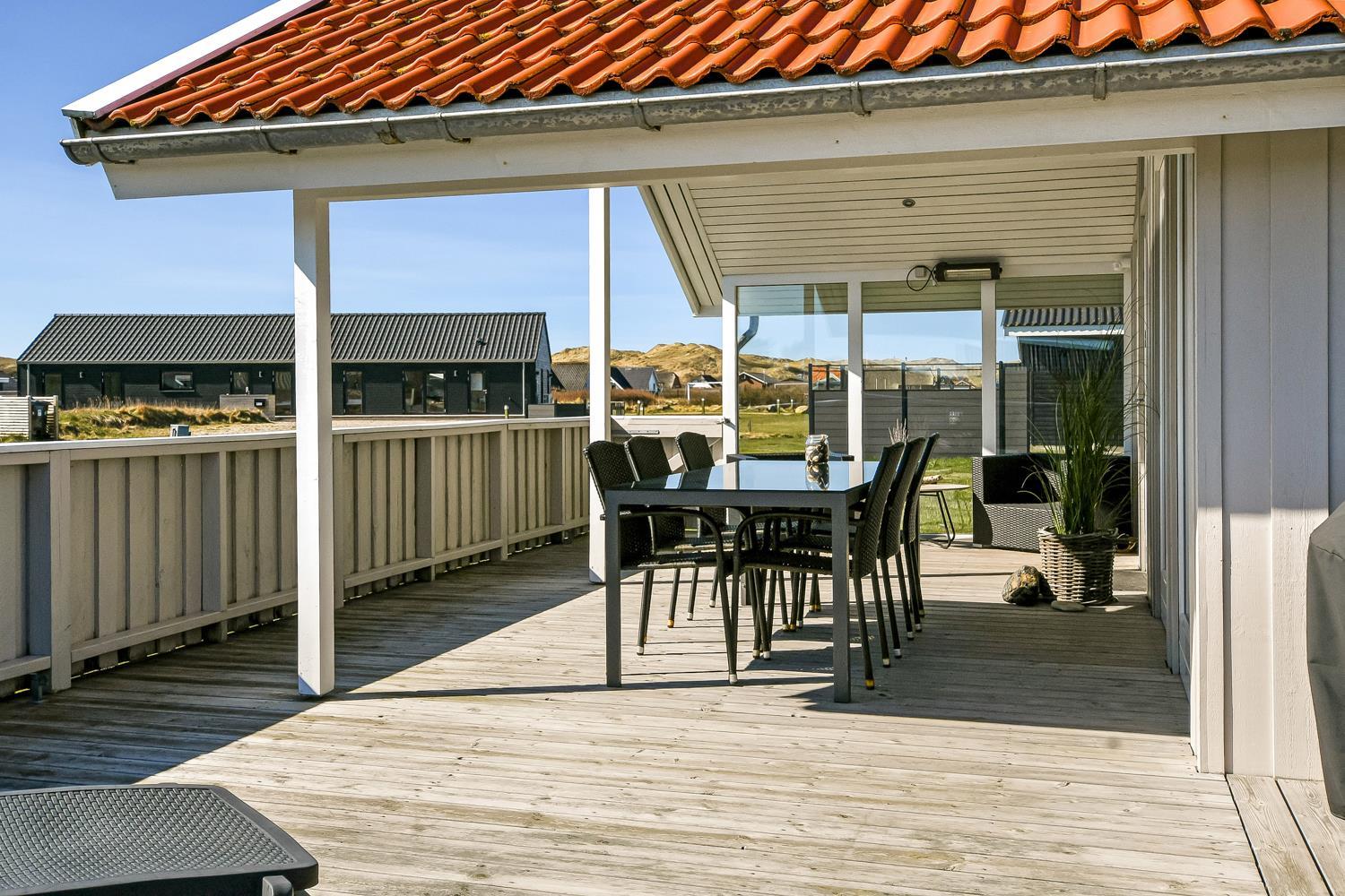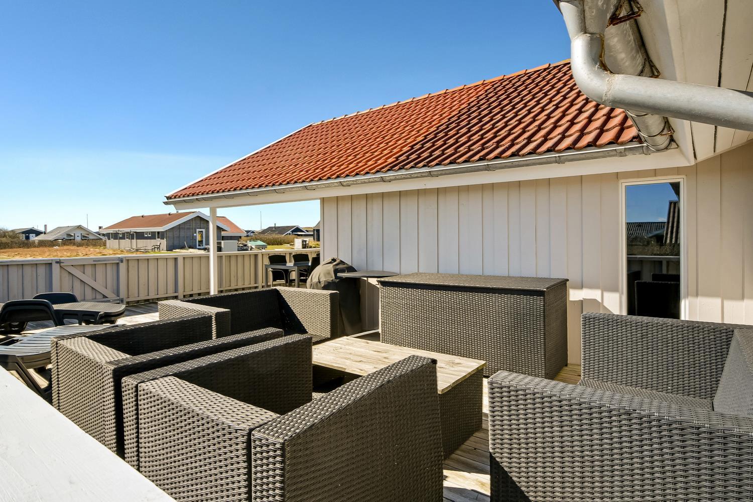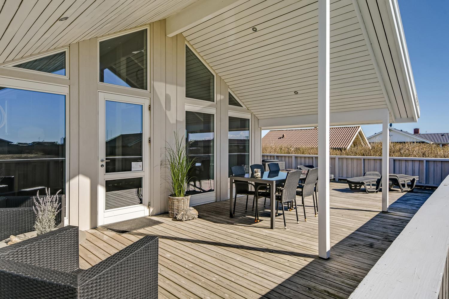 Huset er beliggende på en naturgrund tæt på Vesterhavet og Ferring Sø. Der er en lækker stor delvis overdækket og lukket terrasse med flere havemøbler, solvogne og grill. Her er der altid mulighed for at finde en plads i solen eller i læsiden. Huset er beliggende 200 m fra Ferring sø og her har man mulighed for at følge den nyanlagte sti omkring søen. Ønsker man at besøge stranden ved Vesterhavet er der blot 350 m fra huset til stranden. Her er der mange muligheder for aktiviteter kun fantasien sætter grænsen. En køretur med bil ca. 15 minutter fra huset og du kommer til havnebyen Thyborøn hvor der findes flere gode attraktioner, restauranter og butikker. Kører man i den anden retning kommer man til den gamle handelsby Lemvig som ligger i meget naturskønt område, her findes der ligeledes gode shoppingmuligheder, restauranter og museer. Dette flotte nyrenoverede hus passer både til et par eller den lille familie som gerne vil bo godt og tæt på Vesterhavet.