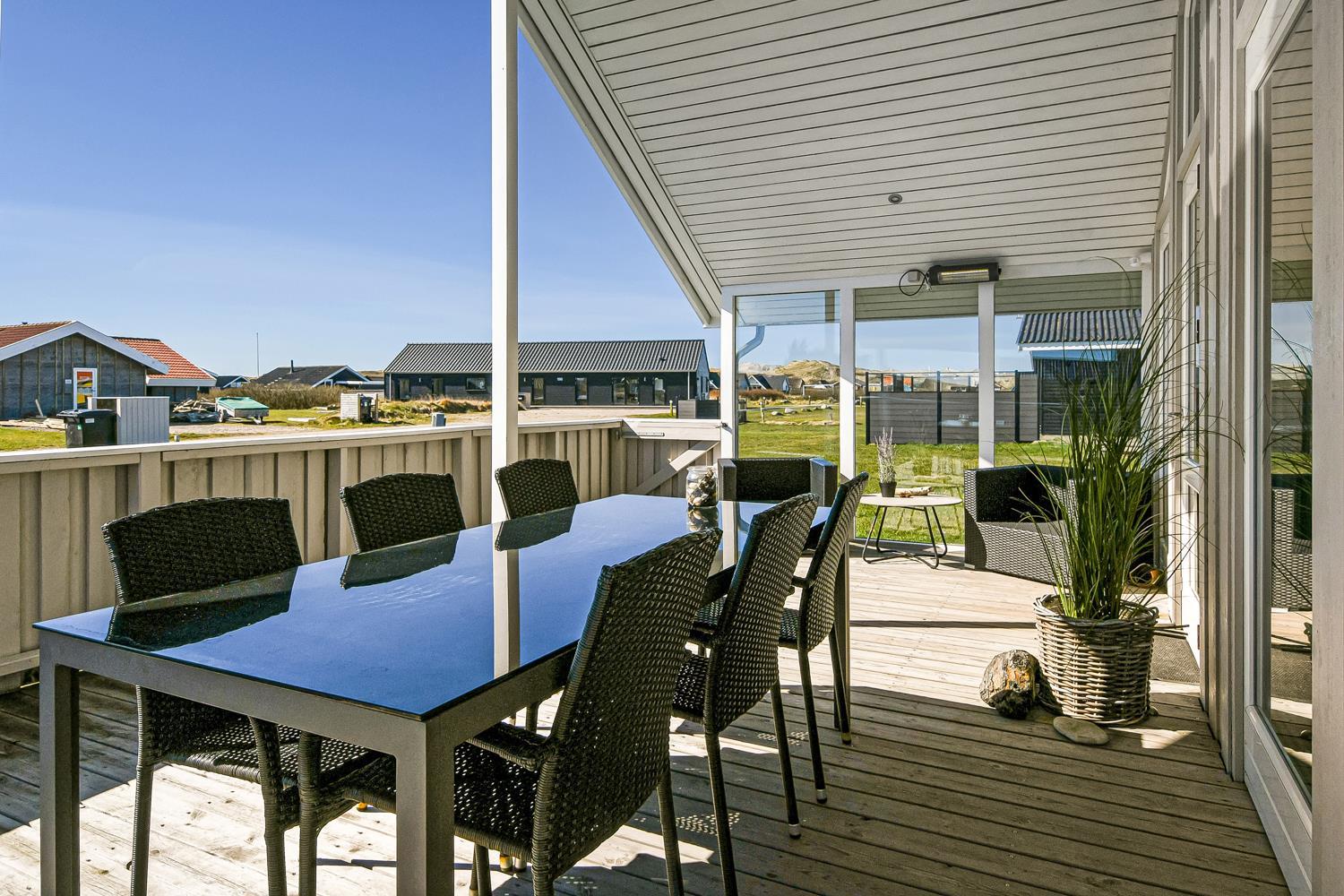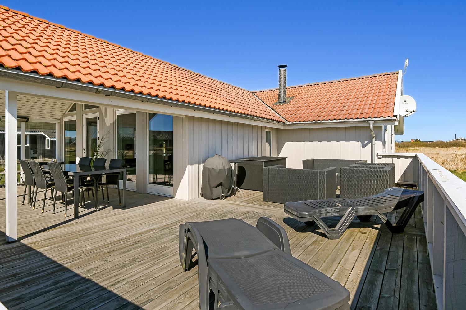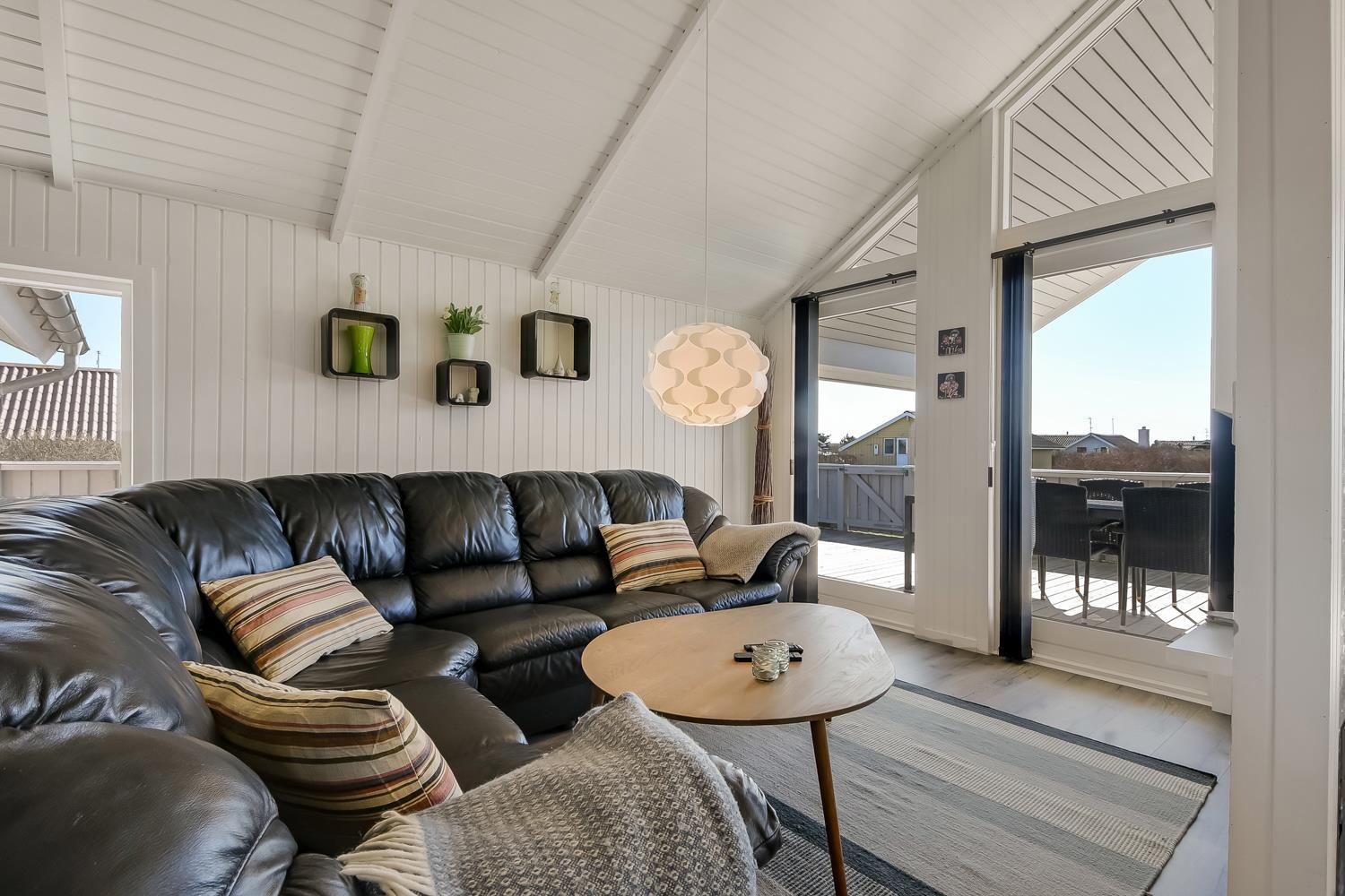 Huset er beliggende på en naturgrund tæt på Vesterhavet og Ferring Sø. Der er en lækker stor delvis overdækket og lukket terrasse med flere havemøbler, solvogne og grill. Her er der altid mulighed for at finde en plads i solen eller i læsiden. Huset er beliggende 200 m fra Ferring sø og her har man mulighed for at følge den nyanlagte sti omkring søen. Ønsker man at besøge stranden ved Vesterhavet er der blot 350 m fra huset til stranden. Her er der mange muligheder for aktiviteter kun fantasien sætter grænsen. En køretur med bil ca. 15 minutter fra huset og du kommer til havnebyen Thyborøn hvor der findes flere gode attraktioner, restauranter og butikker. Kører man i den anden retning kommer man til den gamle handelsby Lemvig som ligger i meget naturskønt område, her findes der ligeledes gode shoppingmuligheder, restauranter og museer. Dette flotte nyrenoverede hus passer både til et par eller den lille familie som gerne vil bo godt og tæt på Vesterhavet.