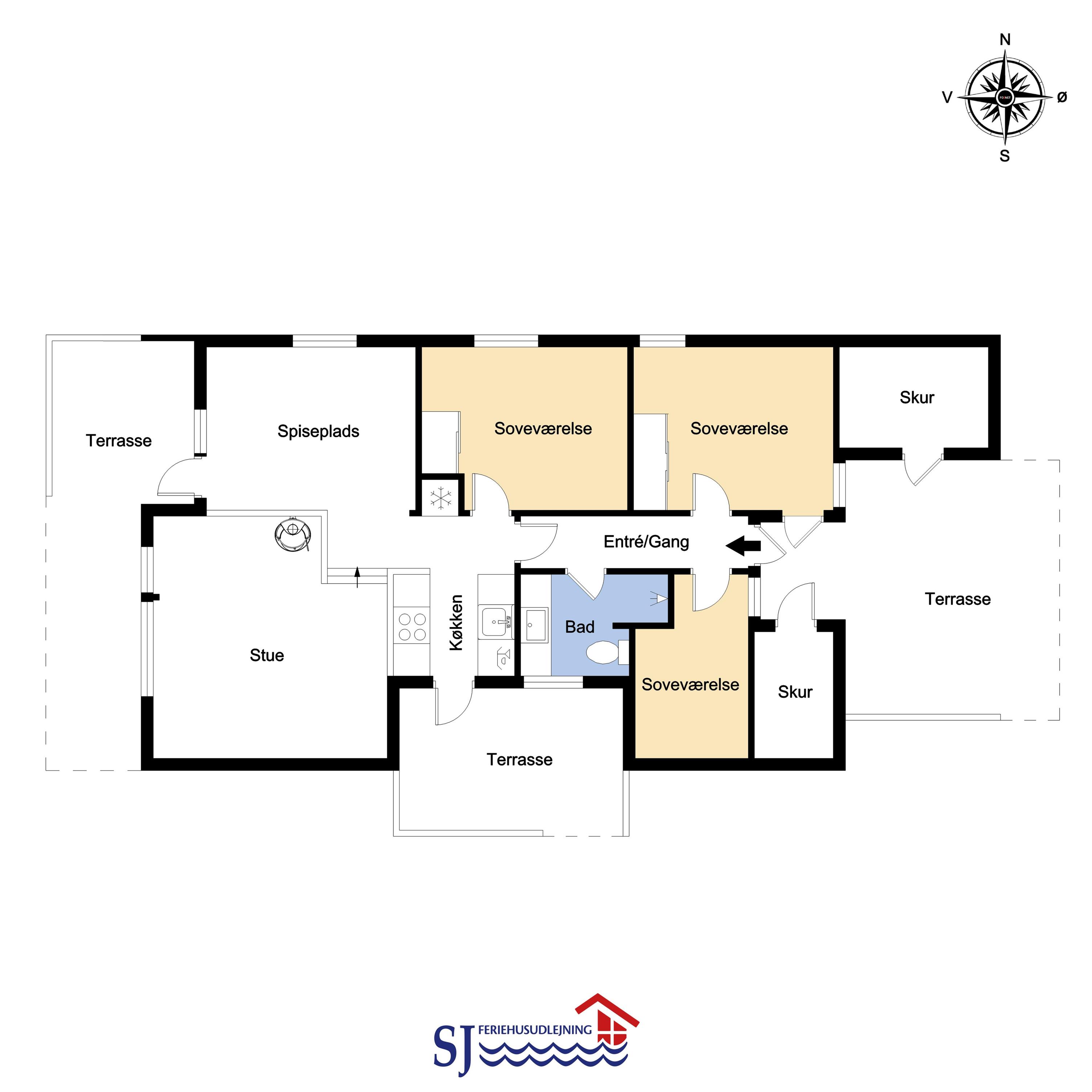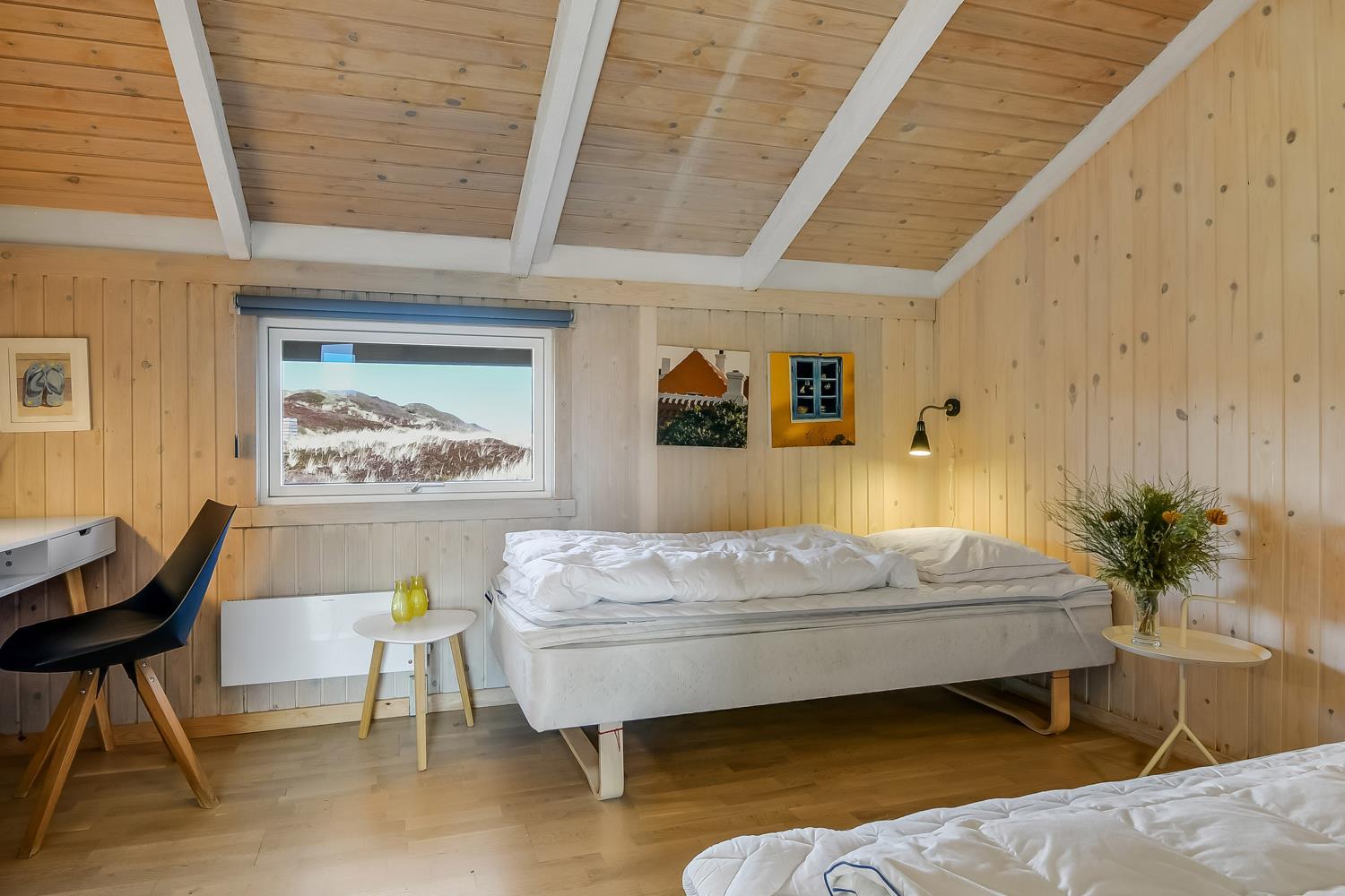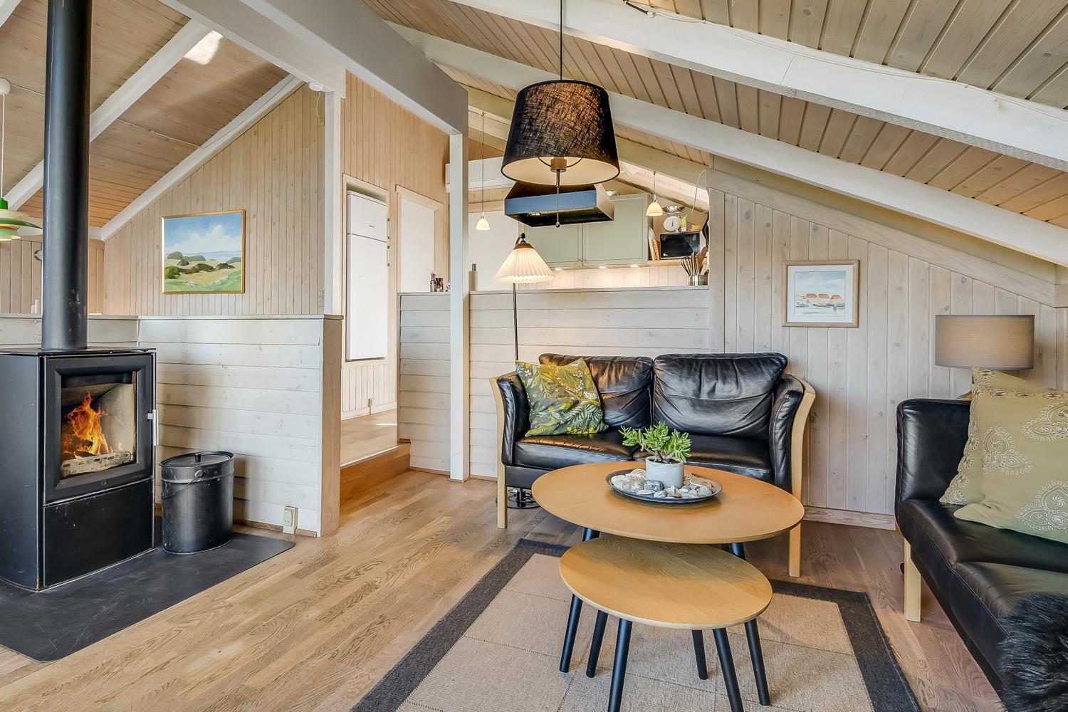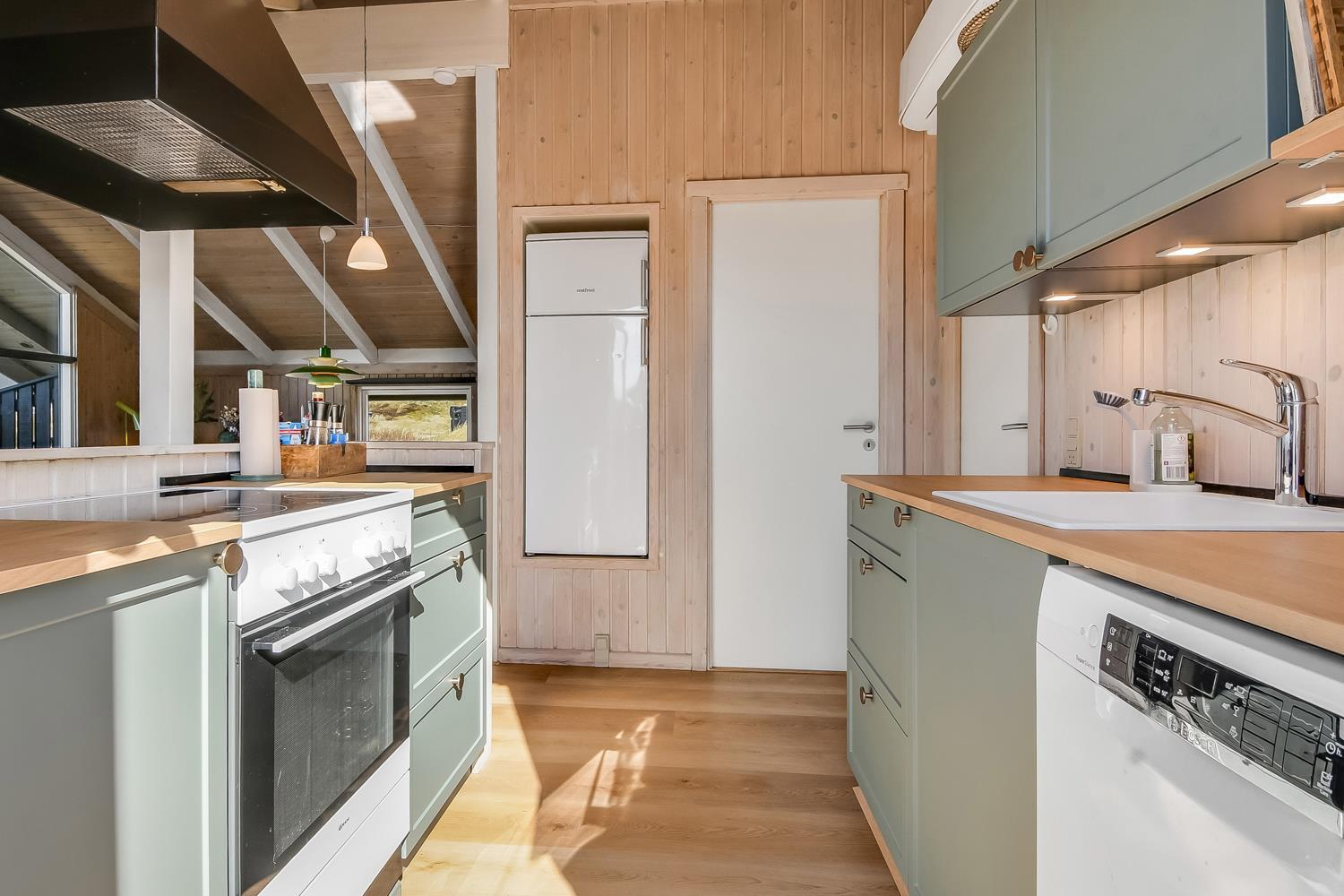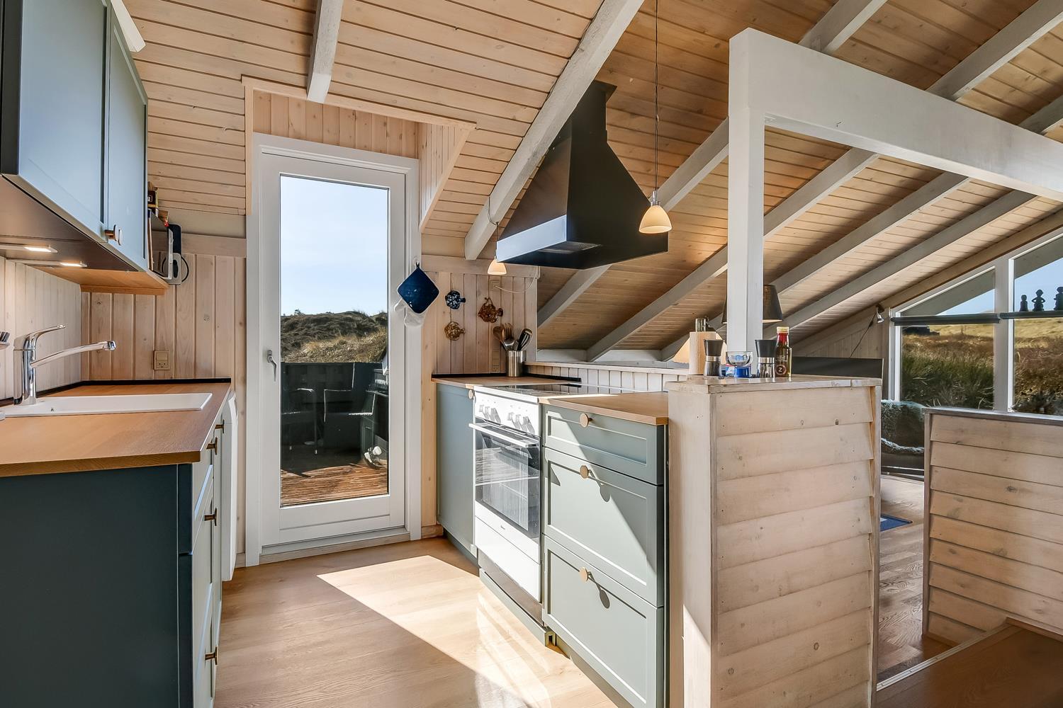 Parker lige ved huset og en flot fordelegang byder jer velkommen. Feriehuset er på ca. 84 m2 og har 3 nyrenoverede (2018) værelser (1DS, 1DS, 2ES). Fra forældre soveværelset er der pragtfuld udsigt til landskabet samt udgang til terrasse. Huset er praktisk indrettet i lyse og venlige farver og med pæne møbler. Et funktionelt og veludstyret køkkenhjørne med bla. opvaskemaskine, mikroovn og komfur med glaskeramiske kogeplader kombineret med spisestue og forsænket pejsestue med fladskærms-TV - med Apple tv, DR, TV2 og tyske programmer, DVD og CD afspiller, radio. Hyggelig brændeovn samt en energibesparende varmepumpe sørger for at alle kan holde varmen selv på de charmerende efterårsdage. Tag plads i en af husets behagelige stole og oplev, at blive betaget af den unikke udsigt til det høje klitlandskab. Dejligt badeværelse med vaskemaskine, bruseniche, toilet, og håndvask. Der er trægulve i alle sove- og opholdsrum og huset er meget rengøringsvenligt. Barnestol til de små. Ikke ryger hus. 1 husdyr tilladt. Har man el-bil eller en Plug-In hybrid, så er der Ladeboks ved huset til Type 2 ladestik, der kan lade op til 11 kWh.