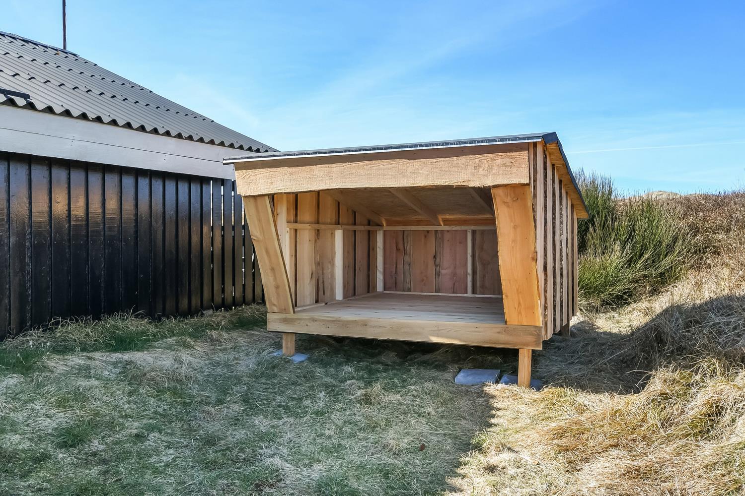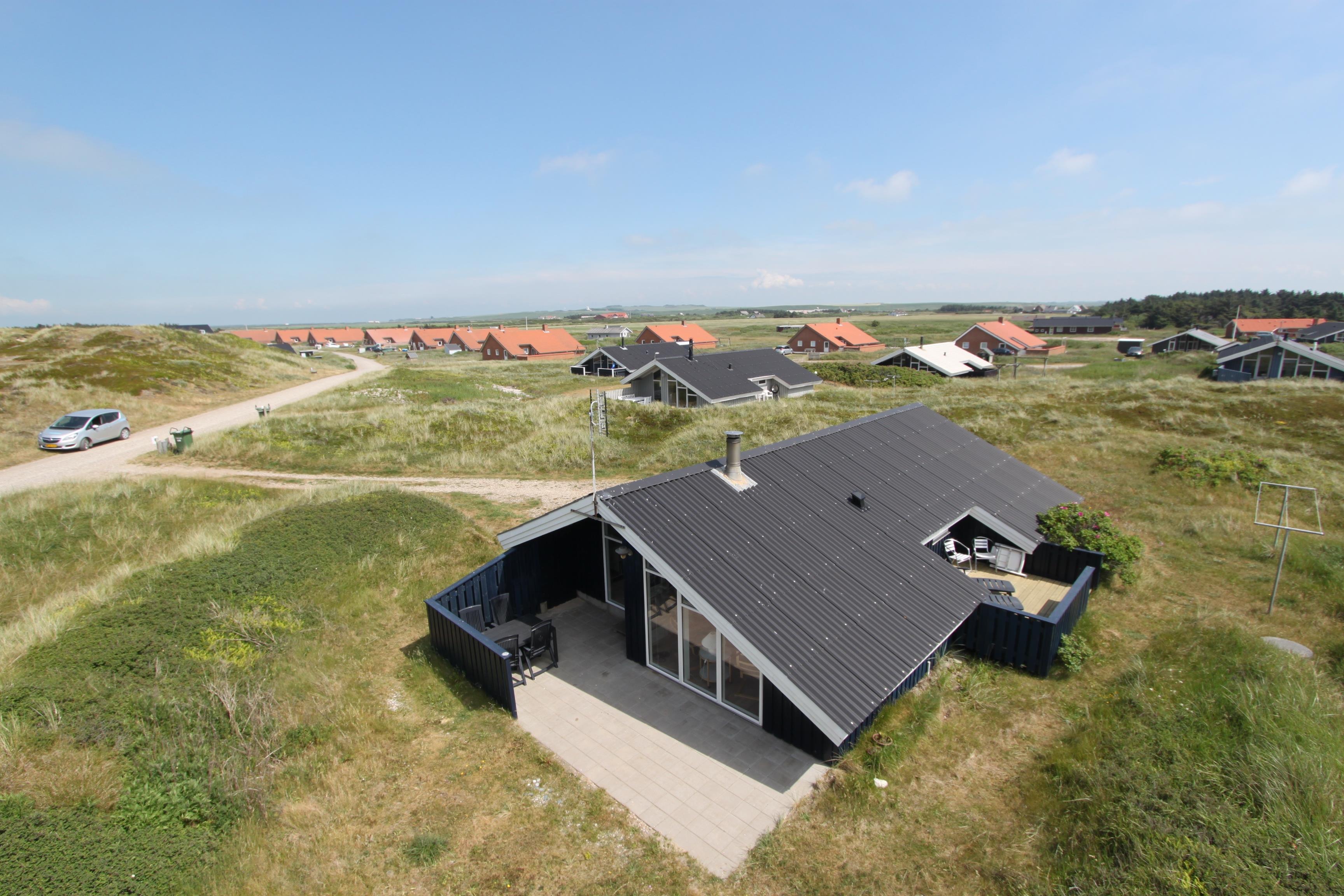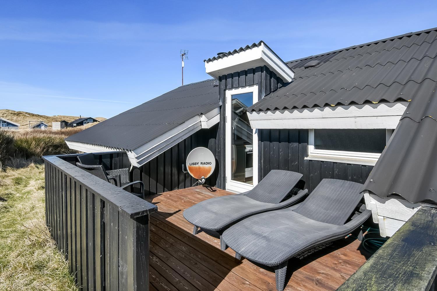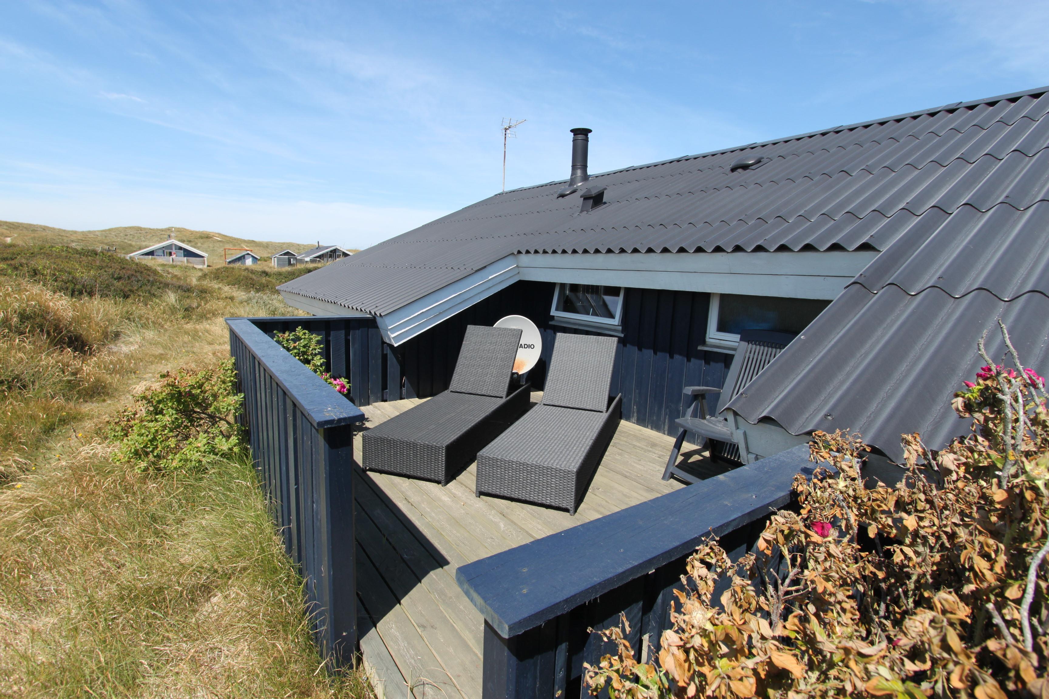 Huset er beliggende i en dejlig klitområde tæt ved Vesterhavet og har 3 terrasser, hvoraf en er delvis overdækket. Der forefindes mange havemøbler, liggestole og grill. Nyd at der altid er mulighed for at finde en plads i solen, et læsted eller en grillaften til lyden af bølgernes brusen som høres i baggrunden. Der er et shelter. Den dejligt beliggende feriebolig med klitudsigt, vil danne rammerne om jeres helt unikke ferie tæt ved Vesterhavet. Nyd at Vesterhavet hver dag fortæller en ny historie, som i kan opleve på tætteste hold.