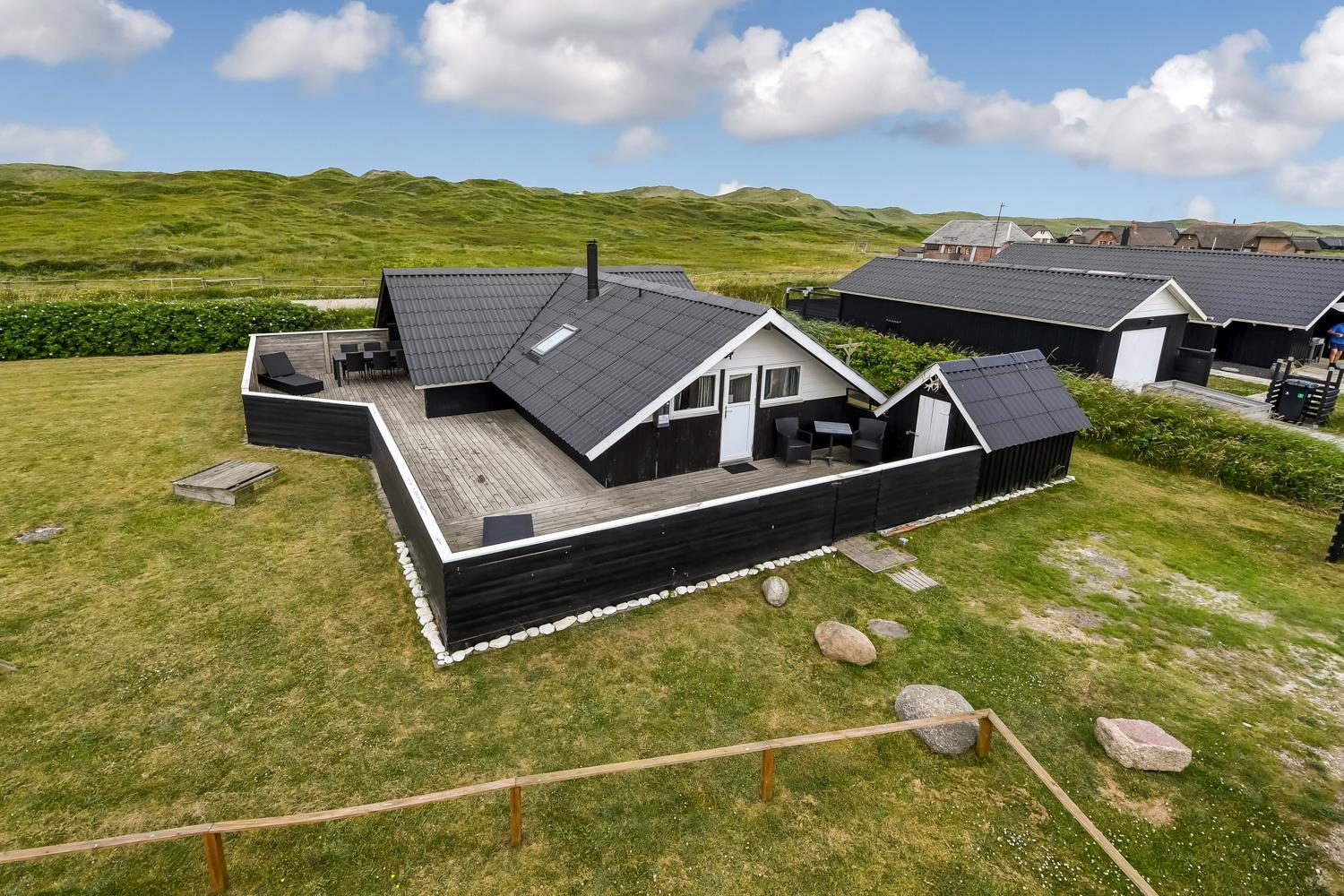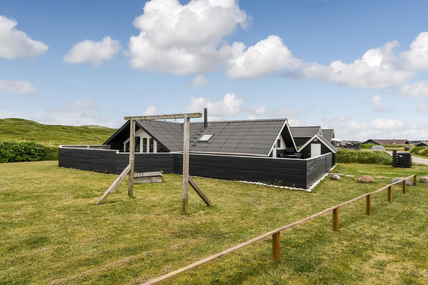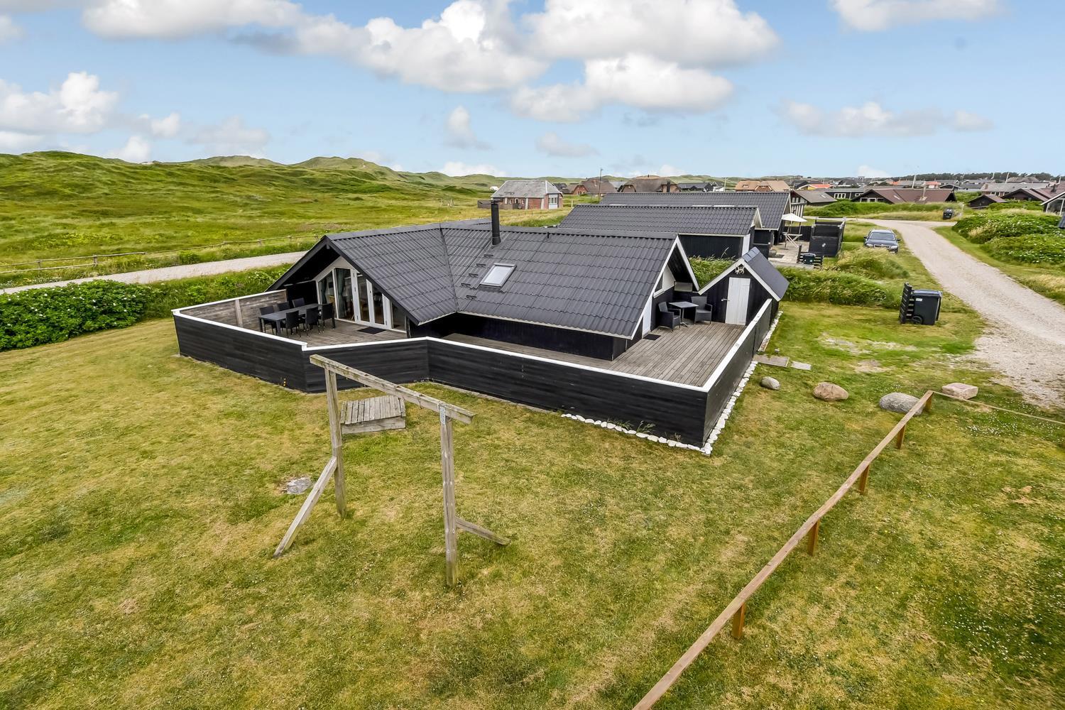 Huset ligger på en ca. 700 m2 stor grund. Den 60m2 store indhegnet terrasse er perfekt egnet til både hund og børn som kan løbe rundt uden man skal være bange for de løber væk. Der er flot panorama udsigt til klitterne ved Vesterhavet og både morgen- og aftensolen kan nydes i havemøblerne eller på en af de 2 solvogne. Grill er naturligvis også standard og børnene kan også underholde sig med gyngerne på grunden. Huset ligger godt i forhold til vandreture hvor der hverken er langt til Ferring Sø eller Vesterhavet. I sommerhalvåret fra påske til efterårsferie er der kun cirka 600 meter til nærmeste købmand ved Vejlby Torv hvor der også er en Cafe som har åbent i sæsonen. I vinterhalvåret må man tage de 6 km til Harboøre hvor der både er en Aldi og Brugsen. Der er kun 200 m til et friareal, hvor der er mulighed for diverse boldspil.
