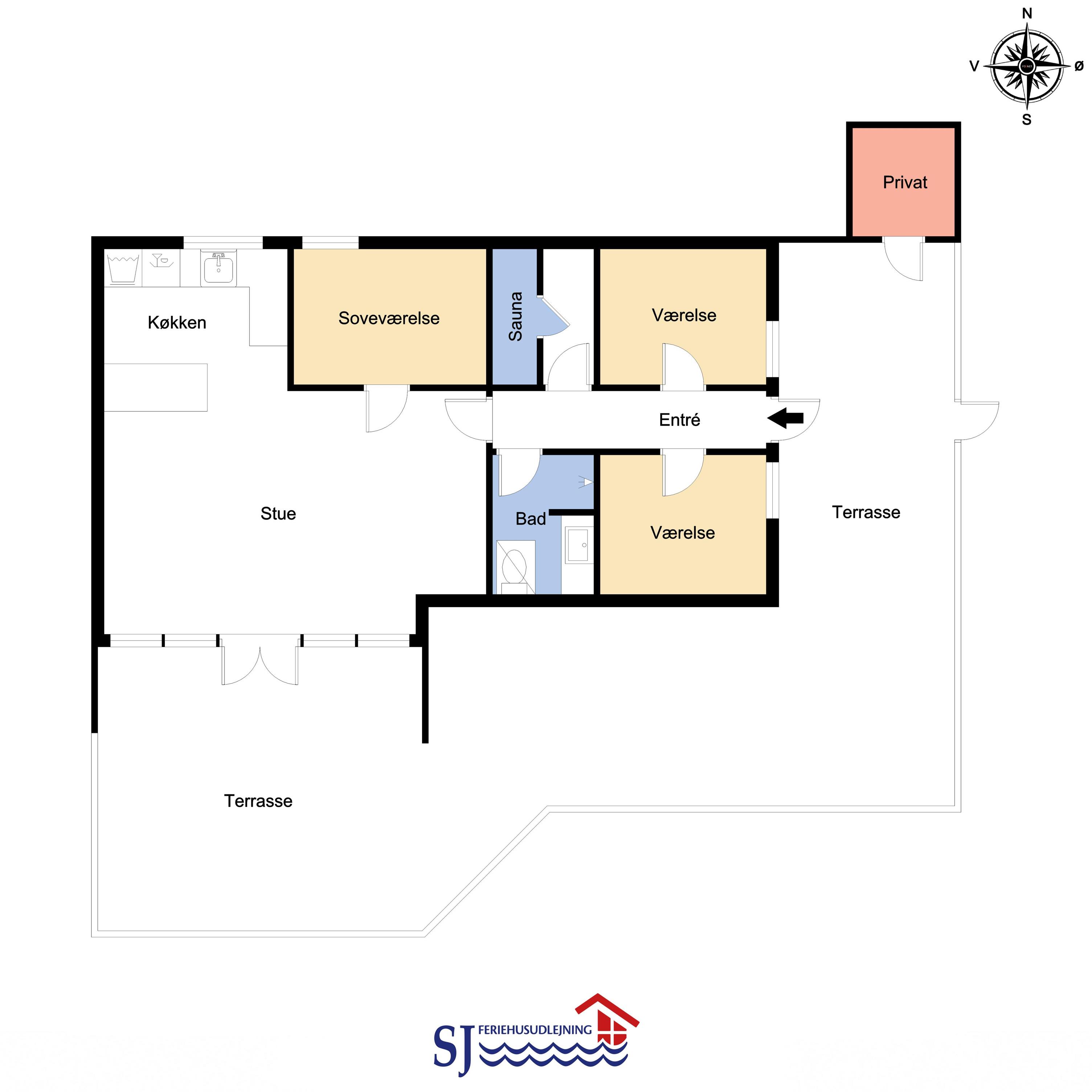 Huset er totalt renoveret i 2015. Der er 3 soverum (1DS, 2ES, 2ES). Dejlig Køkken-stue-alrum. Opholdsstuen er pænt møbleret med lædermøbler, brændeovn, stereoanlæg med CD, DVD, og fladskærm med danske og tyske programmer. Køkkenhjørnet er optimalt indrettet og udstyret med mikroovn, komfur med glaskeramiske kogeplader, emhætte, opvaskemaskine, vaskemaskine, microovn, 50 l fryser og alt i service- / køkkengrej. Dejligt badeværelse med gulvvarme, toilet, bruser. Fra gangen er der separat indgang til saunaen. Der er trægulve i hele huset. Hvide lofter gør at hele huset er lyst og venligt. Barneseng og barnestol til de små gæster. Ikke-ryger hus. Max 1 husdyr tilladt. Katte er ikke tilladt.