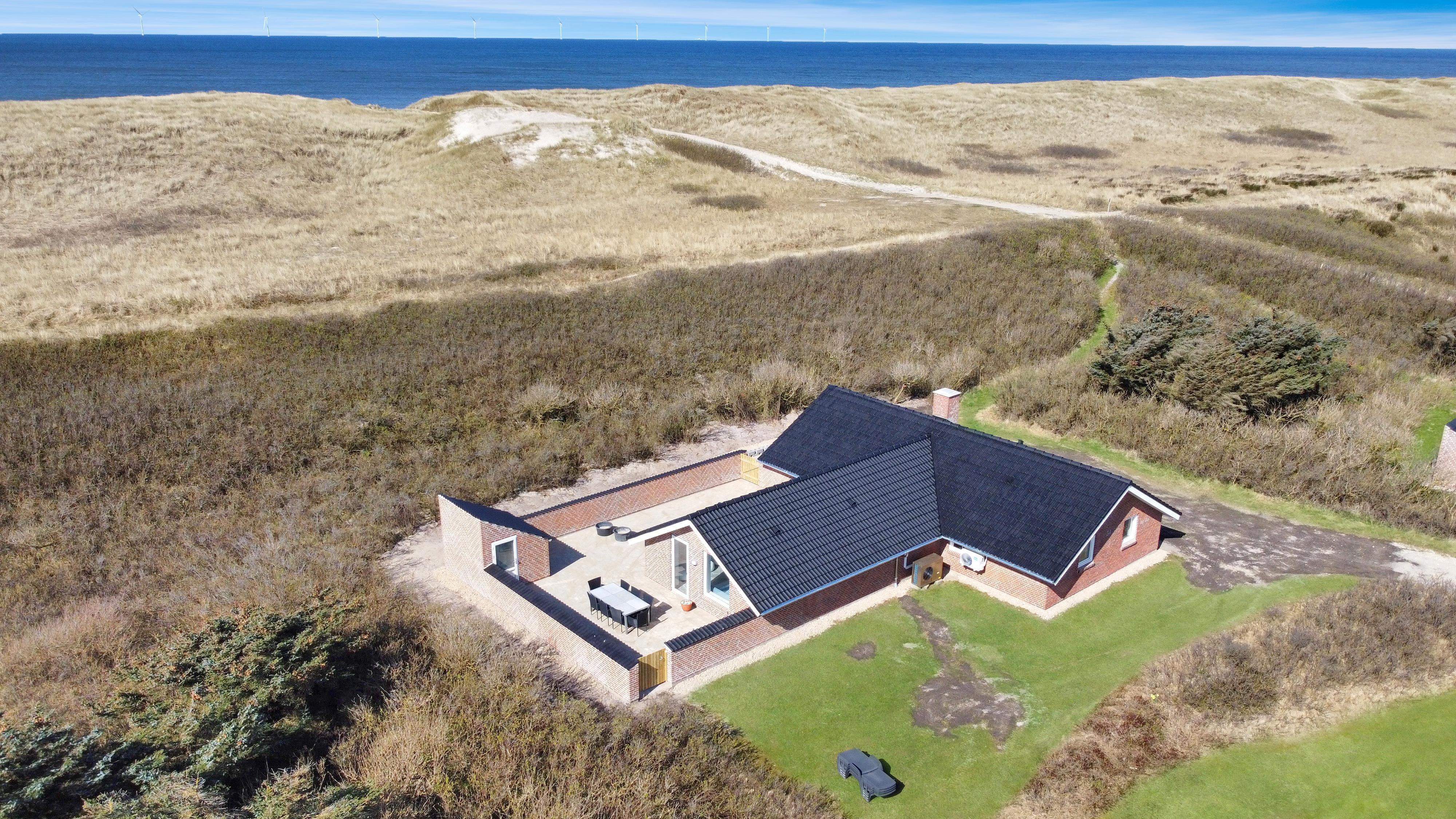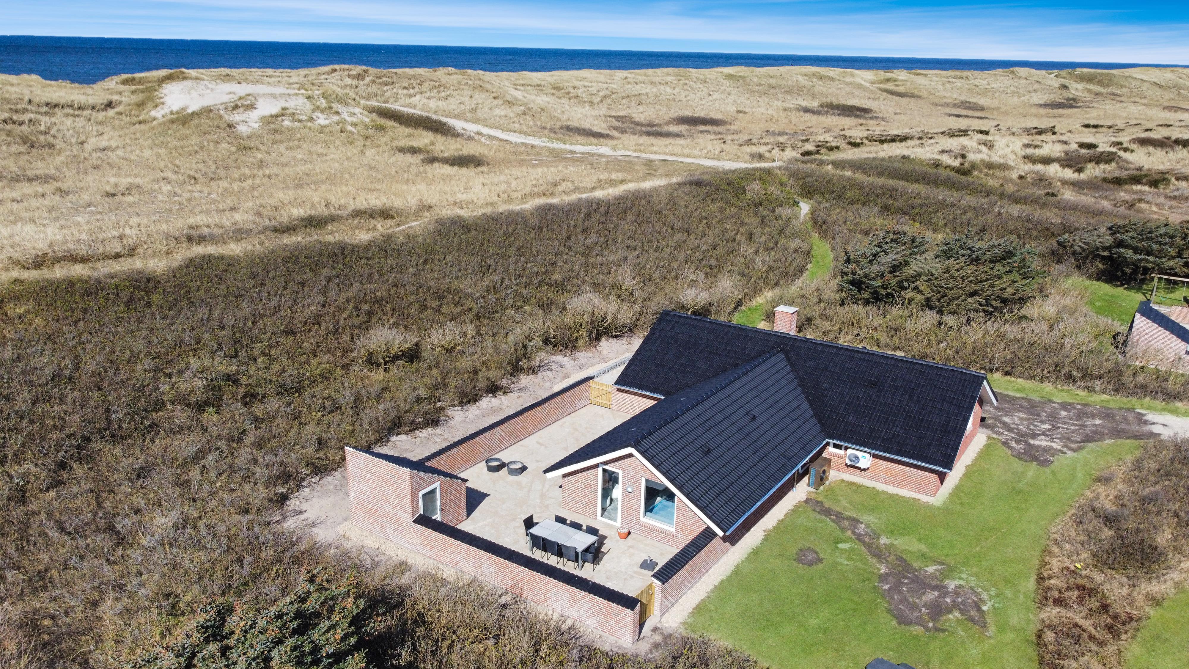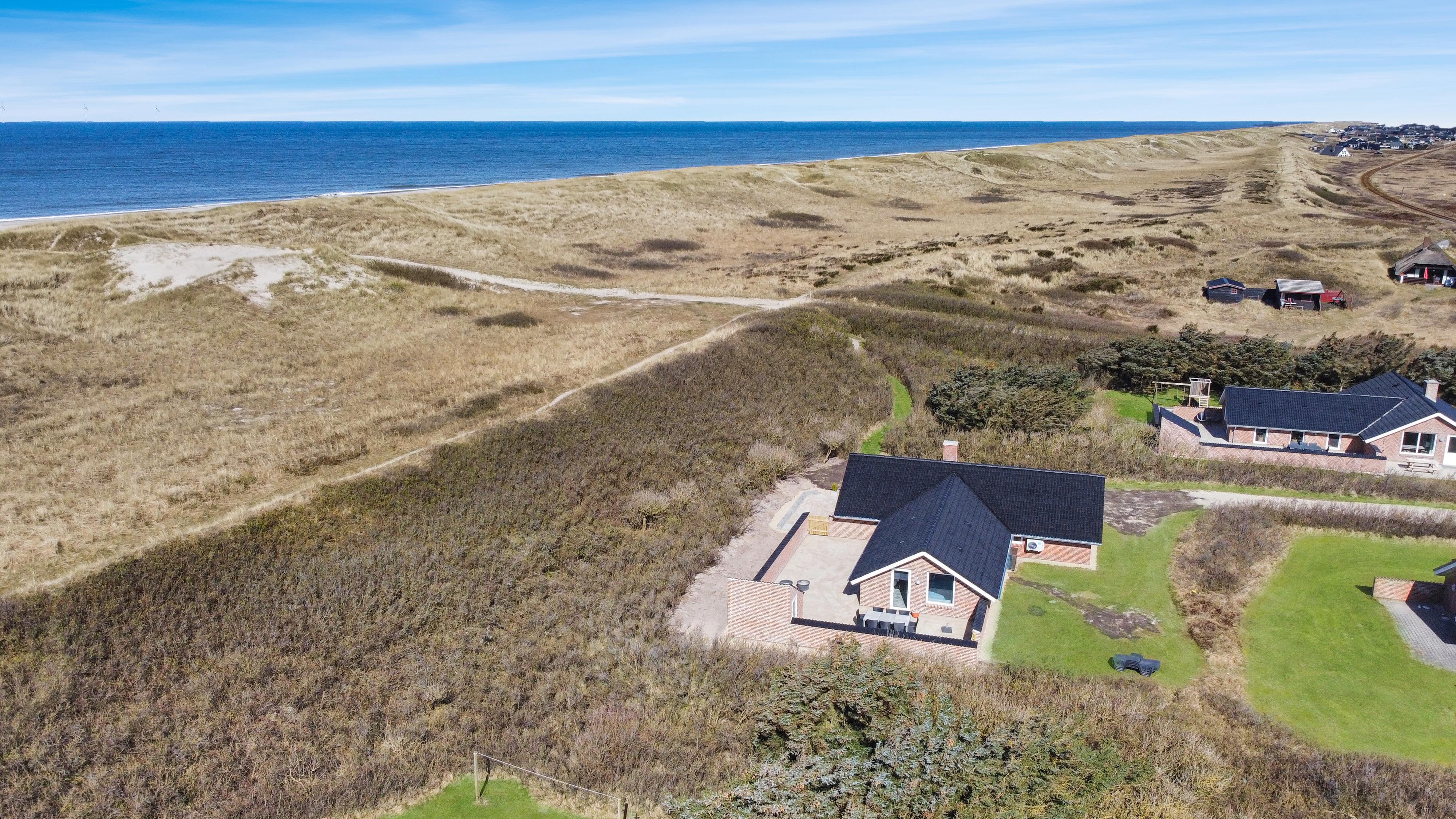 Huset ligger for enden af en vej, direkte op til diget på en 1.400 m² stor klitgrund med egen sti til stranden. Beliggenheden er helt ugenert, så du kan nyde ferien i fred og ro, omgivet af naturens skønhed. Den helt lukkede terrasse med havemøbler, liggestole og grill indbyder til afslapning og hyggelige aftener under åben himmel.