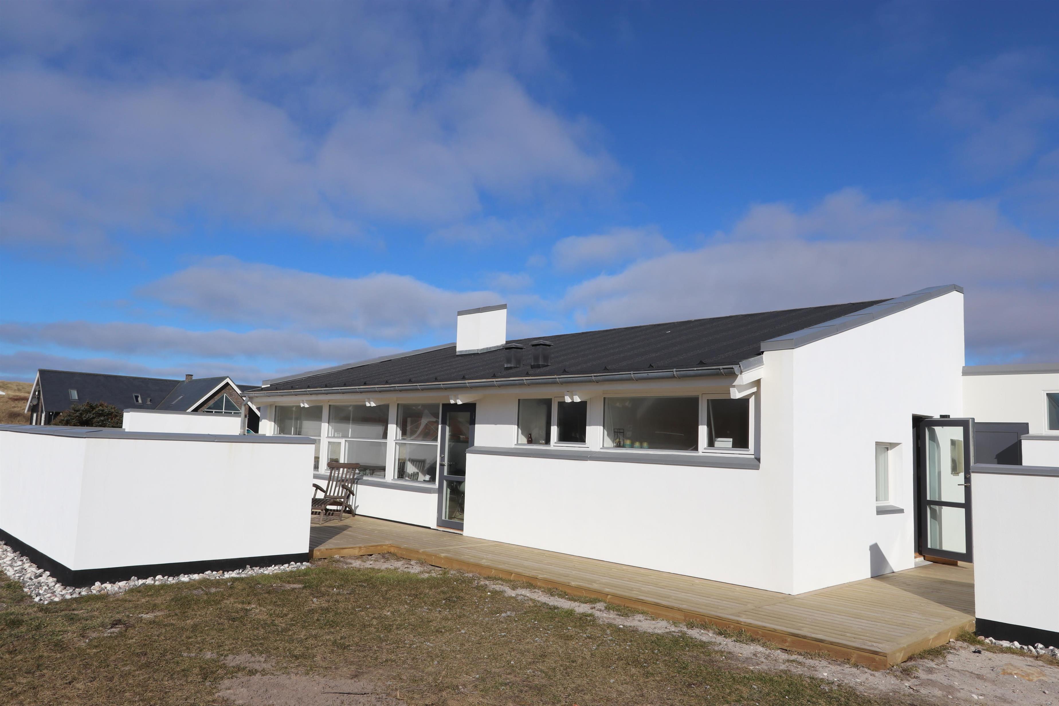Nyrenoveret, moderniseret og hyggelig arkitekttegnet feriehus med plads til 6 personer med 3 dejlige terrasser som alle har gode læ muligheder og direkte udsigt til de høje klitter ved Vesterhavet. Her kommer I til at bo tæt på havet på en skøn naturgrund på hele 1295 kvadratmeter. Huset er renoveret i 2021 og udmærker sig ved sin tætte beliggenhed til havet. Gratis Internet.