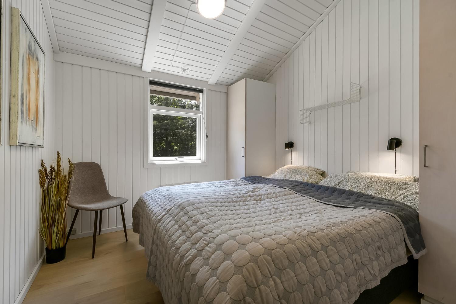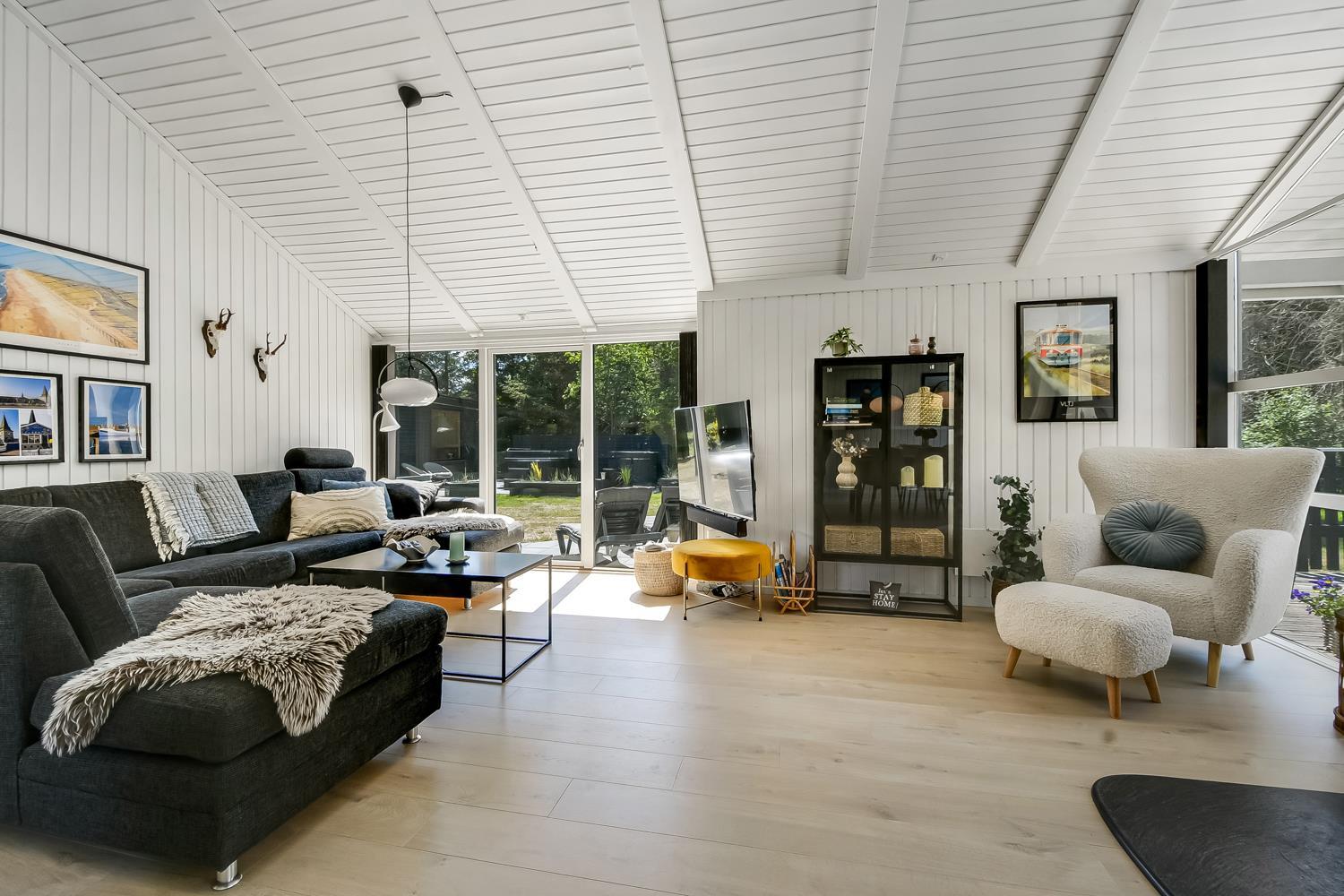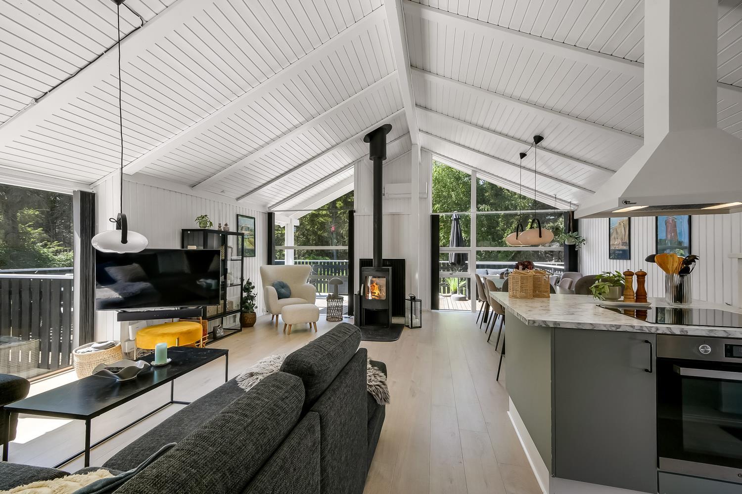 Træd ind i dette skønne og rummelige feriehus på 92 m2, hvor komfort og hygge mødes. Med fire godt indrettede soveværelser (1DS, 1DS, 1DS, 2KS). Herudover er der også hyggelig hems med plads til yderligere to personer. En rigtig lille hule som børnene vil elske. Der rigeligt med plads til hele familien eller gruppen af venner – dog må huset beboes af max. 8 personer. Den åbne opholdsstue, flot indrette i lyse og venlige farver. Inviterer til afslapning i den hyggelig hjørnesofa, foran den knitrende brændeovn, mens I kan nyde jeres yndlingsfilm på det moderne TV med danske og tyske kanaler. Den opsatte varmepumpe søger for fantastisk indeklima året rundt og bidrager til en energisparende opvarmning af huset. Køkkenhjørnet er en sand kulinarisk oase, udstyret med alt hvad I behøver for at tilberede lækre måltider. Samtalekøkkenet har alt i service, køkkengrej. Opvaskemaskine, mikroovn, airfryer, keramiske kogeplader, indbygningsovn, køle-/fryseskab og emhætte. Spisearrangementet er praktisk placeret lige ved køkkenet og giver jer mulighed for at dele uforglemmelige øjeblikke sammen.