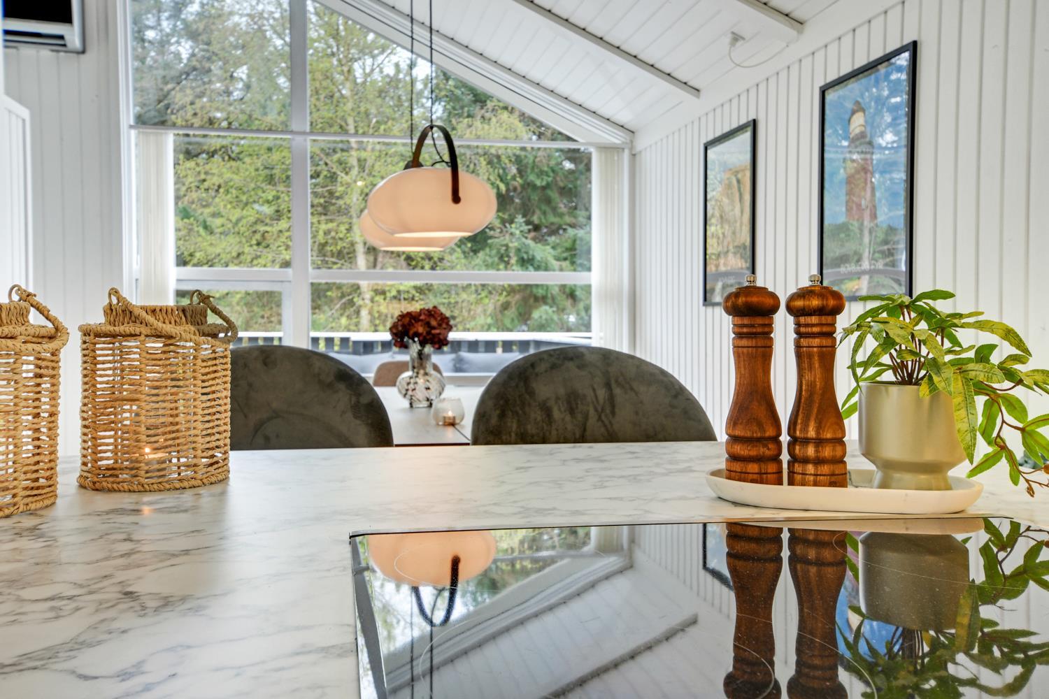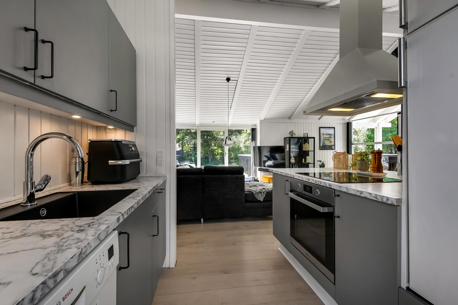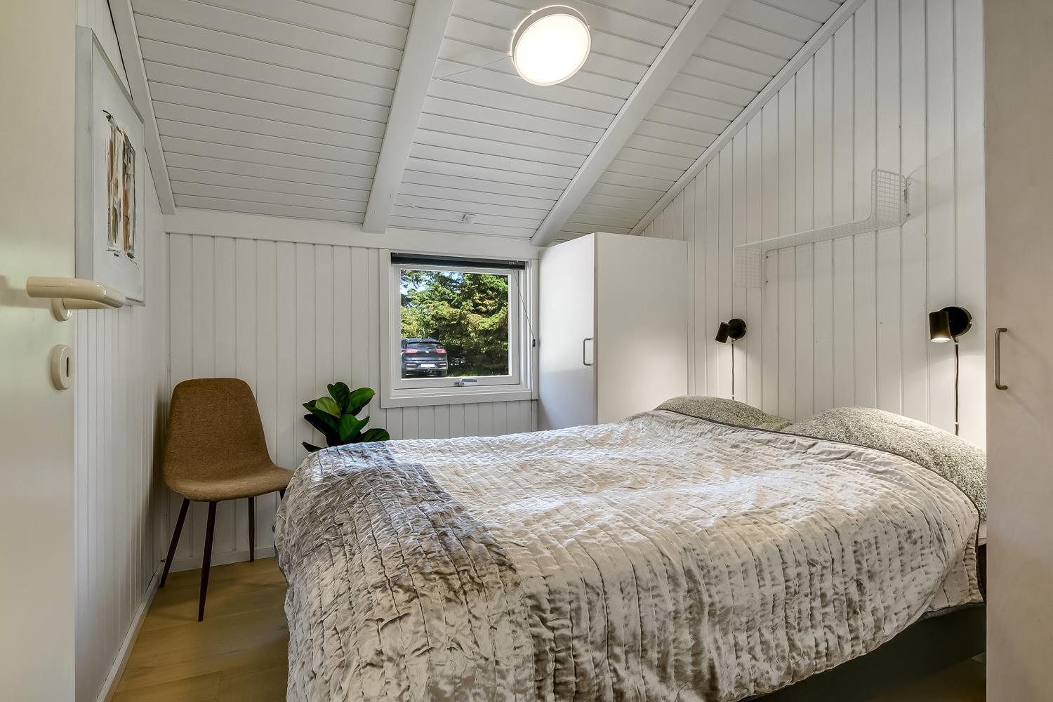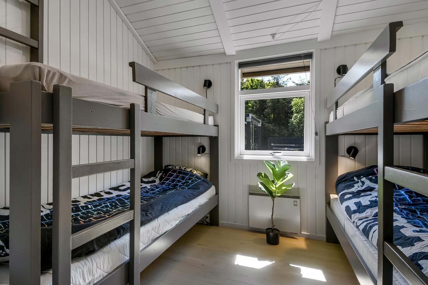 Træd ind i dette skønne og rummelige feriehus på 92 m2, hvor komfort og hygge mødes. Med fire godt indrettede soveværelser (1DS, 1DS, 1DS, 2KS). Herudover er der også hyggelig hems med plads til yderligere to personer. En rigtig lille hule som børnene vil elske. Der rigeligt med plads til hele familien eller gruppen af venner – dog må huset beboes af max. 8 personer. Den åbne opholdsstue, flot indrette i lyse og venlige farver. Inviterer til afslapning i den hyggelig hjørnesofa, foran den knitrende brændeovn, mens I kan nyde jeres yndlingsfilm på det moderne TV med danske og tyske kanaler. Den opsatte varmepumpe søger for fantastisk indeklima året rundt og bidrager til en energisparende opvarmning af huset. Køkkenhjørnet er en sand kulinarisk oase, udstyret med alt hvad I behøver for at tilberede lækre måltider. Samtalekøkkenet har alt i service, køkkengrej. Opvaskemaskine, mikroovn, airfryer, keramiske kogeplader, indbygningsovn, køle-/fryseskab og emhætte. Spisearrangementet er praktisk placeret lige ved køkkenet og giver jer mulighed for at dele uforglemmelige øjeblikke sammen.