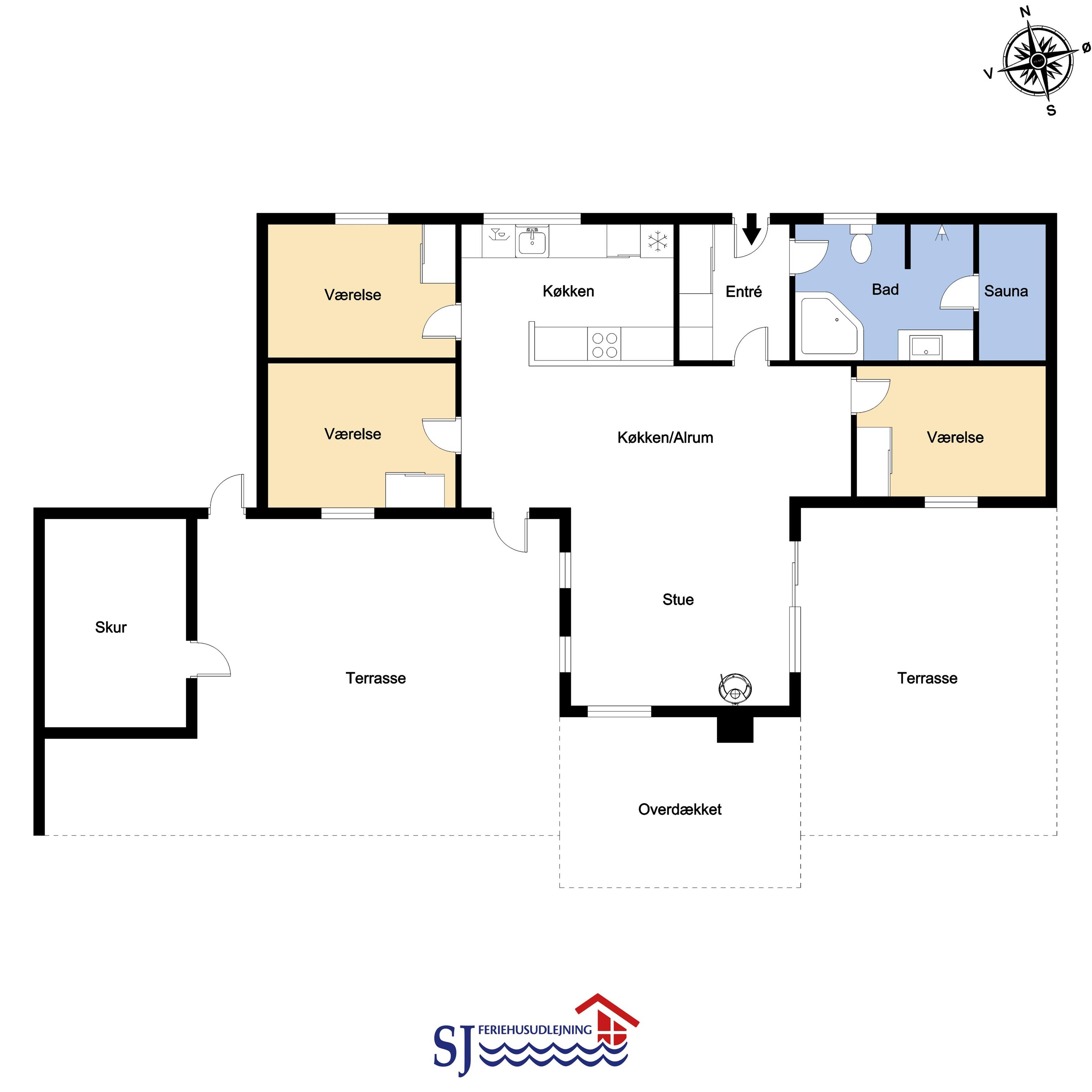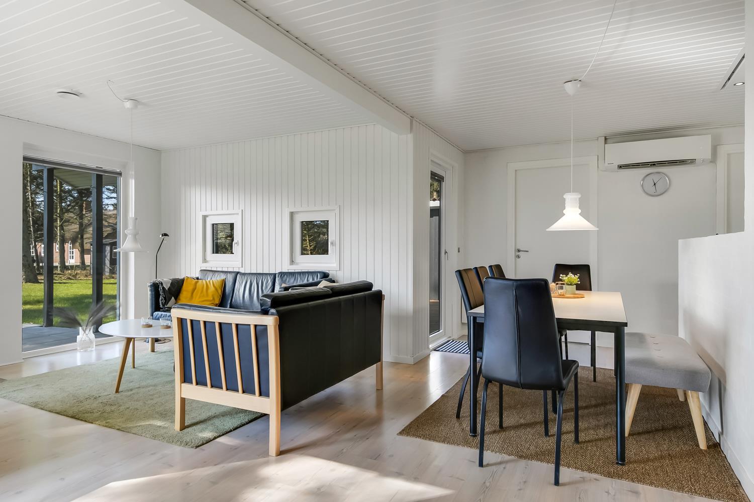 Parker bilen på den anlagte gårdsplads og begynd udpakningen. En dejlig entre med vaskemaskine og tørretumbler byder jer velkommen og fører jer direkte ind i den lyse og venlige opholdsstue. 3 soverum (1DS, 2ES, 2ES). Dejligt Køkkenhjørne med alt i service og køkkengrej. Quooker Vandhane. Komfur med glaskeramiske kogeplader, emhætte som er integreret i loftet, mikroovn, opvaskemaskine og køleskab med lille fryseboks. Tæt ved køkkenet står spisebordet til 6 personer med en hyggelig bænk og 4 stole. Opholdsstuen har dejlige lædermøbler hvorfra såvel danske som tyske kanaler kan ses på husets fladskærm, der er desuden Chromecast så I kan streame Apps/TV/Radio så I kan streame de ting som I selv har et abonnement til. Varmepumpe og en ny Morsø brændeovn sørger for at huset billigt kan opvarmes på alle årstider. Husets badeværelse har bruser, toilet, håndvask, klinkegulv med gulvvarme og direkte adgang til saunaen, der er desuden monteret en håndklædetørrer. Praktiske trægulve i hele huset. Har man el-bil eller en Plug-In hybrid, så er der ved Ladeboks til Type 2 ladestik, der kan lade op til 3,8 kWh. Ikke ryger hus. Barneseng og højstol til de mindste. Husdyr ikke tilladt.