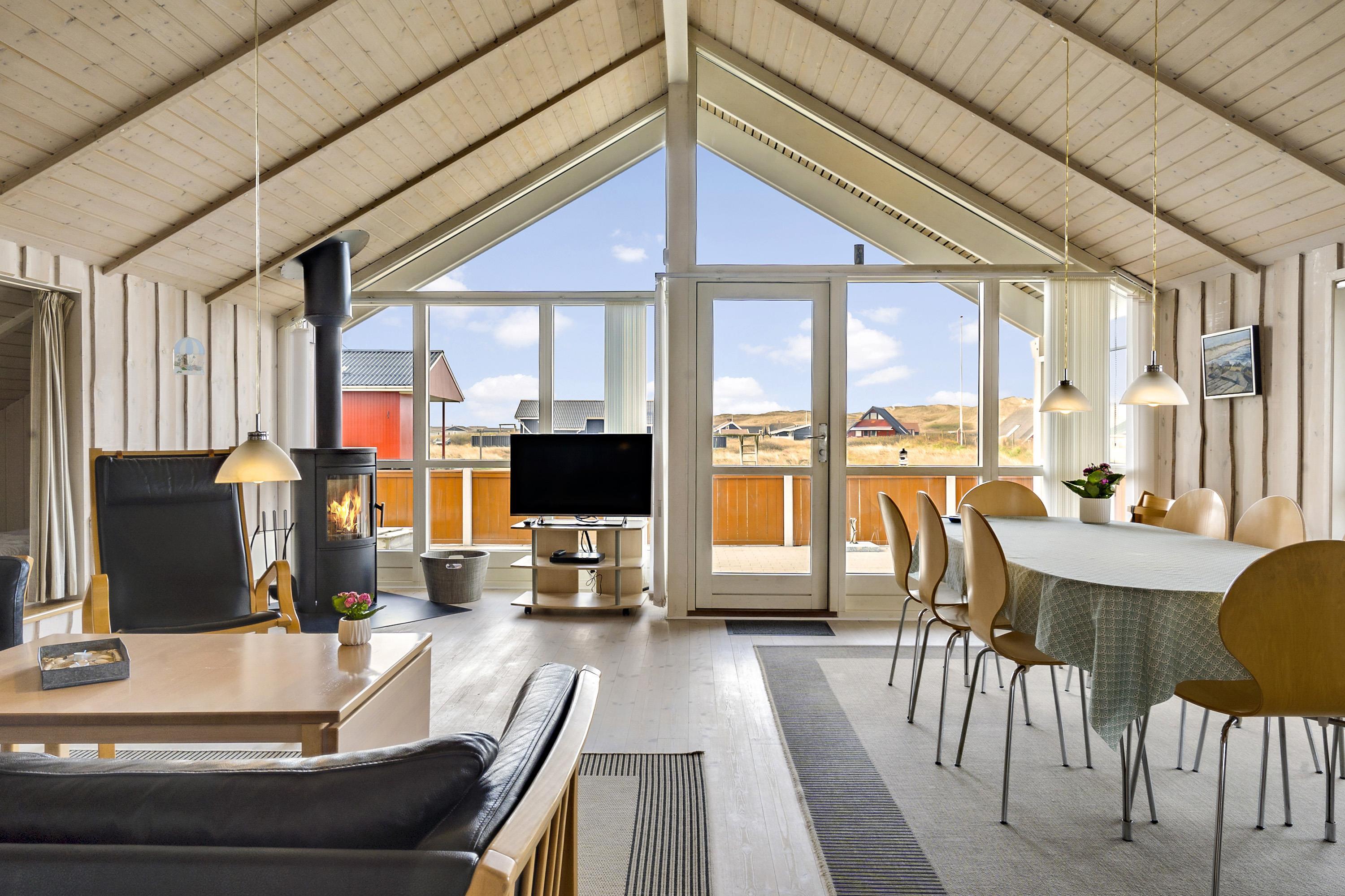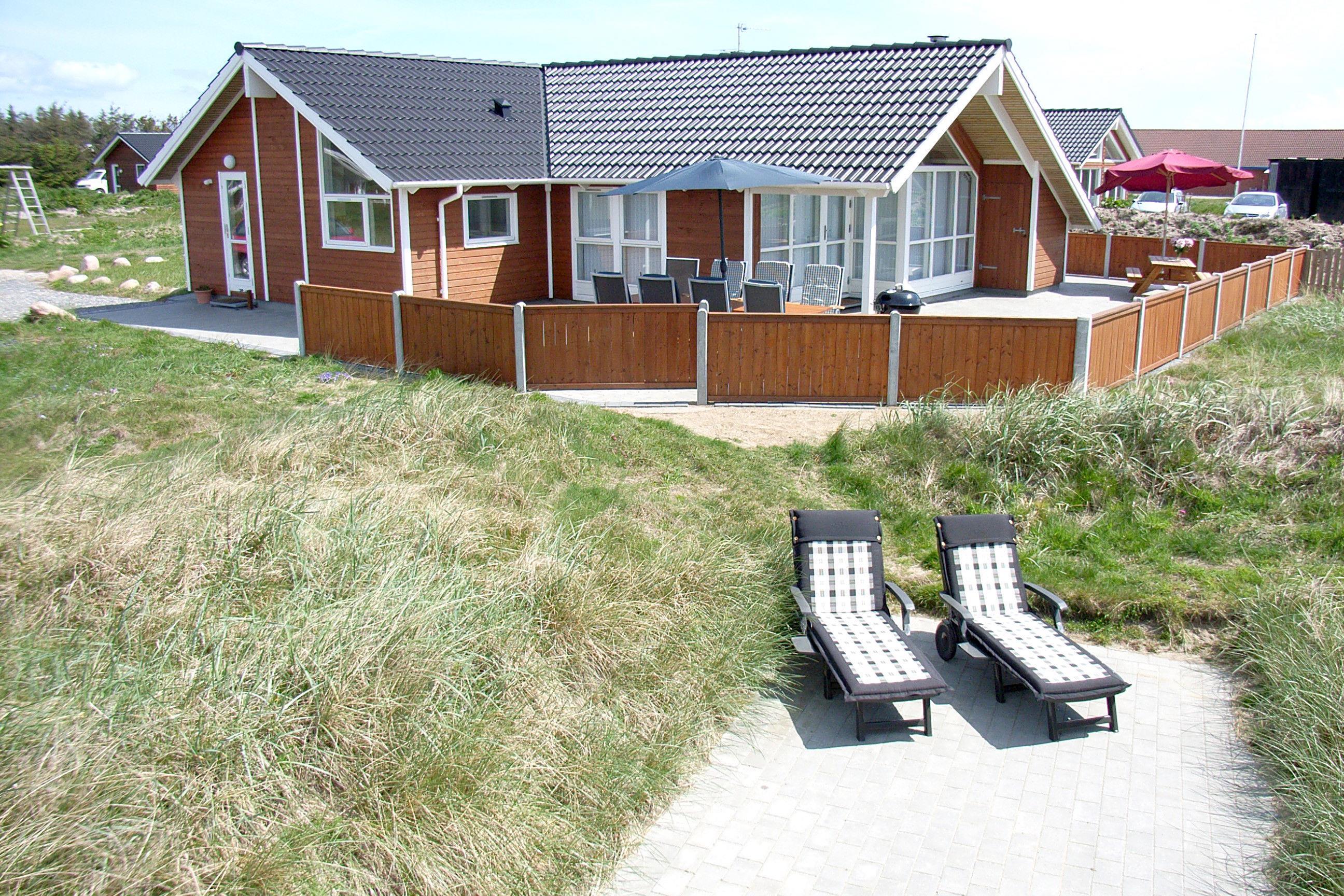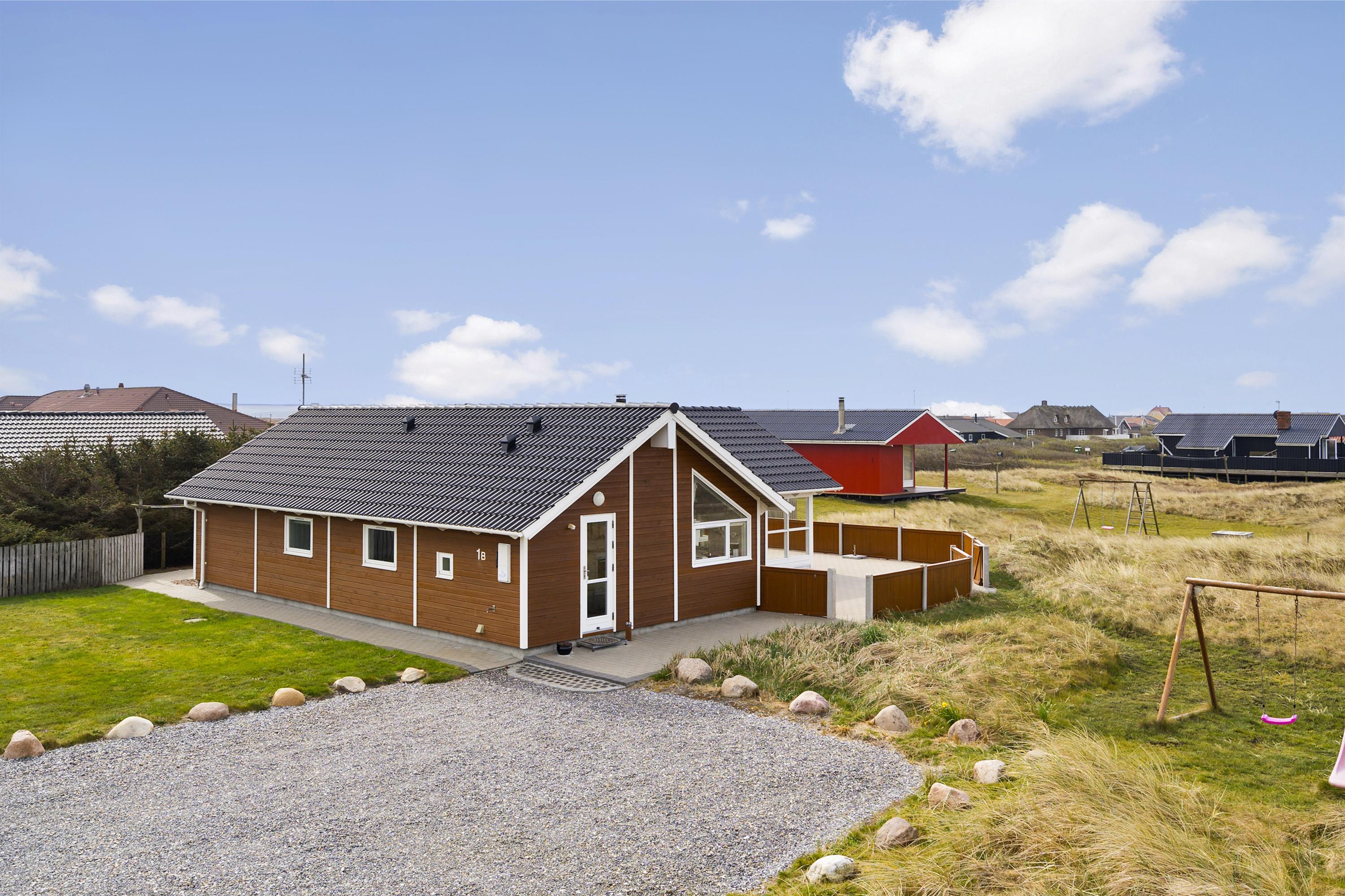 Huset er omgivet af en stor terrasse, som er indhegnet, her er der altid mulighed for at finde læ og nyde solen. Der er naturligvis havemøbler, solvogne og en grill, så man kan få den hyggelige stemning på terrassen og nyde aftensmaden direkte fra grillen. Fra dette hus er der blot 150 m til den dejlige, hvide sandstrand og Vesterhavet, hvor man kan få mange timer til at gå med lange spadsereture eller blot sidde i en klit og nyde havets brusen og den afslappende ro, et hav giver. Vil man ud på tur, kan man tage det lokale VLTJ tog, som kører fra Vemb til Thyborøn. Der er mulighed for at købe en familiebillet, som kan bruges en hel dag, hvilket kan give mulighed for at besøge både havnebyen Thyborøn og Lemvig uden at skulle bruge bilen. Offentlig legeplads blot 200-300 m fra huset. Ladestation til E-biler findes 100 m fra huset.