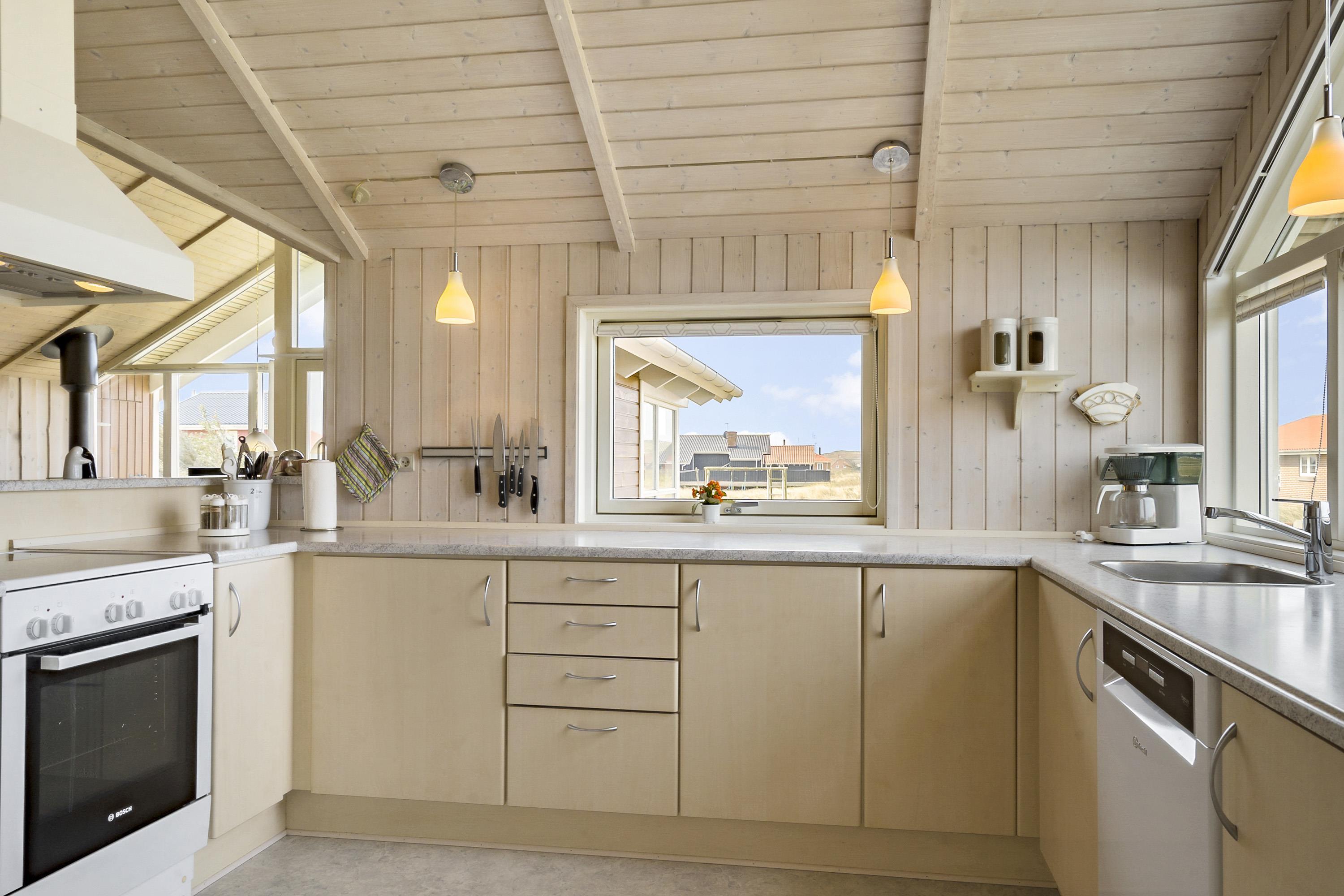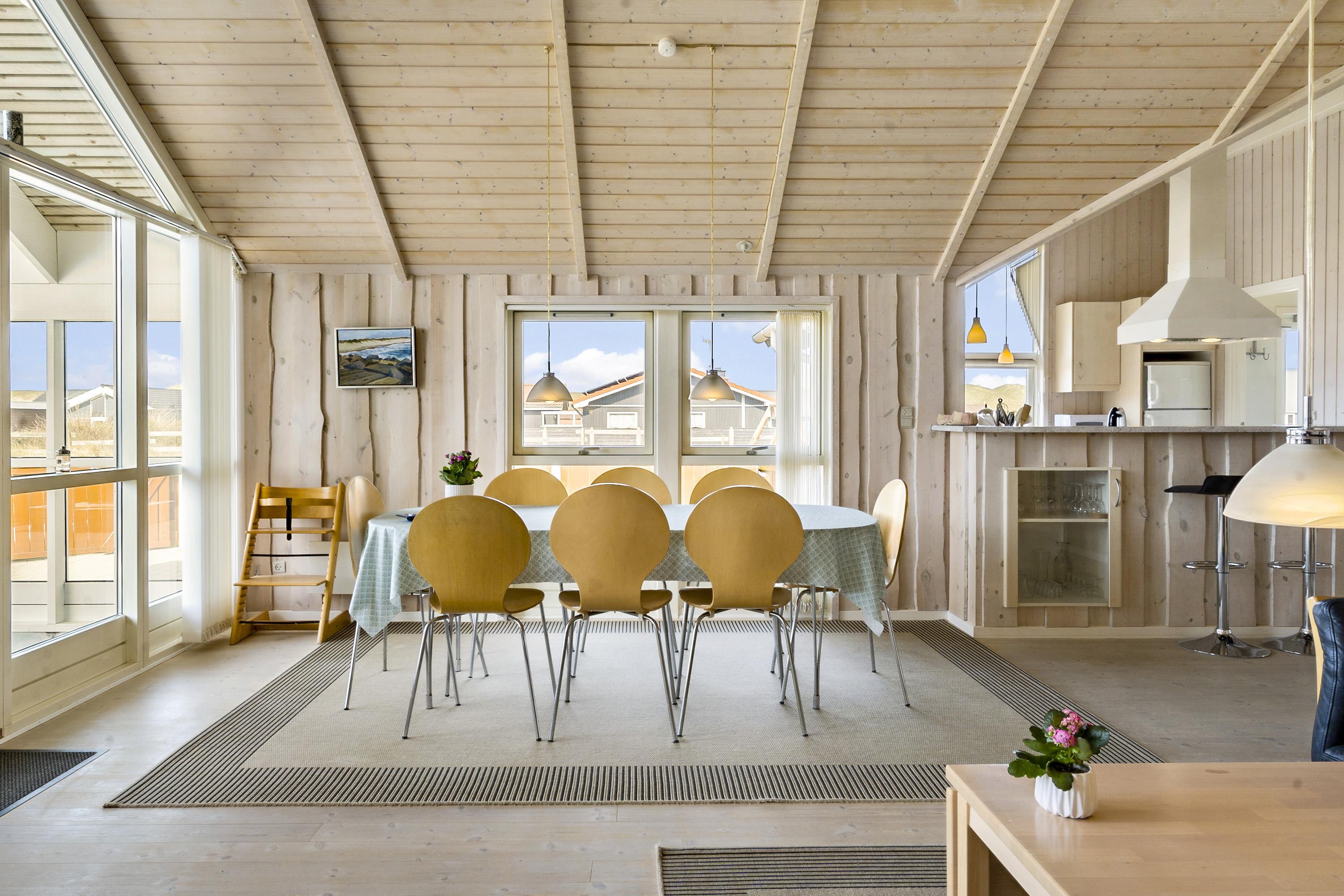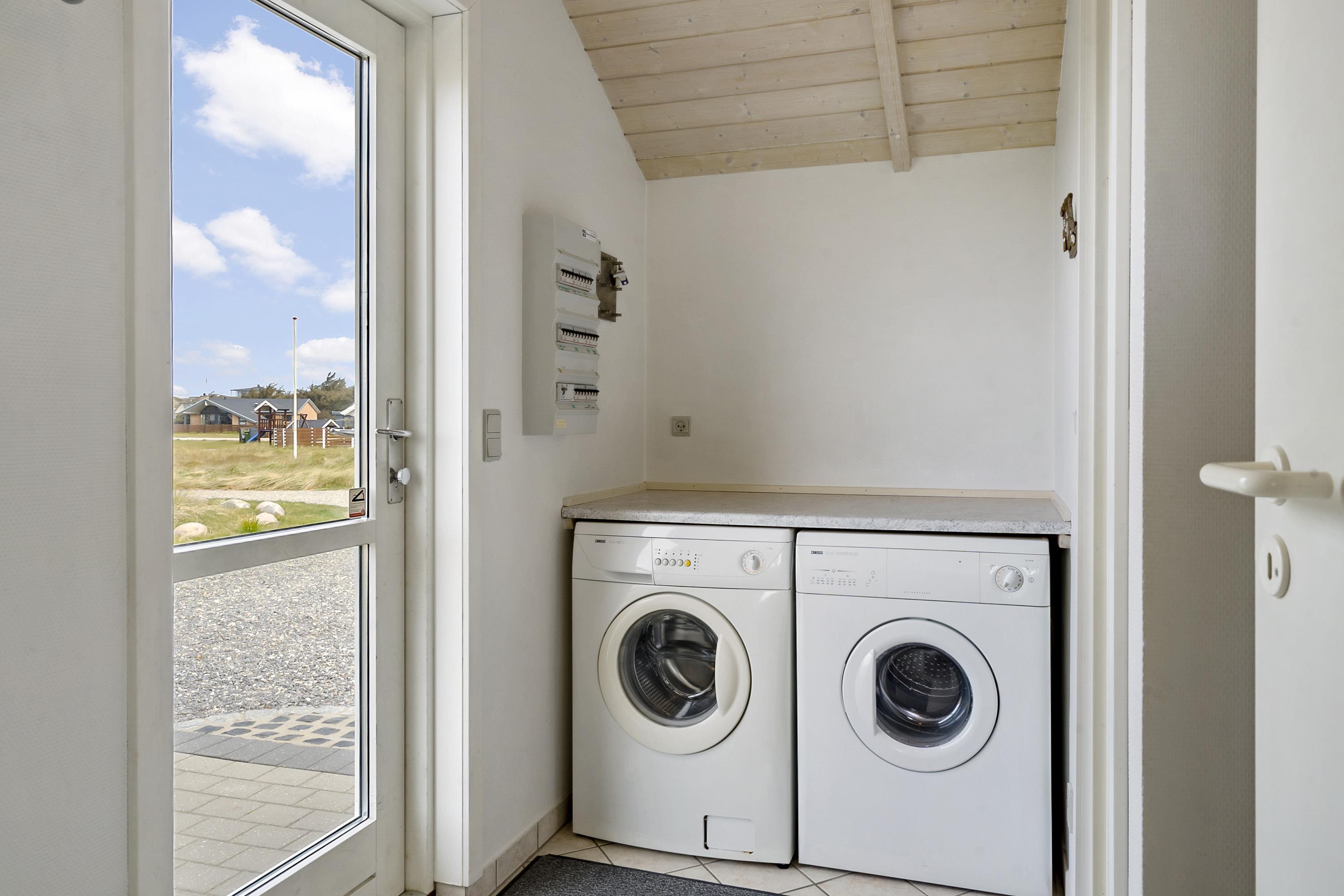 Huset er omgivet af en stor terrasse, som er indhegnet, her er der altid mulighed for at finde læ og nyde solen. Der er naturligvis havemøbler, solvogne og en grill, så man kan få den hyggelige stemning på terrassen og nyde aftensmaden direkte fra grillen. Fra dette hus er der blot 150 m til den dejlige, hvide sandstrand og Vesterhavet, hvor man kan få mange timer til at gå med lange spadsereture eller blot sidde i en klit og nyde havets brusen og den afslappende ro, et hav giver. Vil man ud på tur, kan man tage det lokale VLTJ tog, som kører fra Vemb til Thyborøn. Der er mulighed for at købe en familiebillet, som kan bruges en hel dag, hvilket kan give mulighed for at besøge både havnebyen Thyborøn og Lemvig uden at skulle bruge bilen. Offentlig legeplads blot 200-300 m fra huset. Ladestation til E-biler findes 100 m fra huset.