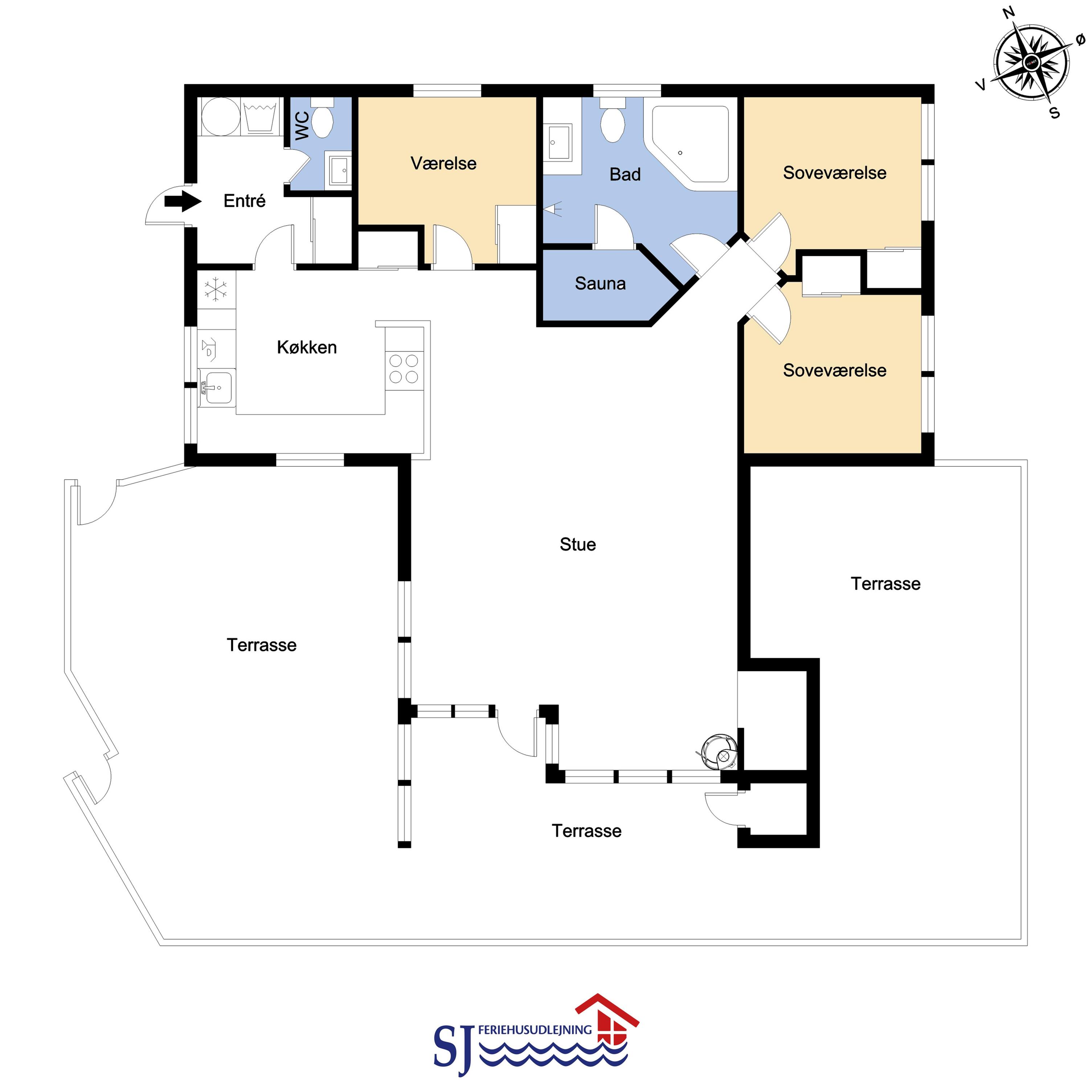 Huset er meget lyst og venligt indrettet med store vinduespartier, som giver et godt lysindfald. Køkkenet er veludstyret og indeholder alle tænkelige former for hjælpemidler såsom opvaskemaskine, mikroovn og køle/fryseskab. Stuen er med komfortable møbler, selvfølgelig et fladskærms-TV med DR1 og en parabol til de tyske kanaler. DVD og CD. Slap af foran den knitrende brændeovn som sammen med varmepumpen hjælper med at reducere udgiften til varmeregningen. Husets 3 soverum er indrettet med 1DS + 1DS + 2S, og så er der desuden i stuen en alkove med 2 sovemuligheder. Der er åbent til kip i stuen, og de lyse trævægge og lofter giver sammen med lysindfaldet fra de store vinduer en lys og venlig atmosfære i rummet. Til de helt små er der barneseng og barnestol til rådighed. Dejligt badeværelse med toilet, håndvask, bruser, spabad, gulvvarme og direkte adgang til sauna. Ekstra toilet med toilet, håndvask og gulvvarme. Bryggers med vaskemaskine og tørretumbler. 1 husdyr er tilladt. Dette hus er et ikke rygerhus.