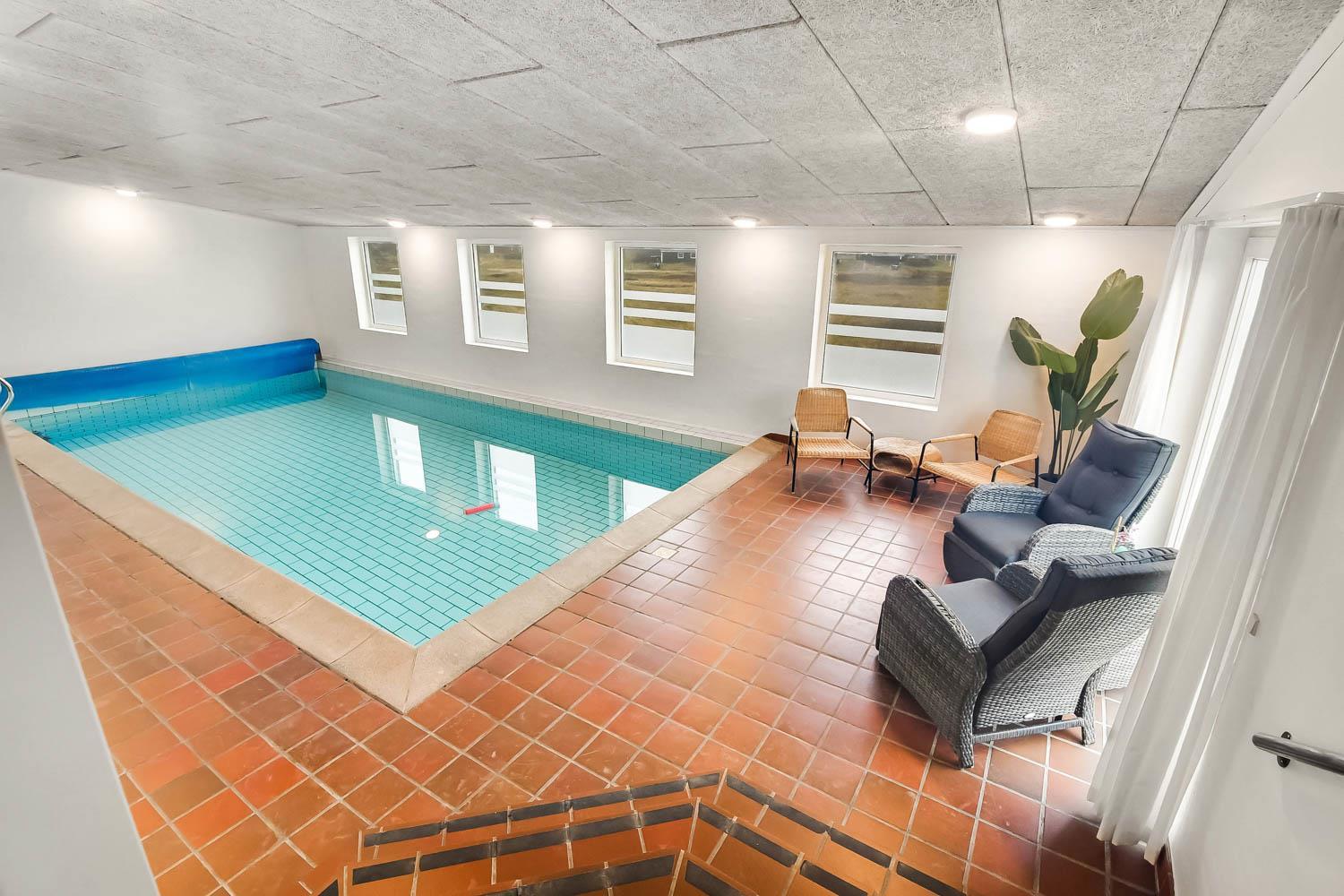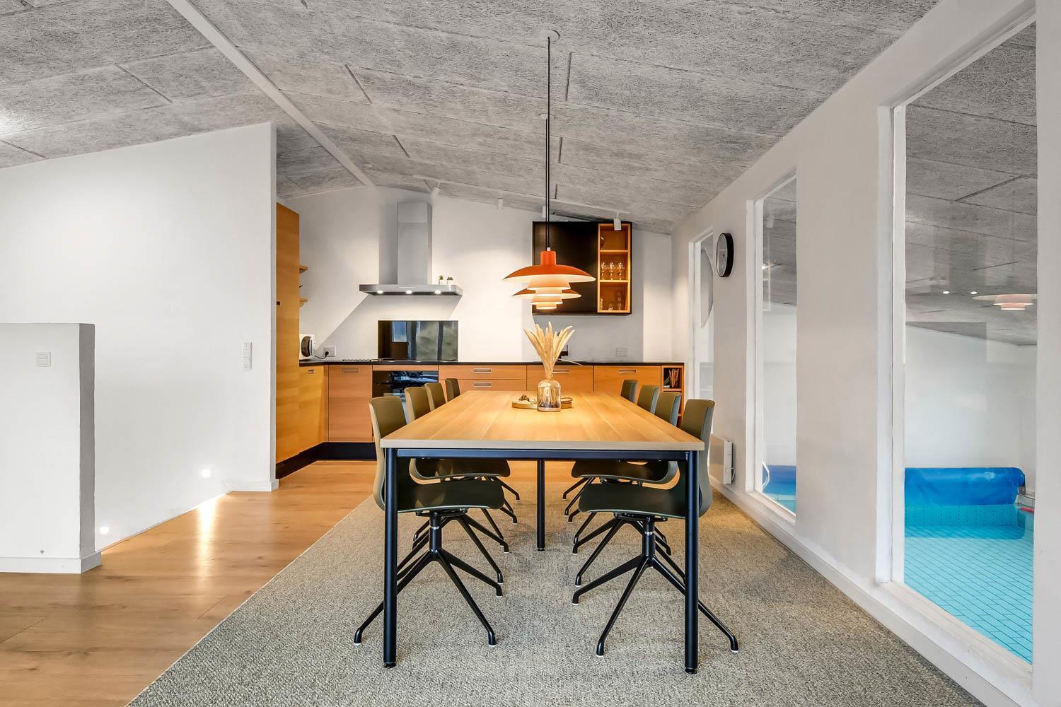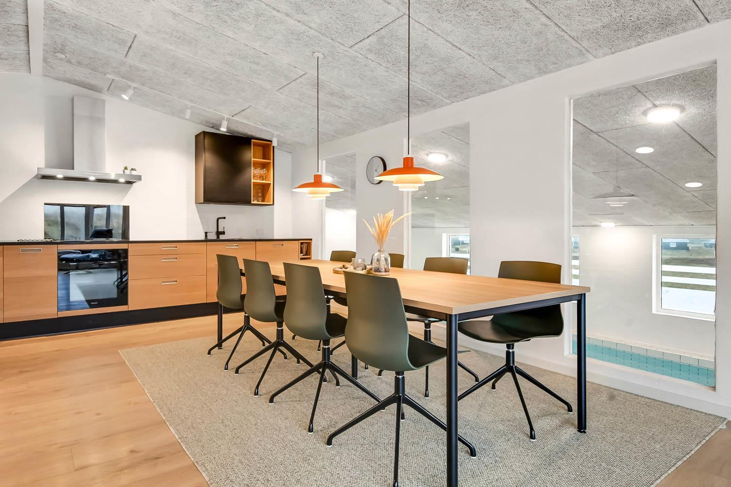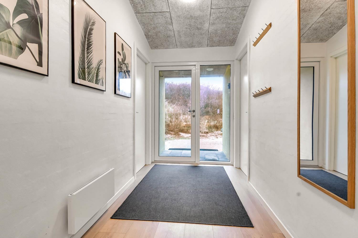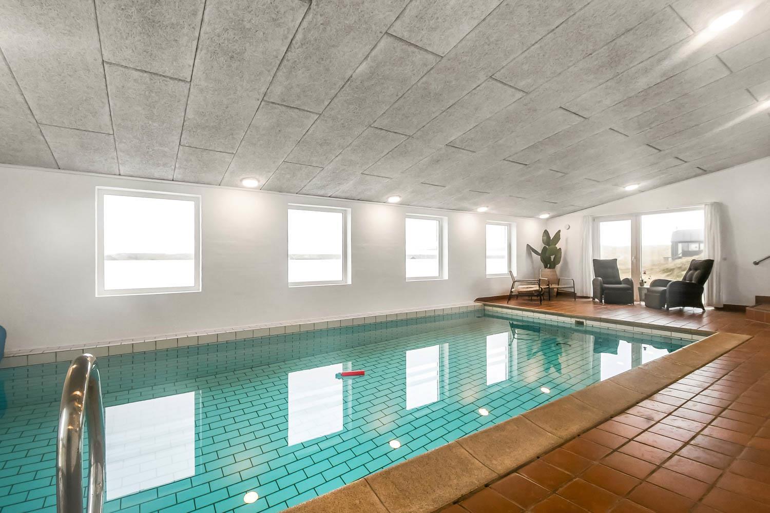 Dette pragtfulde hus er ca. 210 m2 stort og ligger kun 200 m til Vesterhavet. Huset er moderne og minimalistisk i sit udtryk og praktisk indrettet. En stor entrè / Værelsesgang byder velkommen. Huset har 4 store soverum (1DS + 1DS + 2ES + 2ES). Der er barnestol og barneseng til de små gæster. Kombineret køkkenhjørne og opholdsstue. Fra opholdsstuen er der udsigt til klitterne ved Vesterhavet og er indrettet med smart-TV, med danske og tyske programmer samt mulighed for streaming af TV / radio / Apps, nye lædermøbler, og spisebord. Slap af foran den knitrende brændeovn som hjælper med at reducere udgiften til varmeregningen i det, i forvejen, energioptimerede hus. Stilfuldt køkkenhjørne med alt i service og køkkengrej. Der er opvaskemaskine, kogeplade, indbygningsovn, emhætte, køleskab med fryseboks og mikroovn. Stort, lækkert badeværelse med bruseniche, håndvask, toilet og klinkegulv med gulvvarme og vaskesøjle med vaskemaskine og tørretumbler. I Poolrummet er der en stor pool, som er 8 x 4 x 1,45m. herfra er der indgang til et ekstra badeværelse med toilet, bruser og direkte adgang til husets sauna og gulvvarme. Nyt luft til vand anlæg gør huset særdeles energivenligt og bevirker også et billigere forbrug Max. 2 husdyr er tilladt. Huset lejes ikke ud til ungdomsgrupper. Depositum i vintersæson kr. 4.500 og sommersæson kr. 2.200. Rygning er ikke tilladt. .