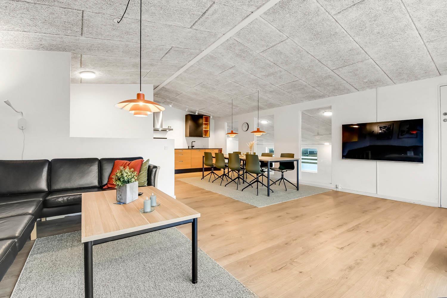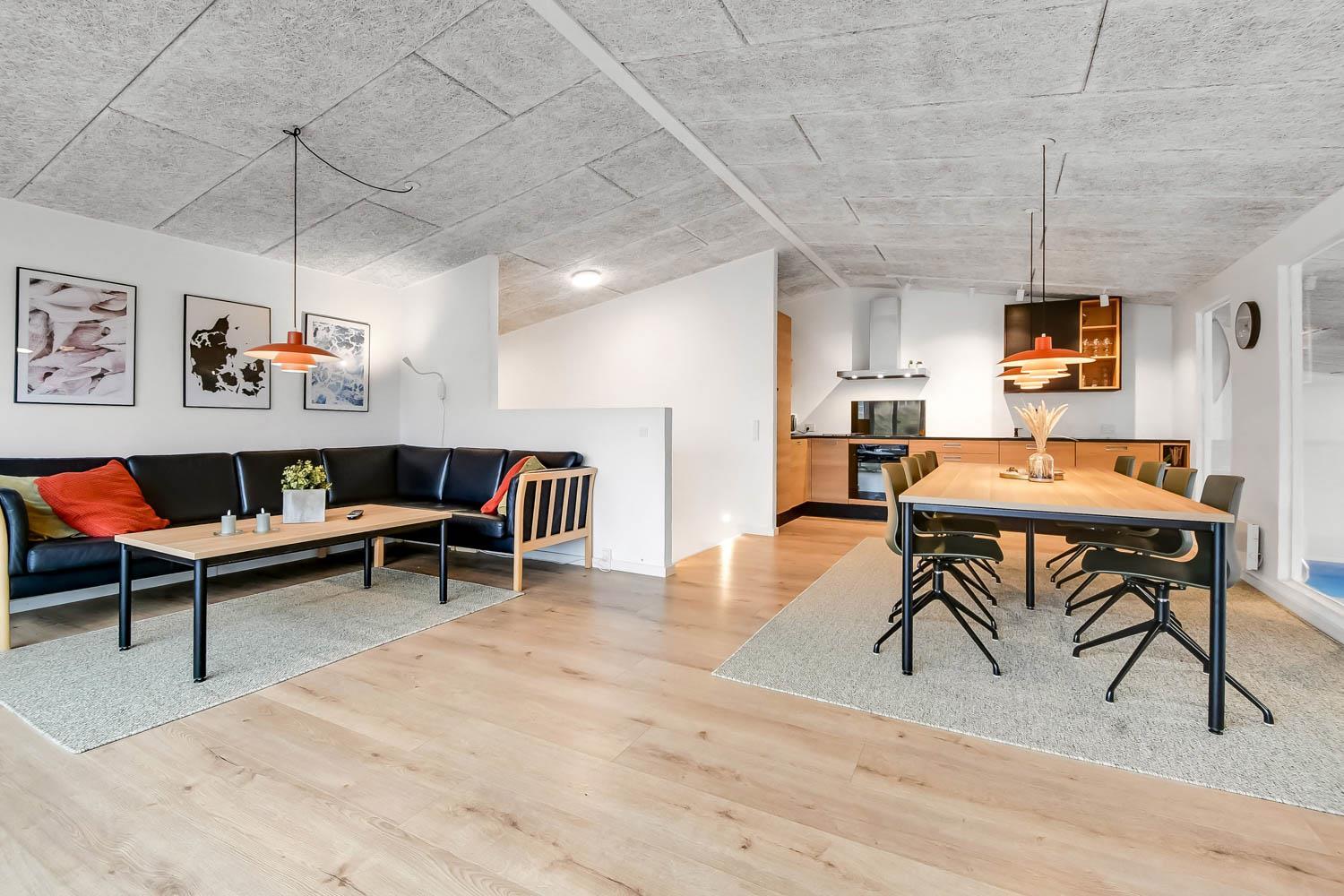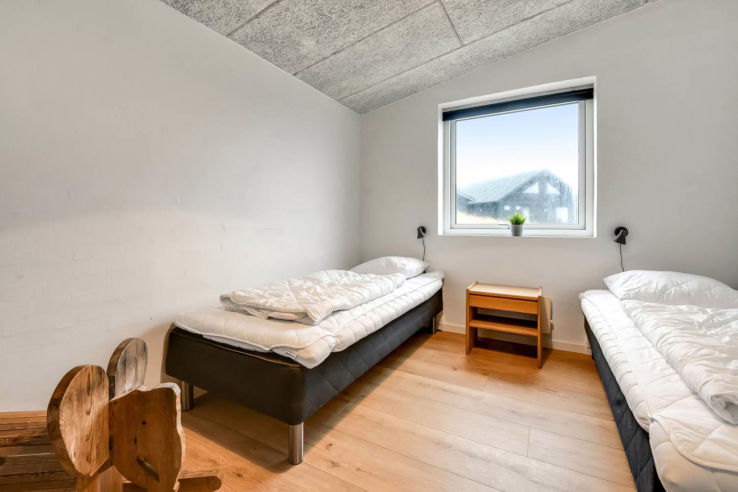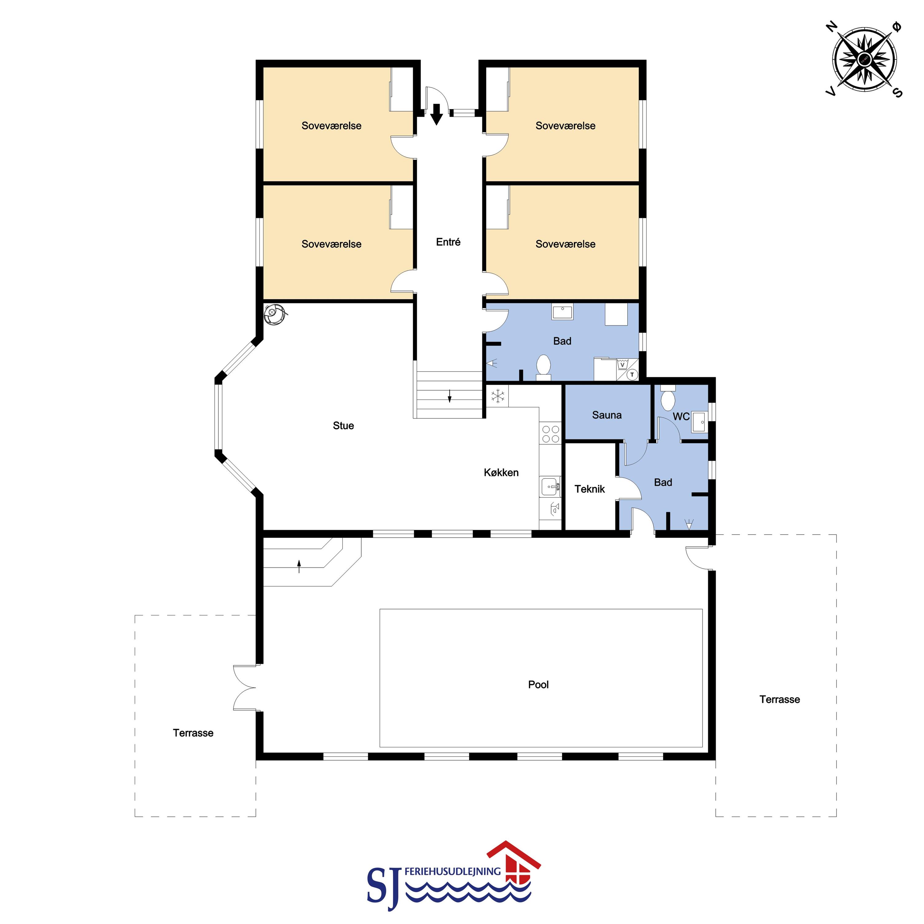 Dette pragtfulde hus er ca. 210 m2 stort og ligger kun 200 m til Vesterhavet. Huset er moderne og minimalistisk i sit udtryk og praktisk indrettet. En stor entrè / Værelsesgang byder velkommen. Huset har 4 store soverum (1DS + 1DS + 2ES + 2ES). Der er barnestol og barneseng til de små gæster. Kombineret køkkenhjørne og opholdsstue. Fra opholdsstuen er der udsigt til klitterne ved Vesterhavet og er indrettet med smart-TV, med danske og tyske programmer samt mulighed for streaming af TV / radio / Apps, nye lædermøbler, og spisebord. Slap af foran den knitrende brændeovn som hjælper med at reducere udgiften til varmeregningen i det, i forvejen, energioptimerede hus. Stilfuldt køkkenhjørne med alt i service og køkkengrej. Der er opvaskemaskine, kogeplade, indbygningsovn, emhætte, køleskab med fryseboks og mikroovn. Stort, lækkert badeværelse med bruseniche, håndvask, toilet og klinkegulv med gulvvarme og vaskesøjle med vaskemaskine og tørretumbler. I Poolrummet er der en stor pool, som er 8 x 4 x 1,45m. herfra er der indgang til et ekstra badeværelse med toilet, bruser og direkte adgang til husets sauna og gulvvarme. Nyt luft til vand anlæg gør huset særdeles energivenligt og bevirker også et billigere forbrug Max. 2 husdyr er tilladt. Huset lejes ikke ud til ungdomsgrupper. Depositum i vintersæson kr. 4.500 og sommersæson kr. 2.200. Rygning er ikke tilladt. .