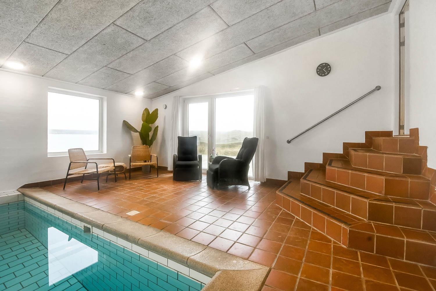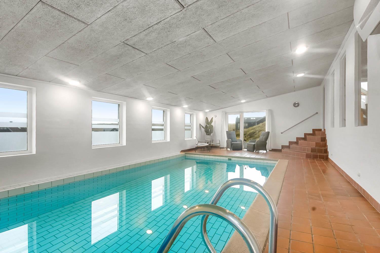Flot renoveret og moderniseret feriehus med stor pool og sauna. Beliggende på en af de mest efterspurgte grunde i området på en kuperet natur/klitgrund blot 200 m fra Vesterhavet. Utrolig dejligt hus med gratis Internet. Et hus som sammen med de fantastiske omgivelser og den unikke beliggenhed vil danne den perfekte ramme om jeres ferie.