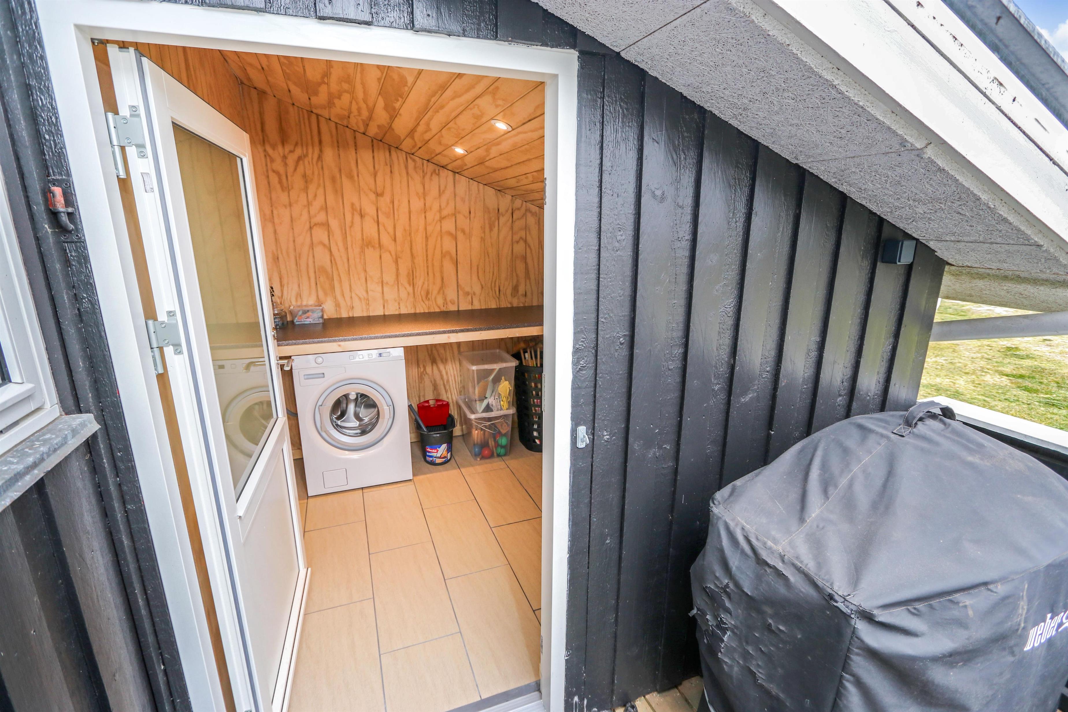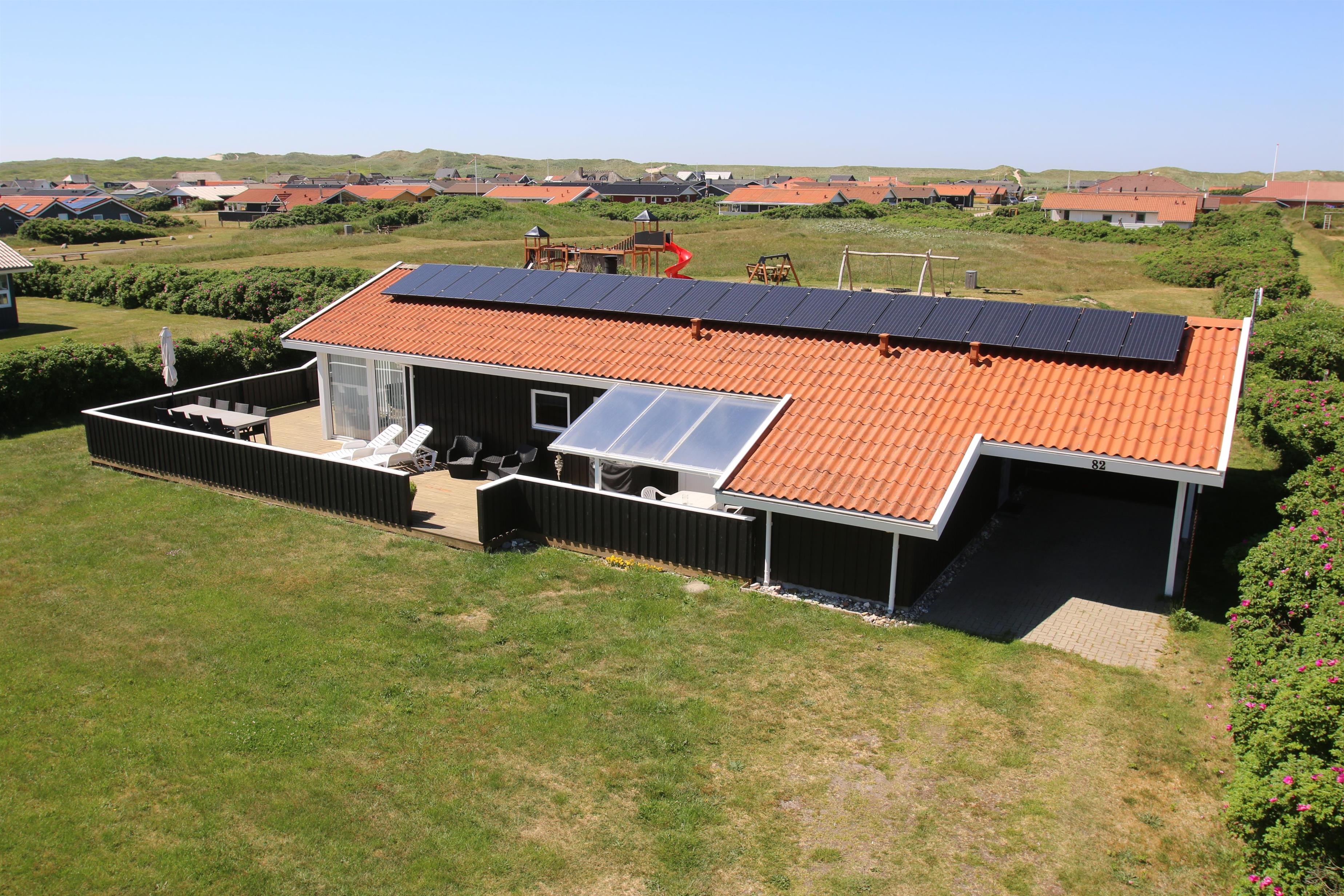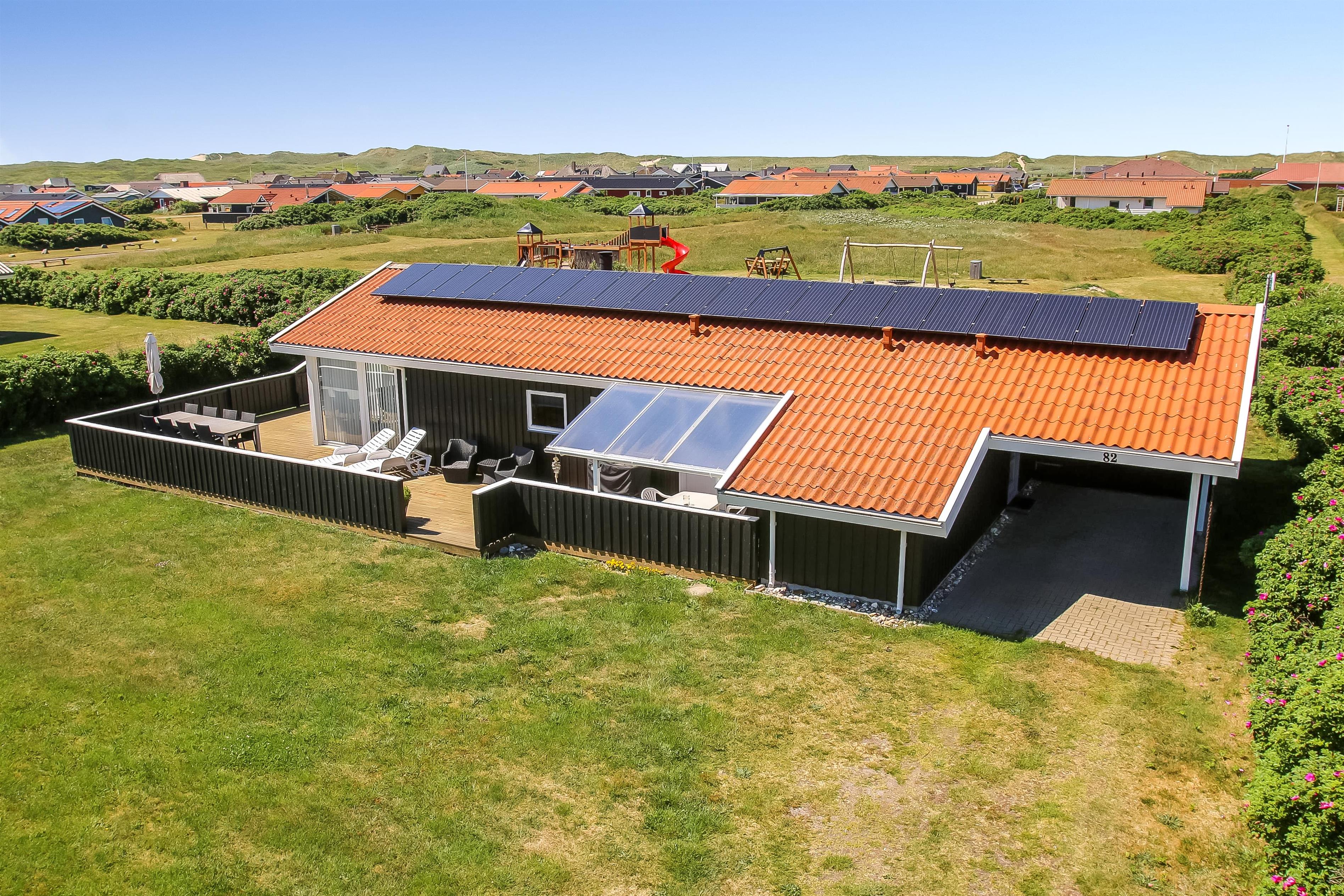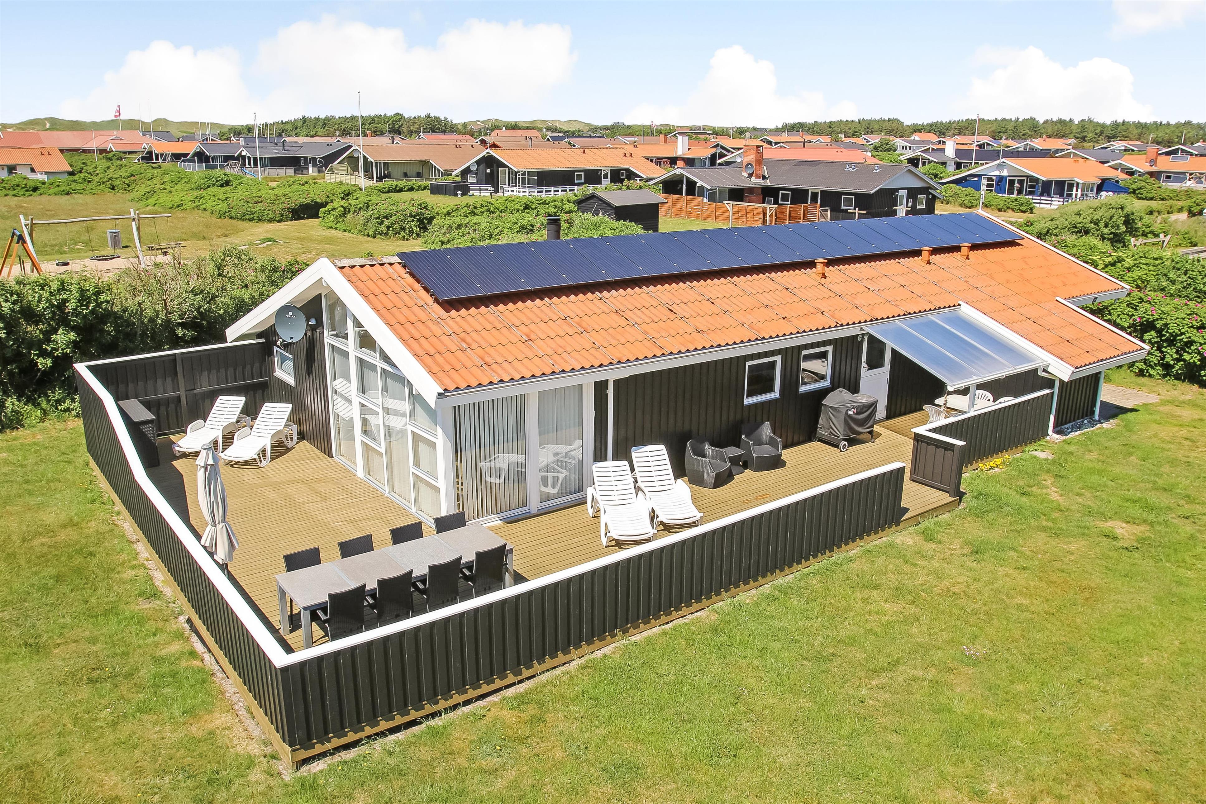 Huset er omgivet at et stort træterrasseanlæg som i 2022 er udvidet med en dejlig vestterrasse. Hele terrassen er omkranset af et stakit. Havemøbler, parasol og grill. Området omkring Vejlby og Ferring sø ligger ikke langt fra det brusende Vesterhav, indkøbsmuligheder, legeplads og stranden. Naturen indbyder til udendørsaktiviteter året rundt - uanset om det er gåture i landskabet omkring søen eller en strandtur. Der er ikke langt til dagligvarebutikker i både Vejlby og Harboøre - Og er du i bil kan du køre til Lemvig - 'Smilets by' eller den meget populære turistby Thyborøn, hvor du begge steder finder flere dagligvarebutikker samt velfungerende detailhandel.