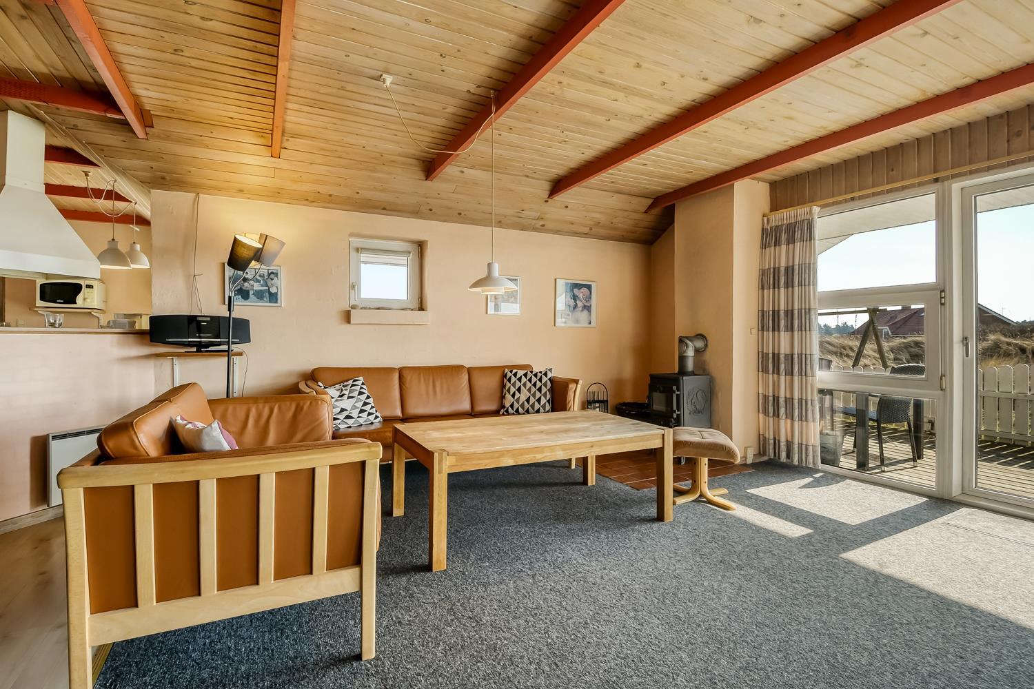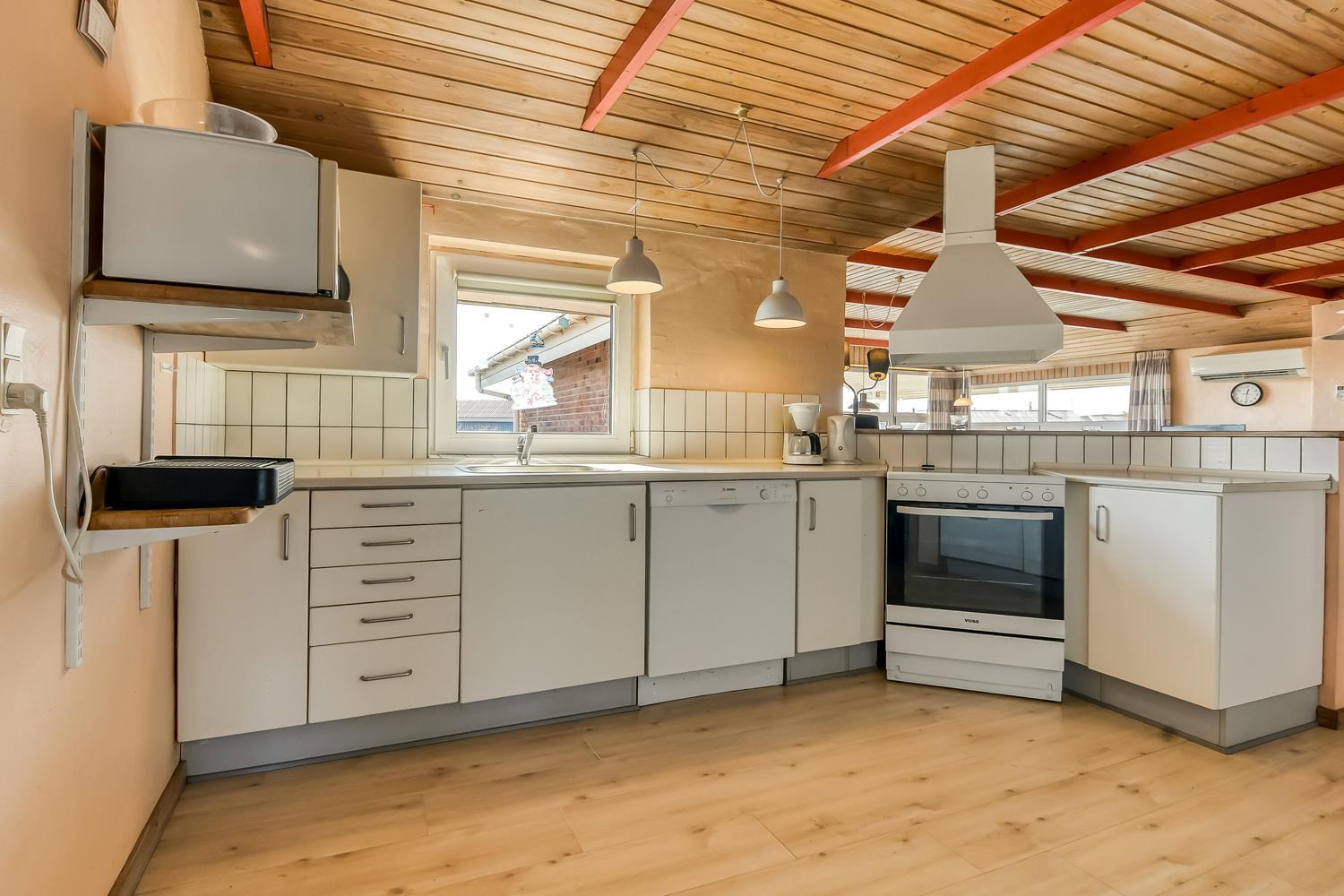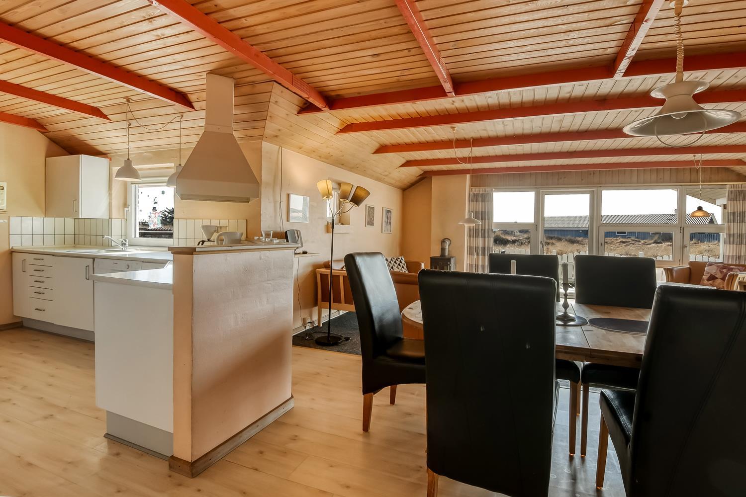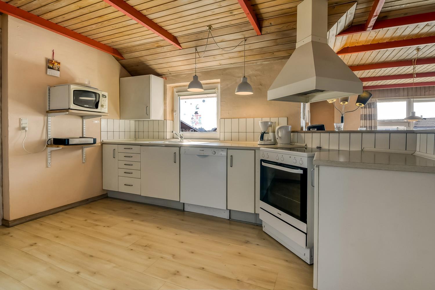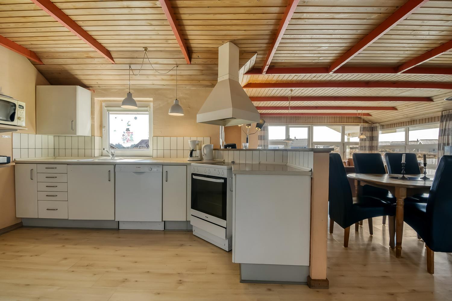 Det veludstyrede køkken rummer alle moderne faciliteter, så madlavningen bliver en fornøjelse. I den hyggelige stue kan du slappe af med farve-TV (DR1), parabol med tyske kanaler og stereoanlæg.
