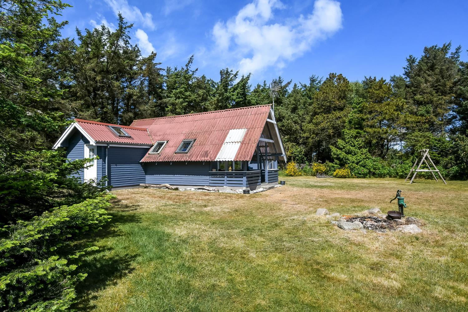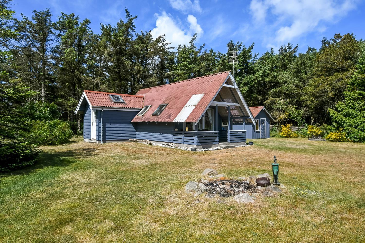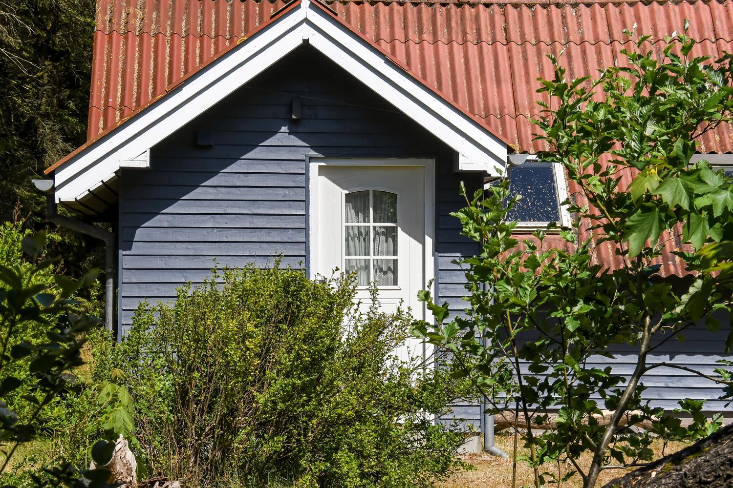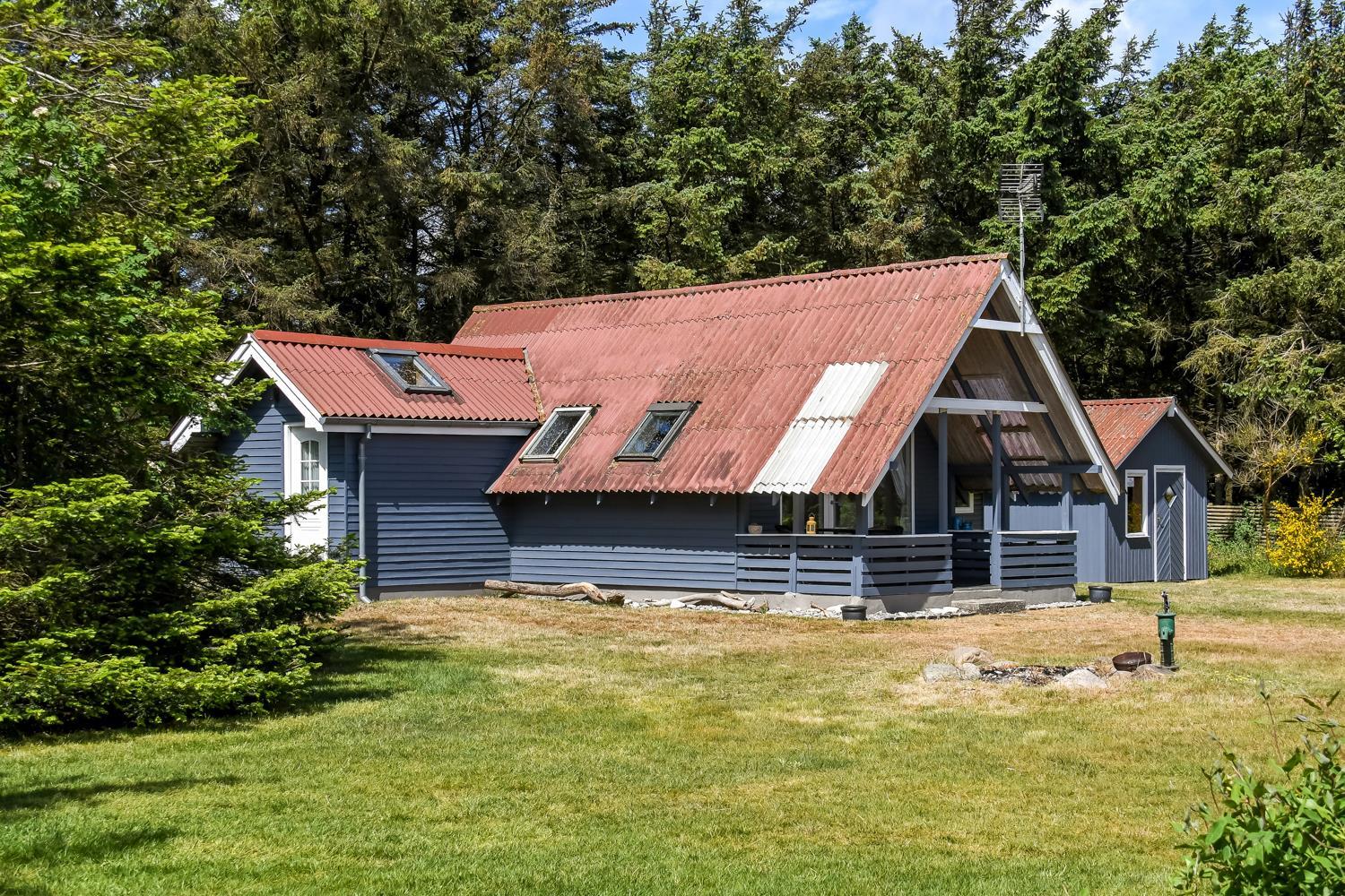 På en delvis skovgrund ligger dette totalt nyrenoveret feriehus i træ.