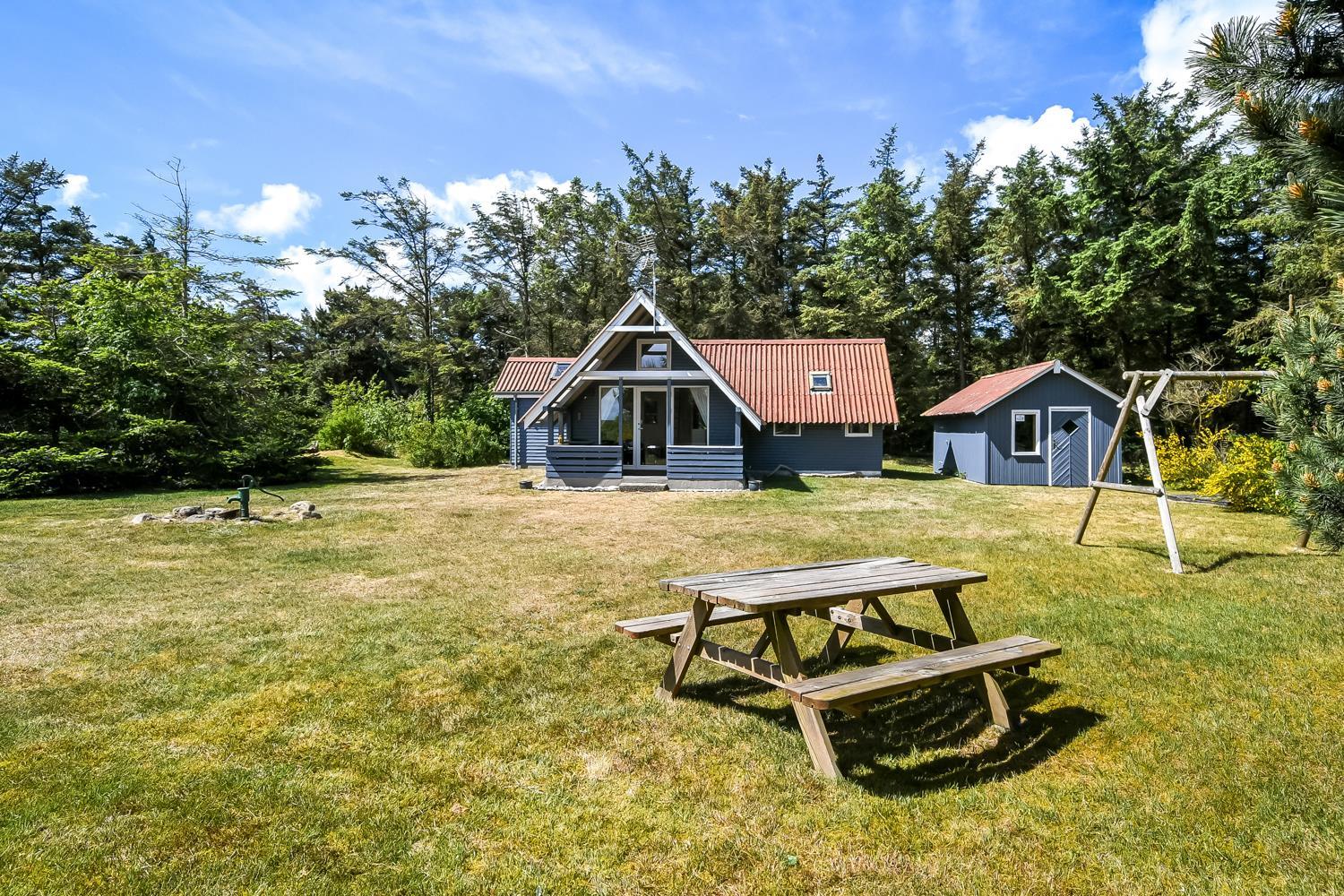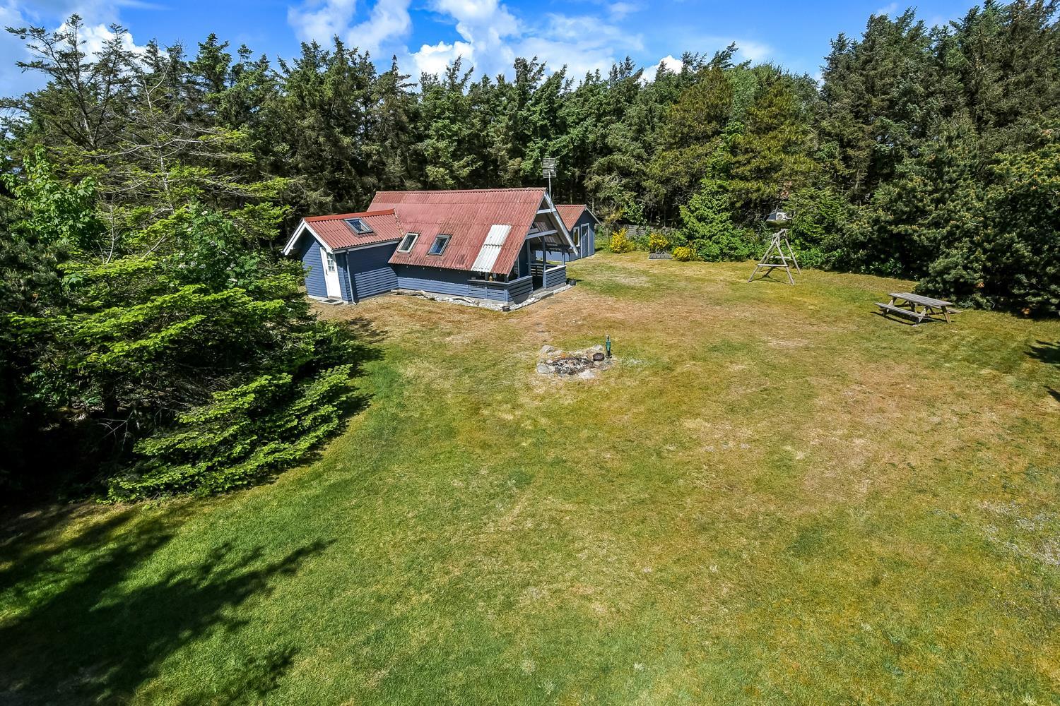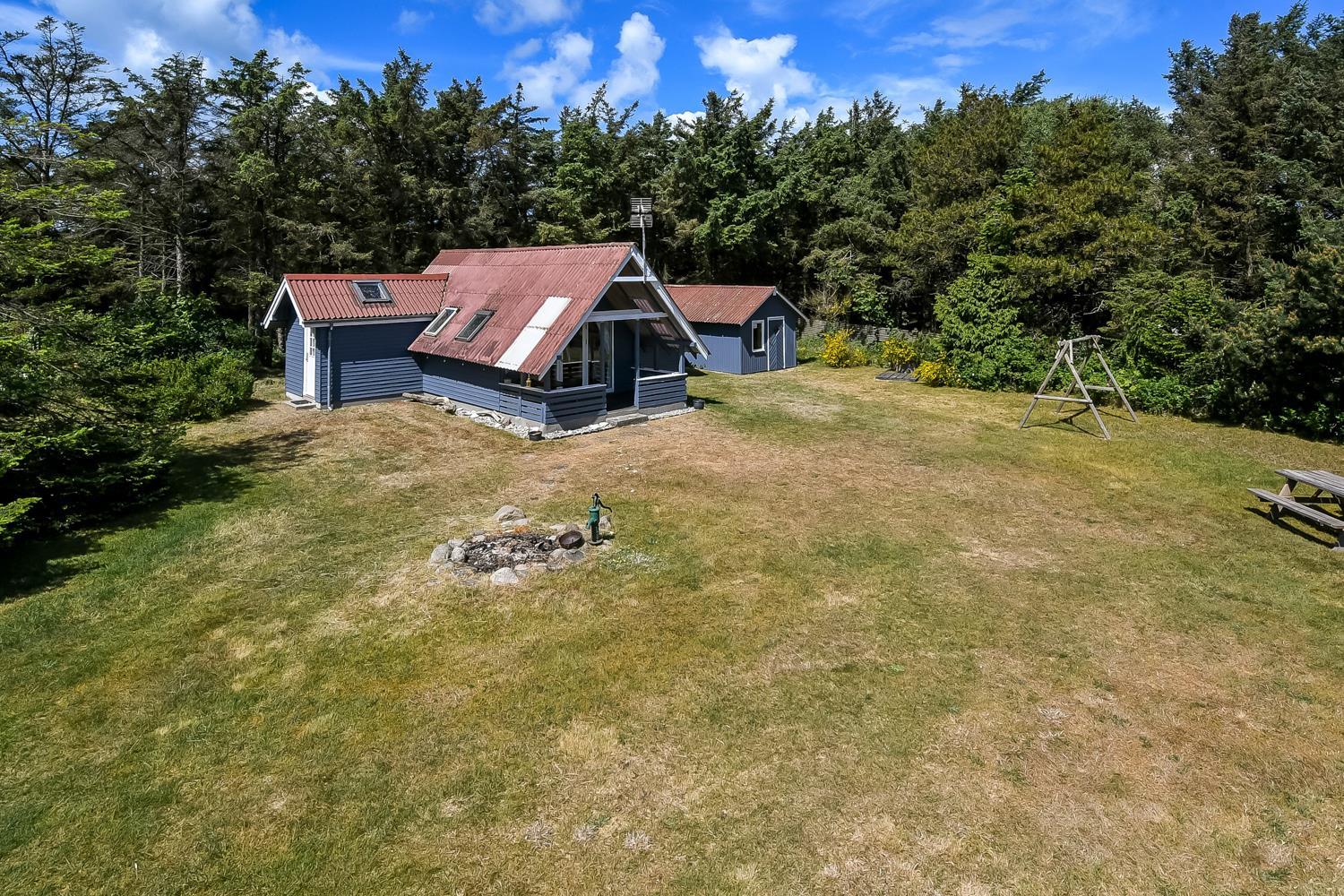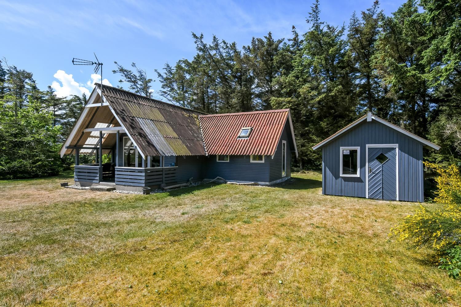 På en delvis skovgrund ligger dette totalt nyrenoveret feriehus i træ.