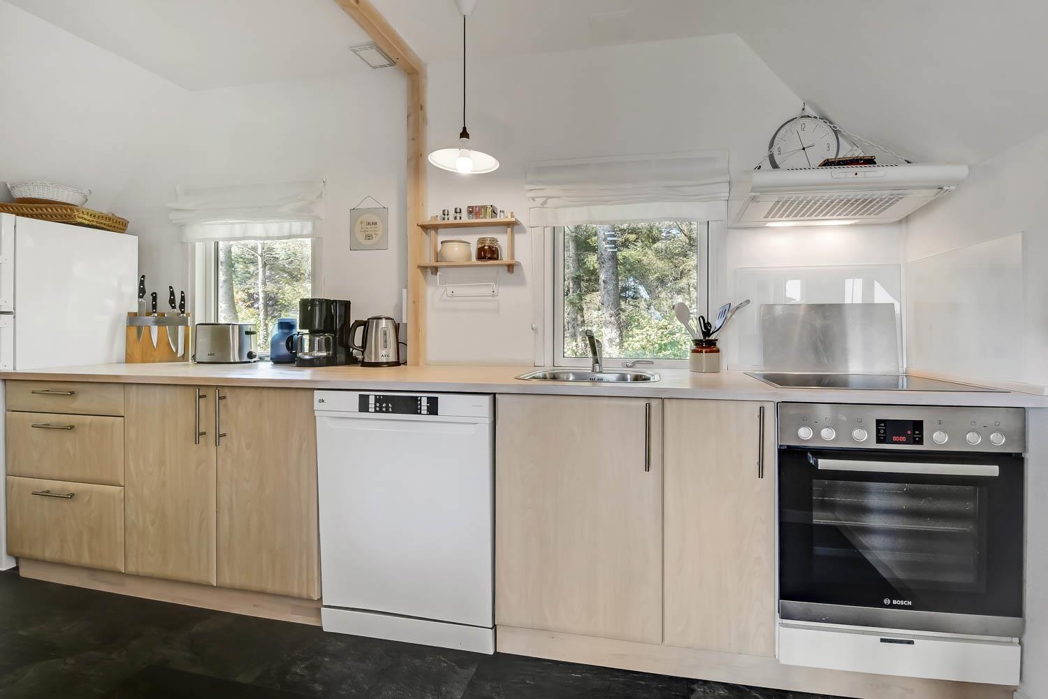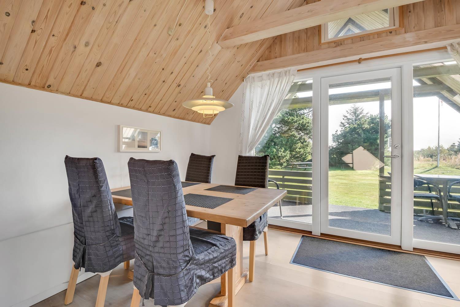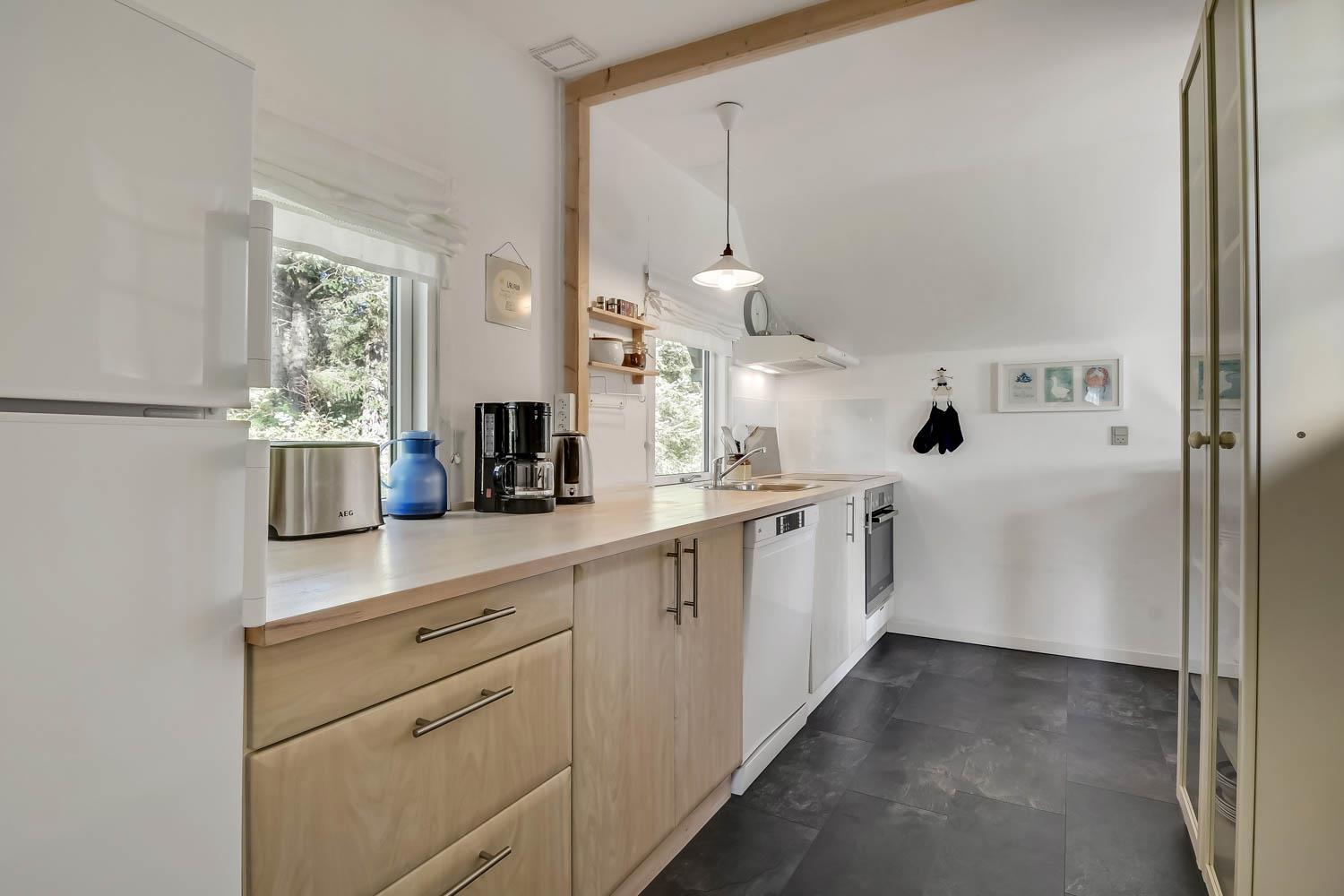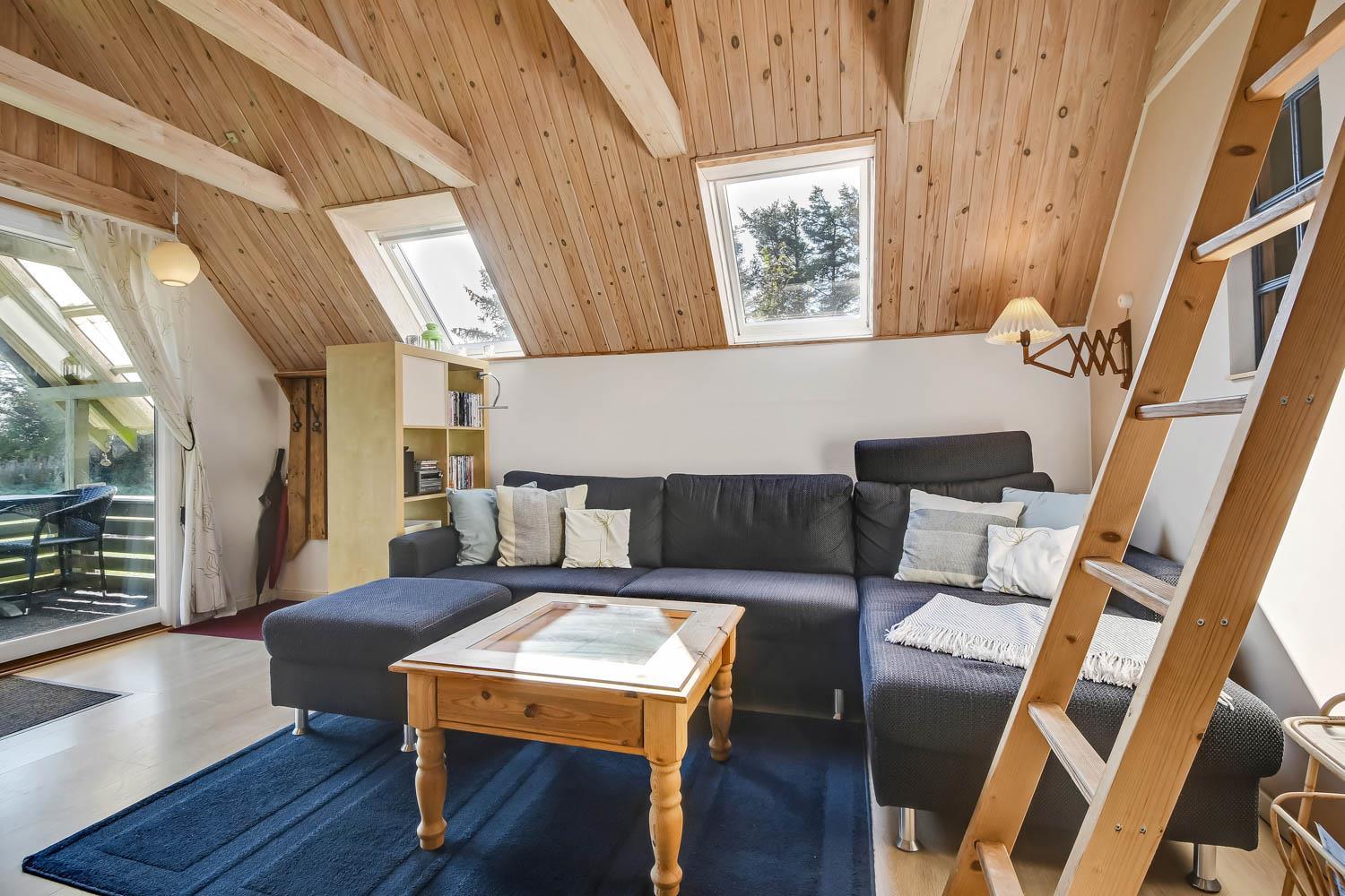 På en delvis skovgrund ligger dette totalt nyrenoveret feriehus i træ.