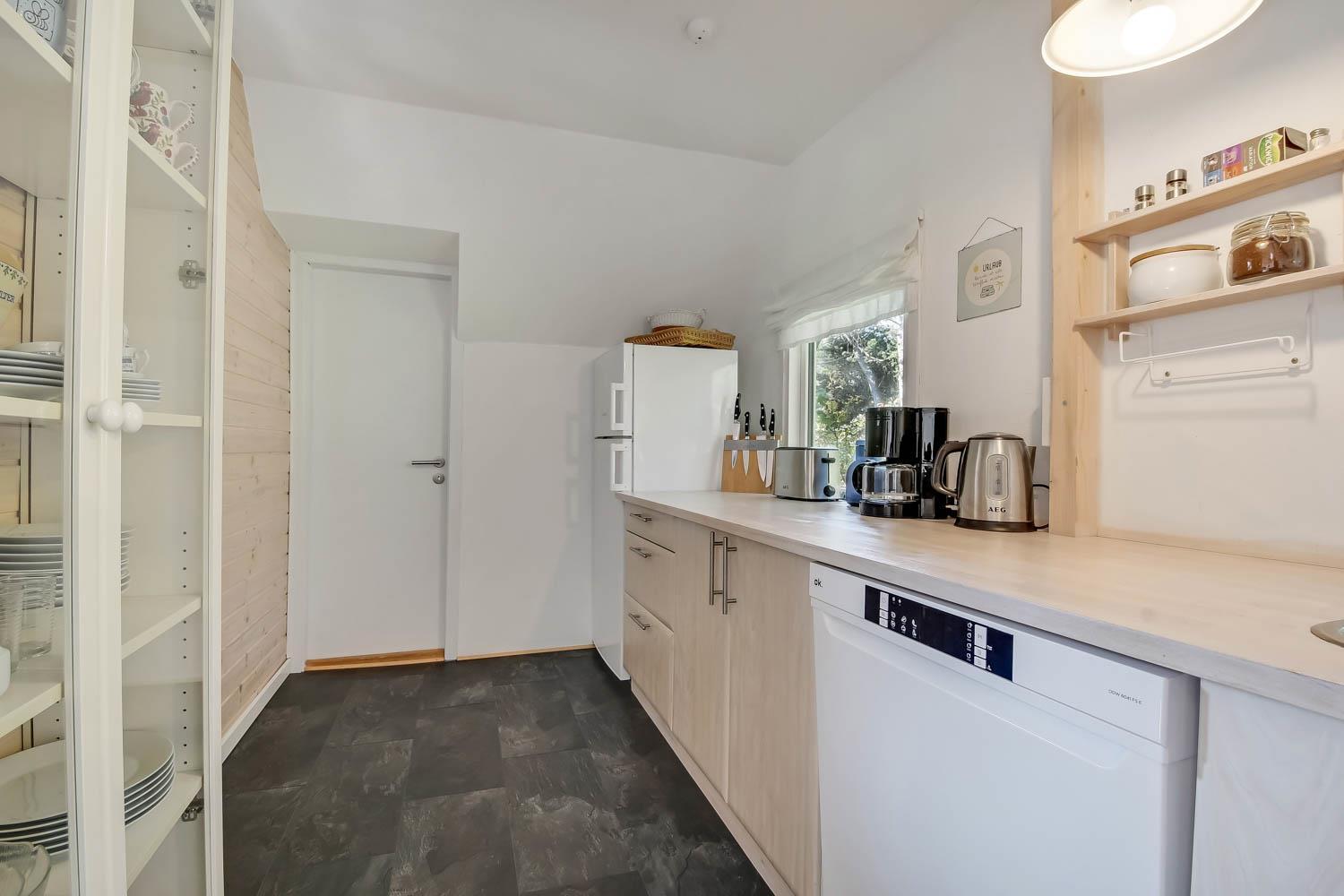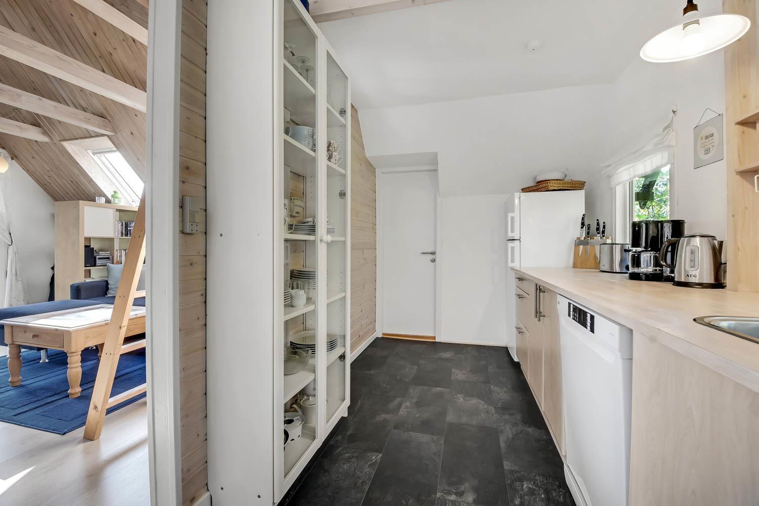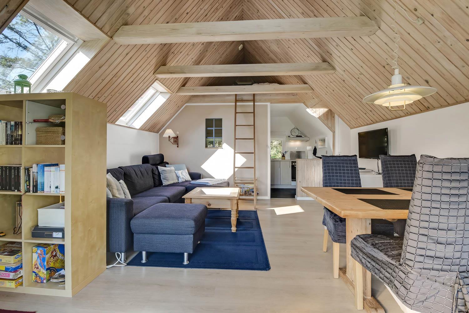 Lille Charmerende sommerhus. Parker bilen og gå direkte ind i husets opholdsstue med DVD- og CD-afspiller, radio, lille TV med danske kanaler, en dejlig polstersofa og spisebord. Fra stuen er der adgang til husets soveværelse (1DS, 1ES) samt adgang til husets hems (2 sovepladser) via en stejl stige - ideel til børn eller unge mennesker. Dejligt køkken med glaskeramisk kogeplade, indbygningsovn, emhætte, opvaskemaskine og køleskab med fryseboks. Fra køkkenet er der direkte adgang til badeværelse med toilet, håndvask, bruser og gulvvarme. Vaskemaskine i skuret. Barnestol til de mindste. Ikke ryger hus. Ingen wifi. Husdyr ikke tilladt.