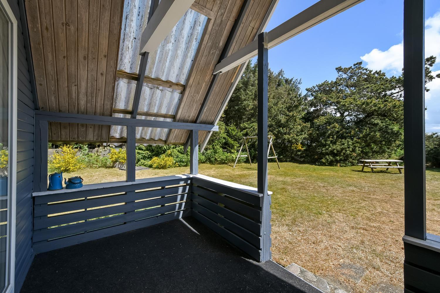 Dejlig grund med massere af læ og solmuligheder. Overdækket terrasse med havemøbler. Fra terrassen er der muligheder for at holde øje med de små når de leger i sandkassen eller i gyngestativet. Huset er totalt nyrenoveret i 2018. Et overskueligt og særdeles hyggeligt sommerhus som tager om jer og byder jer hjerteligt velkommen. Det ideelle hus til 2 personer eller den lille familie som ønsker ægte dansk sommerhushygge. Beliggende på en dejlig grund med flot, ældre beplantning som giver huset et helt specielt særpræg og som er med til at gør ferien til noget særligt.