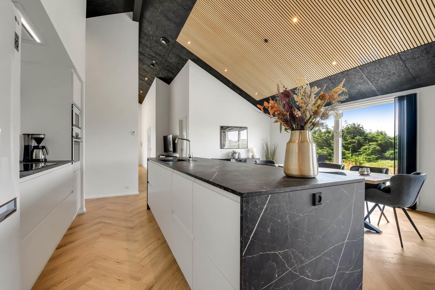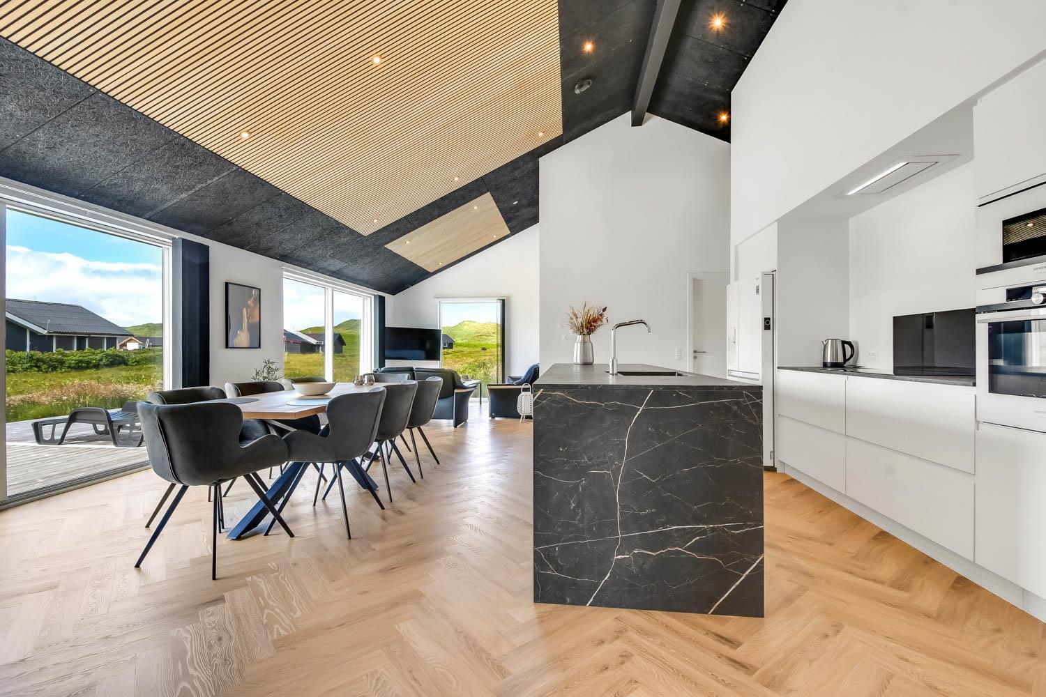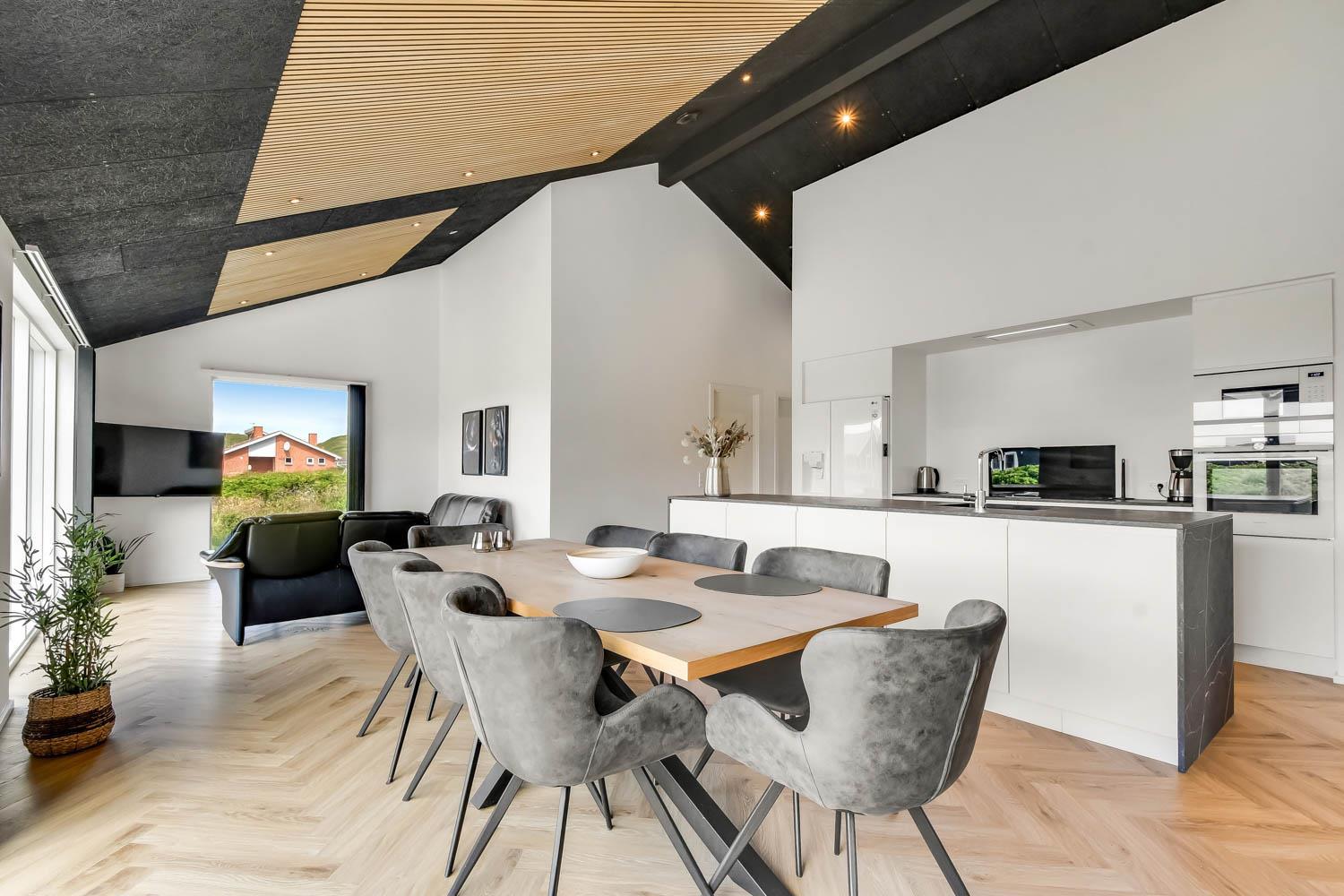 Fuldstændig unikt og fantastisk beliggende, nybygget, energibesparende luksushus. Huset er bygget tæt ved Vesterhavet med fantastisk udsigt til de høje klitter ved Vesterhavet og tæt ved til Ferring Sø. Moderne liebhaverbyggeri som er noget ganske særligt. Der er bl.a. stort udendørs spa til 5 personer, sauna, gratis fibernet (200 mbit) og aktivitetsrum med bl.a. billard og bordfodbold. Et hus med plads til max. 8 personer som kan nyde denne luksus. En rolig stund, en plads i solen eller konkurrencer i aktivitetsrummet er blot noget af det huset tilbyder.