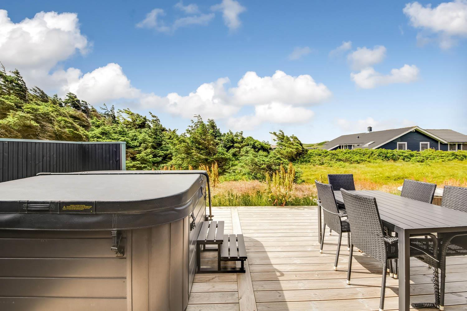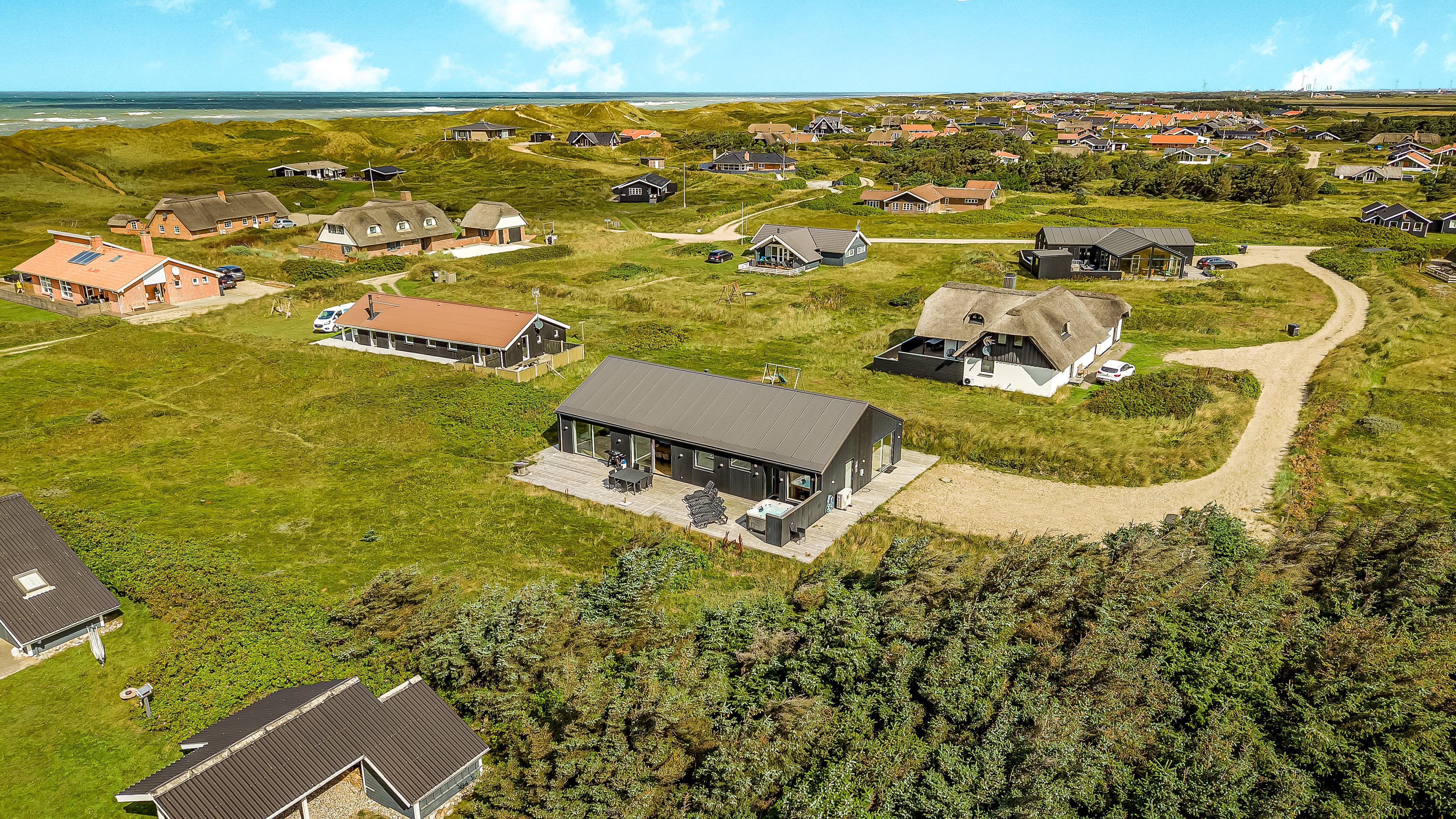 Der er masser af plads på den 1.200 m2 store, unikke natur grund og på det pragtfulde terrasseanlæg er der masser af muligheder for en plads i solen eller måske i skyggen, da anlægget bl.a. indeholder over 35 m2 terrasse. Også her er udsigten unik og der er tænkt på det meste. Stor gasgrill, masser af havemøbler og liggestole. En tur i den udendørs spa eller i den udendørs sauna gør oplevelsen unik og specielt på de mørke aftener med den klare stjernehimmel. En unik oplevelse som er ren terapi for sjæl og krop. Huset på en af de bedste grunde i Vejlby Klit og ligger behageligt langt fra vejen. Fra grunden kan man via grusstier nemt gå til direkte over klitten til Vesterhavet. Således er der ikke langt til strandfornøjelser som badning, drageflyvning, lystfiskeri eller vandreture i den friske luft hvor man til tider kan blive blæst helt igennem. Vesterhavets vandkant ligger blot 200 meter fra huset. Herudover ligger huset tæt på en af Vestjylland smukkeste cykel- / vandre ruter der bl.a. byder på mulighed for at se både sø og hav på samme tid samt tæt på indkøb og restaurant. Nærmeste sæsonåbne købmand ligger kun 400 meter ved Vejlby Torv som også byder på en cafe / spisested. Vi anbefaler også gerne et besøg i havnebyen Thyborøn 15 km nord for sommerhuset eller den gamle købstad Lemvig 13 km mod øst. Dette hus tilbyder unik luksus og er velegnet til parret eller familien, der vil bo tæt på havet og ønsker en helt speciel oplevelse de aldrig glemmer.