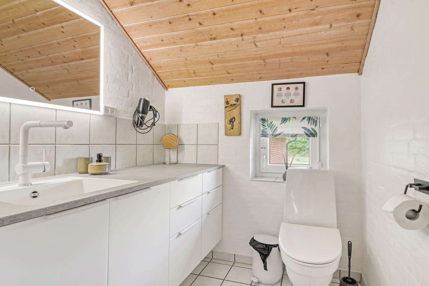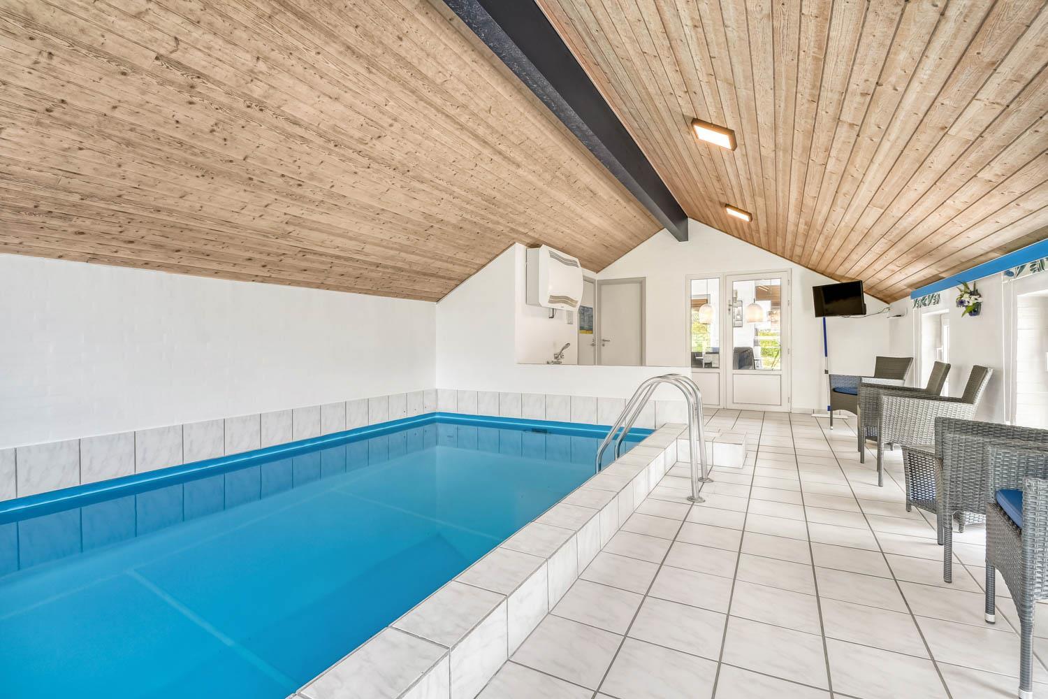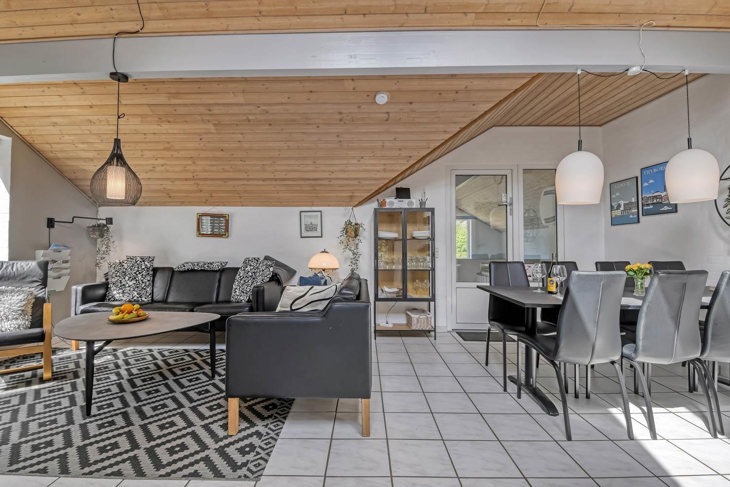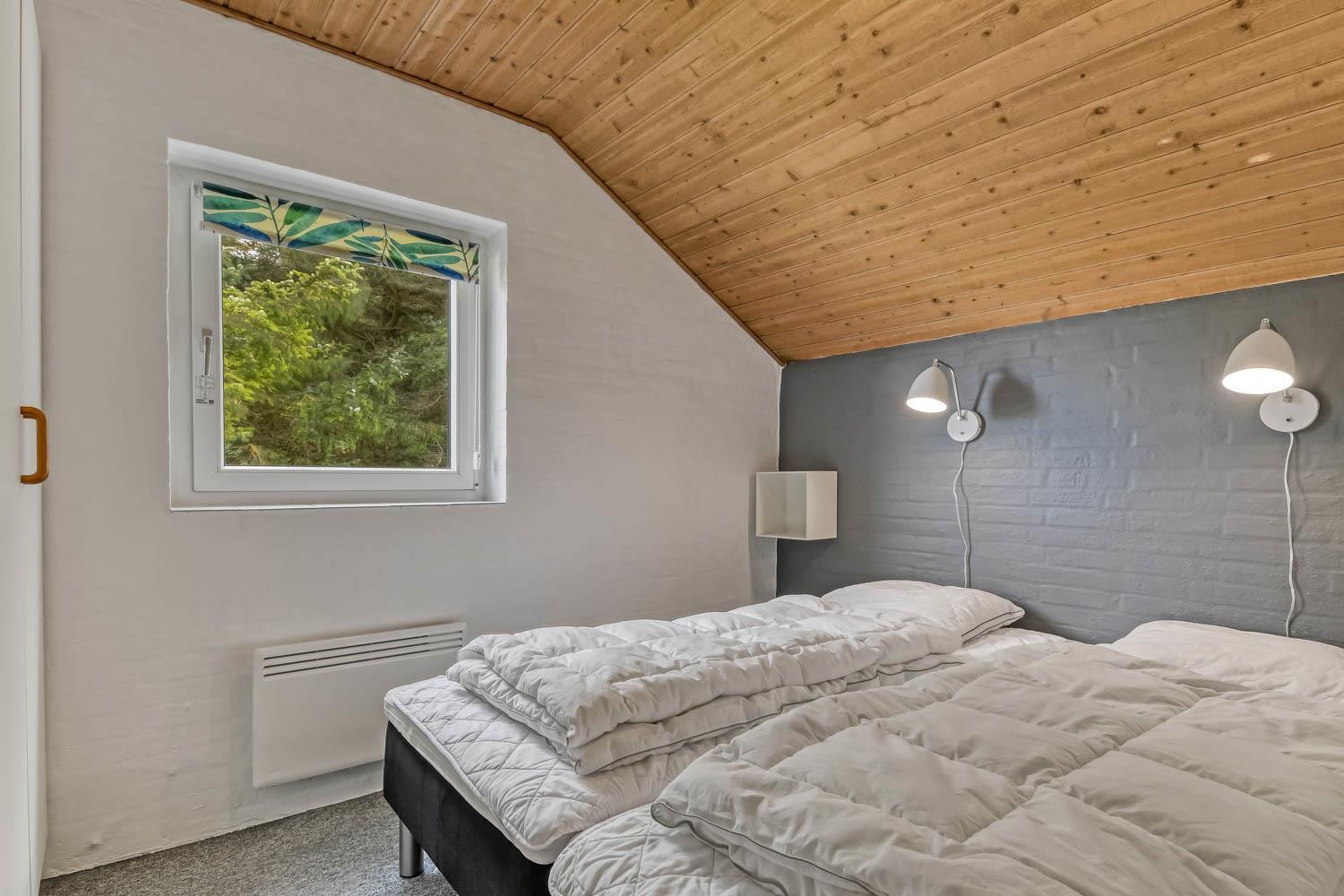 Huset er 153 m2 stort og har 4 dejlige soverum (1xdobbeltseng, 1xdobbeltseng, 2xenkeltsenge og 2xenkeltsenge). I hjertet af huset findes et veludstyret køkken/alrum hvor loftet går til kip og hvor de store vinduer bidrager til den hyggelige feriestemning. Her er alt i hårde hvidevarer; komfur med glaskeramiske kogeplader, emhætte, opvaskemaskine, mikroovn, køle-/fryseskab med fryseboks. Nyd maden ved spisebordet eller slap af i de behagelige sofamøbler. TV i stuen er med danske og tyske kanaler, DVD og CD afspiller. Skulle det blive for koldt, eller skal stemningen blusses op, sætter man blot gang i husets brændeovn, hvor flammerne og den intensive varme kan nydes og sammen med husets varmepumpe er de begge medvirkende til en god varme samt et lavere forbrug. Der er hvide klinkegulve i stue og køkkenområde med gulvvarme og der er gulvtæpper i soveværelserne. Husets wellness pool-afdeling rummer udover poolen et ekstra TV, spabad og en sauna og huset har hele 2 badeværelser, med toilet, bruser, håndvask samt gulvvarme. Vaskemaskine og tørretumbler er en selvfølge og er placeret i husets entré. Der er udgang til husets store indhegnede terrasse. På terrassen er der havemøbler, parasol. Huset er et ”ikke ryger hus”. Max. 2 husdyr er tilladt. Der er installeret varmepumpe i huset, hvilket betyder at du som gæst kan spare en del på din elvarmeregning - varmepumpen leverer op til 4 gange så meget effekt, som den bruger. I udhuset er der en ekstra 100 l fryser. Huset lejes ikke ud til ungdomsgrupper. Har man el-bil eller en Plug-In hybrid, så er der mulighed for opladning gennem opsat ladeboks på gavlen i den nordlige ende af huset. Til de mindste gæster er der en højstol. Depositum vintersæson kr. 4.500 og sommersæson kr. 2.500. Obligatorisk slutrengøring.