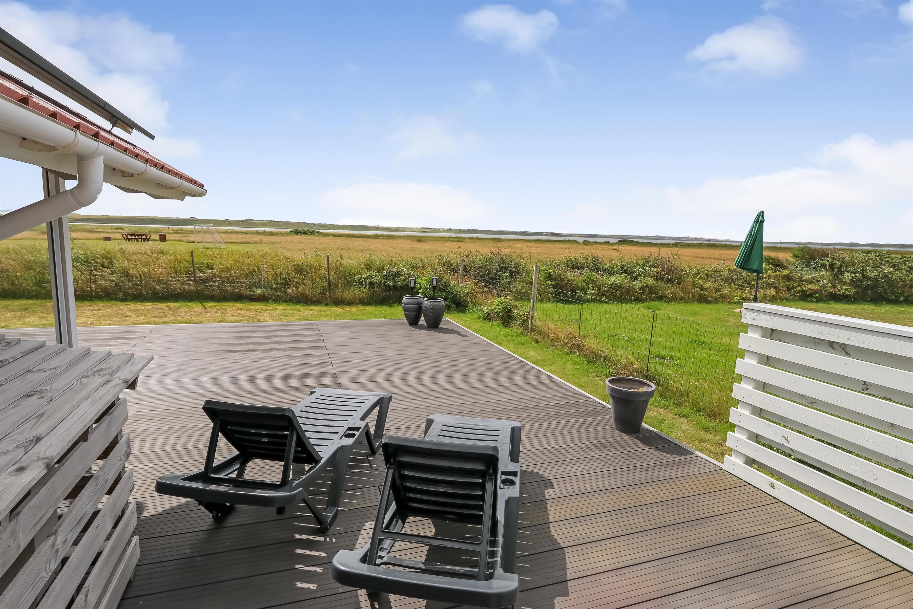 Huset ligger på en af de absolut bedste grunde i området - direkte ud til fredningslinjen. Dejlig sydvendt, delvis overdækket terrasseanlæg med havemøbler, el-grill og liggestole. Herfra kan man uforstyrret nyde en flot udsigt over Ferring Sø og området. Grunden er indhegnet, hvilket er Ideelt hvis dyr eller børn medbringes. Afstand til Ferring Sø er 70 m og Vesterhavets vandkant ligger blot 300 meter fra huset ligesom der kun er 300 meter til Vejlby Torv med købmand og restaurant Cafe John Wayne. Vejlby Klit er omgivet af vand på begge sider med Vesterhavet mod vest som altid er et besøg værd. Her kan man bade, lave sandslotte, fiske, flyve med drage, gå en lang tur og nyde ensomheden eller familiens nærvær eller blot sidde i en klit og nyde havets Brusen og den afslappende ro. Det samme gælder i øvrigt den tætte beliggenhed til Ferring Sø, hvor der går en vandrerute rundt om. Herudover ligger huset tæt på en af Vestjylland smukkeste cykel- / vandre ruter der bl.a. byder på mulighed for at se både sø og hav på samme tid. Vil man ud på tur, kan man GRATIS tage det lokale VLTJ tog, som kører fra Vemb til Thyborøn, hvilket giver mulighed for at besøge både havnebyen Thyborøn og handelsbyen Lemvig uden at skulle bruge bilen. Inden for 25-30 minutters togtur kan flere aktiviteter samt shoppings muligheder nås. Så hvad enten I er til aktiv ferie eller total afslapning, danner dette flotte feriehus en perfekt ramme for en god ferie hvad angår hus, beliggenhed og omgivelser. Der er tænkt på det meste. Der er også hjertestarter og safeboks i huset.
