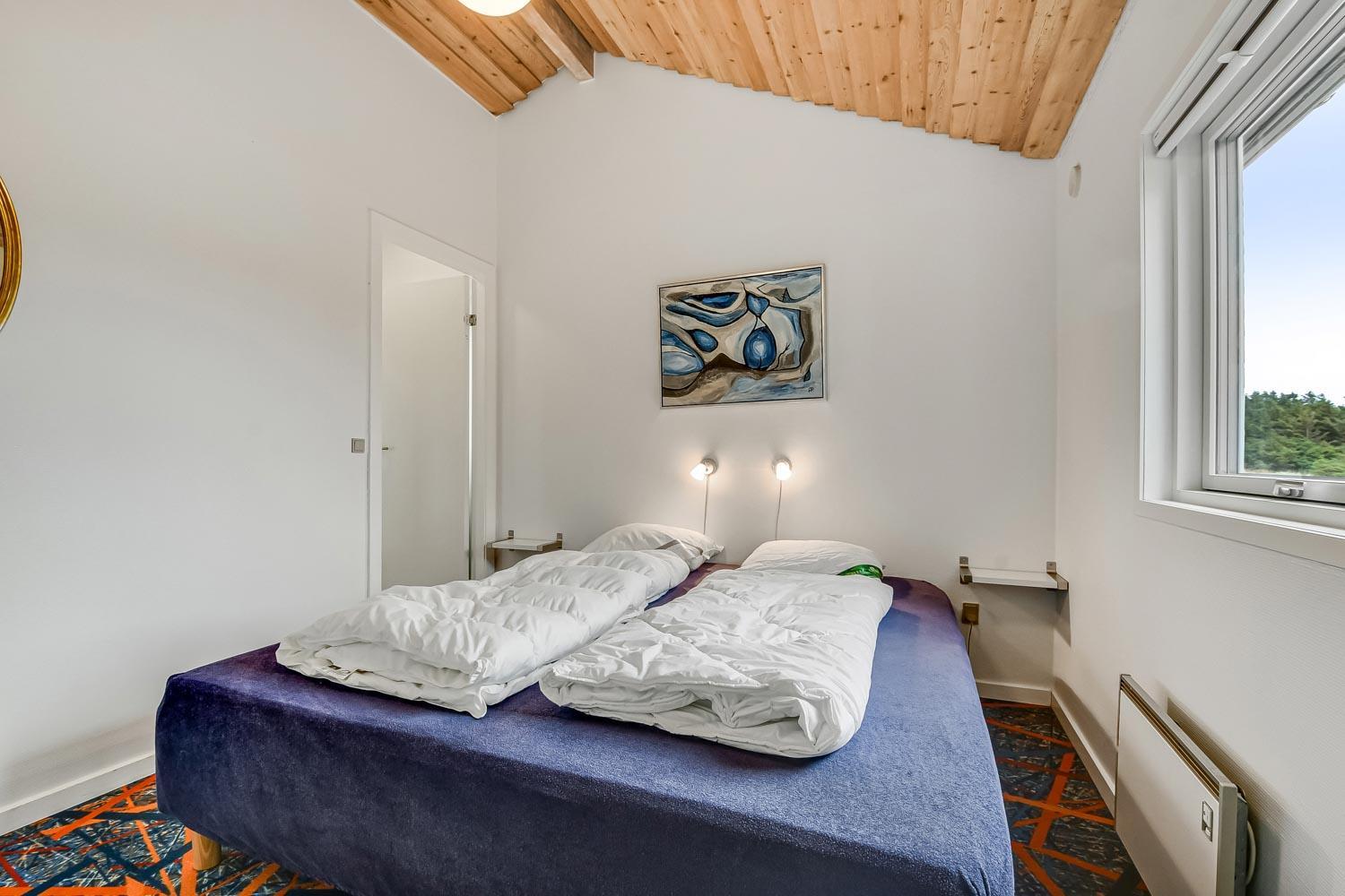 Dette dejlige træferiehus ligger på en naturgrund kun ca. 50 m fra en lille skov og kun ca. 200 m fra Vesterhavet. Huset er smagfuldt og personlig indrettet. Husdyr er ikke tilladt. Gratis internetadgang.