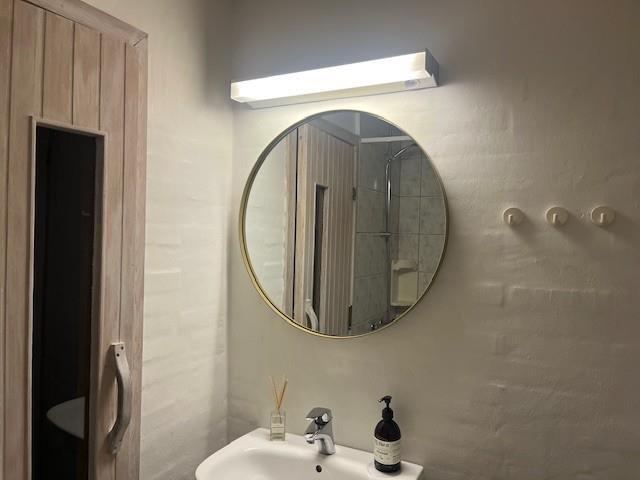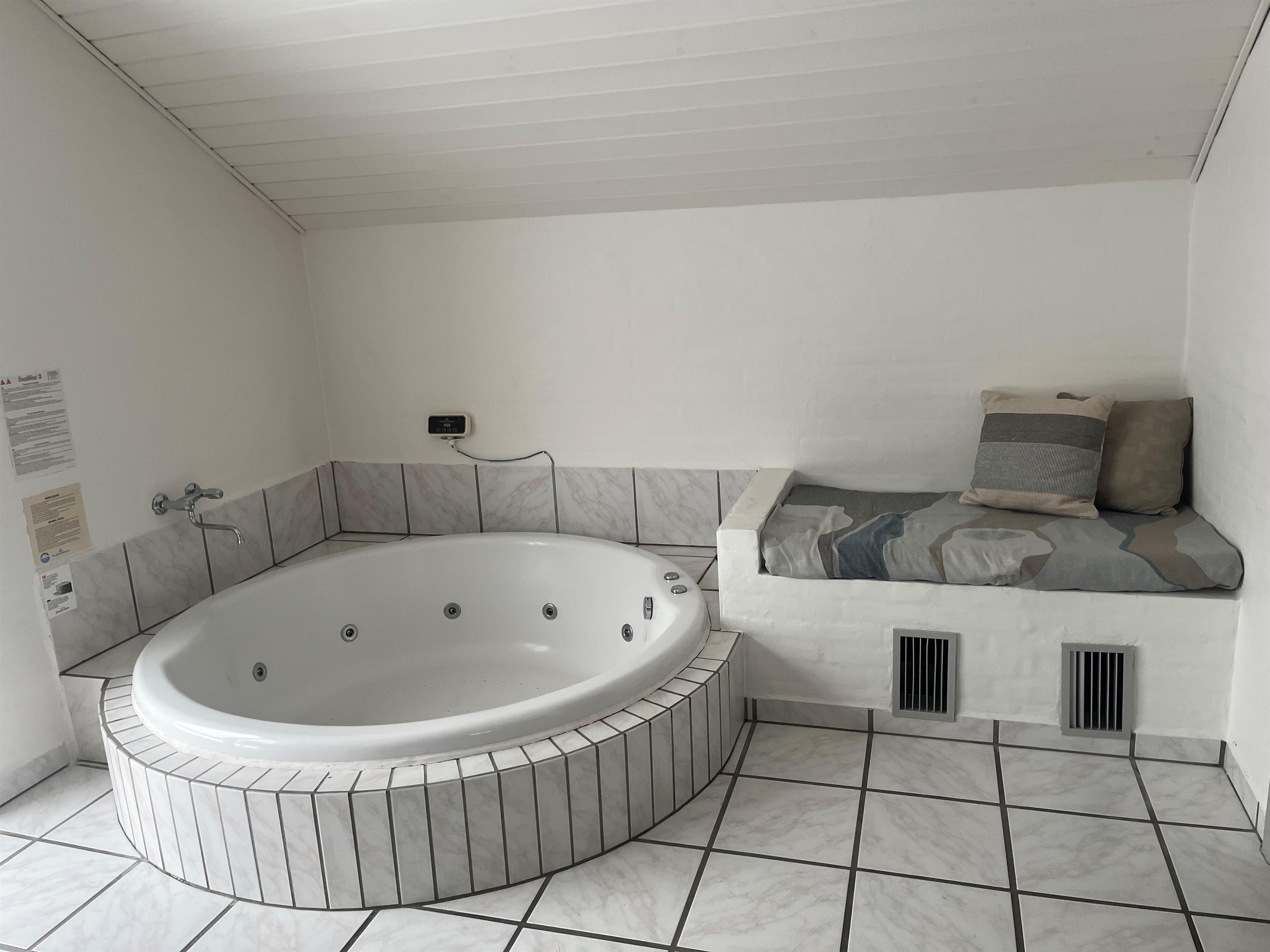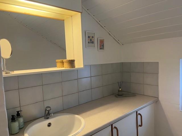 Herfra er der også smuk udsigt til de høje klitter. Fra sparummet er der indgang til det ene af husets badeværelser, hvor der også er sauna.