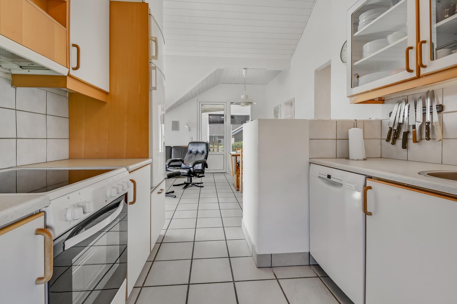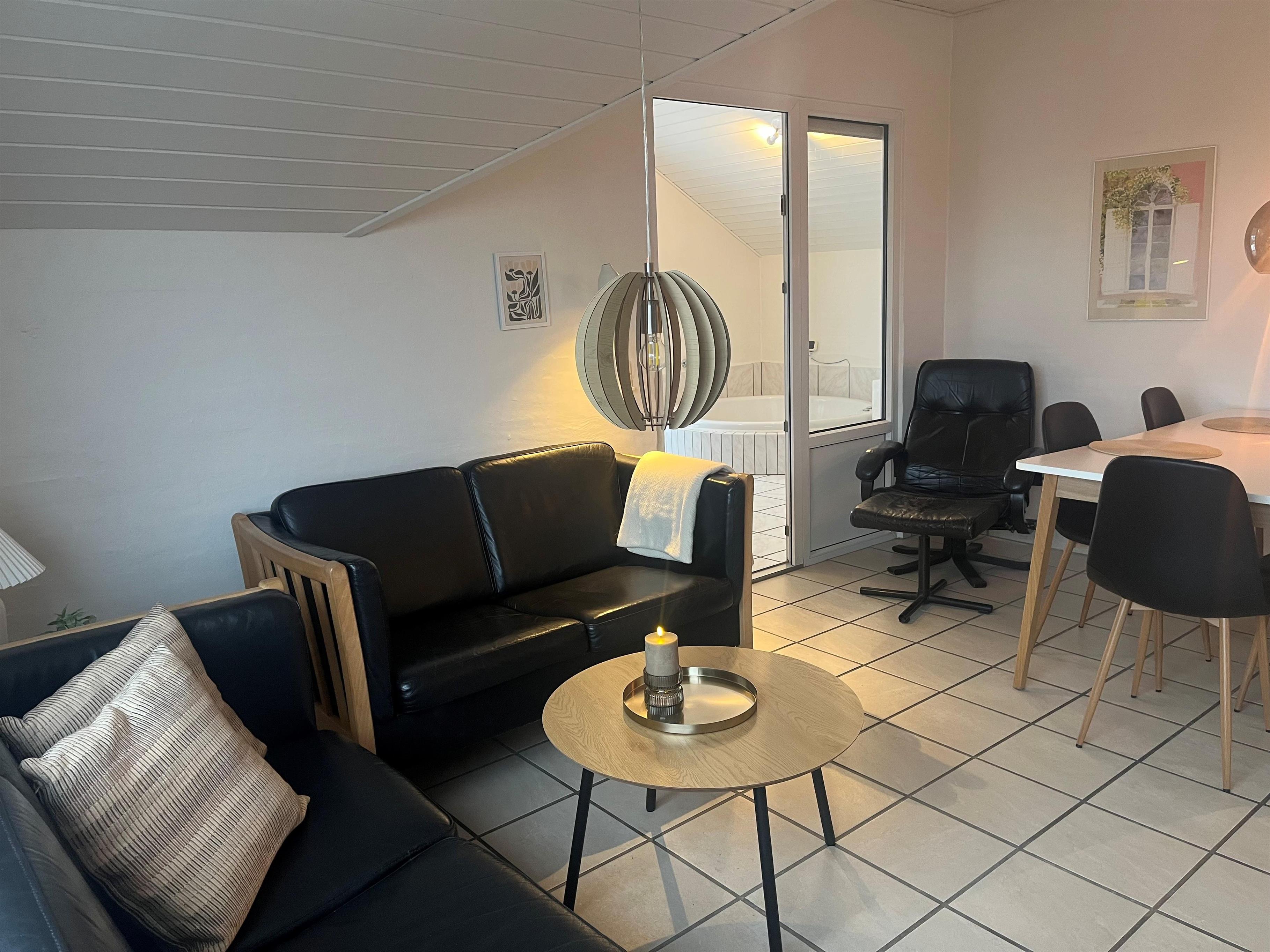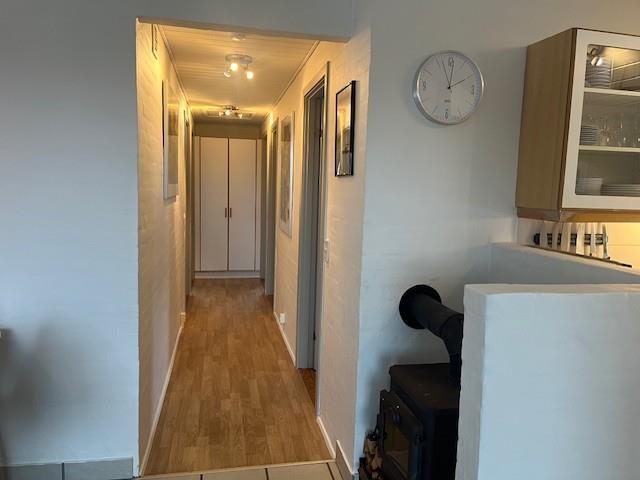 Et dejligt bryggers tager imod jer, her er der god plads til ophængning af overtøj mv. Der er vaskemaskine og tørretumbler og en praktisk bordplads. Fra bryggers kommer man direkte ind i stuen, som er flot indrettet med gode lædermøbler, brændeovn og varmepumpe som begge er medvirkende til en lavere forbrugsregning. Nyt tv med tyske og danske programmer samt en Chromecast med mulighed for streaming af egne programmer via APPs, der er også DAB radio. Stuen er med klinkegulv og gulvvarme. Pænt vedudstyret køkken med elkomfur, køle-/fryseskab, opvaskemaskine og mikroovn. Køkken og spiseområde ligger i åben forbindelse med stuen og danner naturligt samlingspunkt for familien. Huset har to gode badeværelser med toilet, håndvask, bruser samt flisegulv med gulvvarme. Fra entre er der udgang til et flot sparum med en spa samt nyt tv til streaming. I sparummet er der flisegulv med gulvvarme.