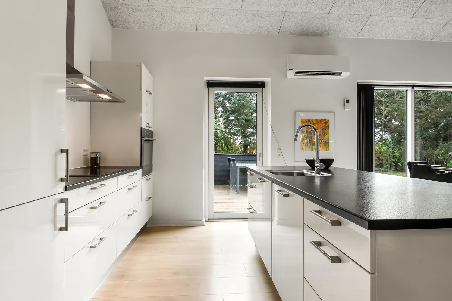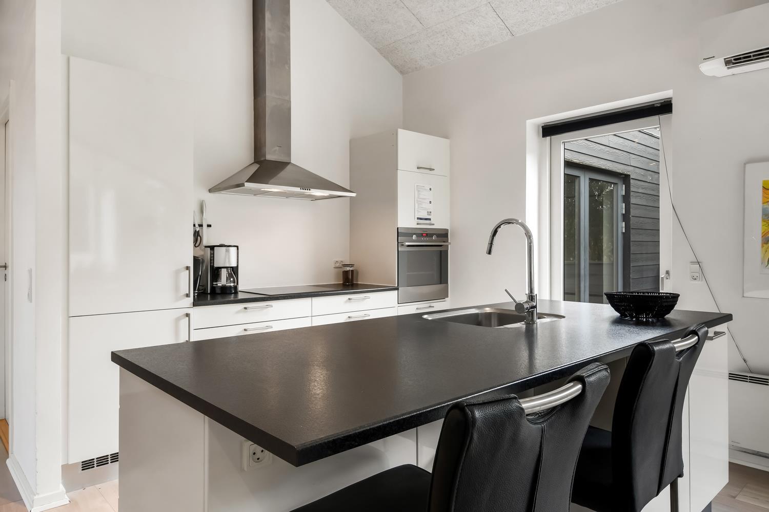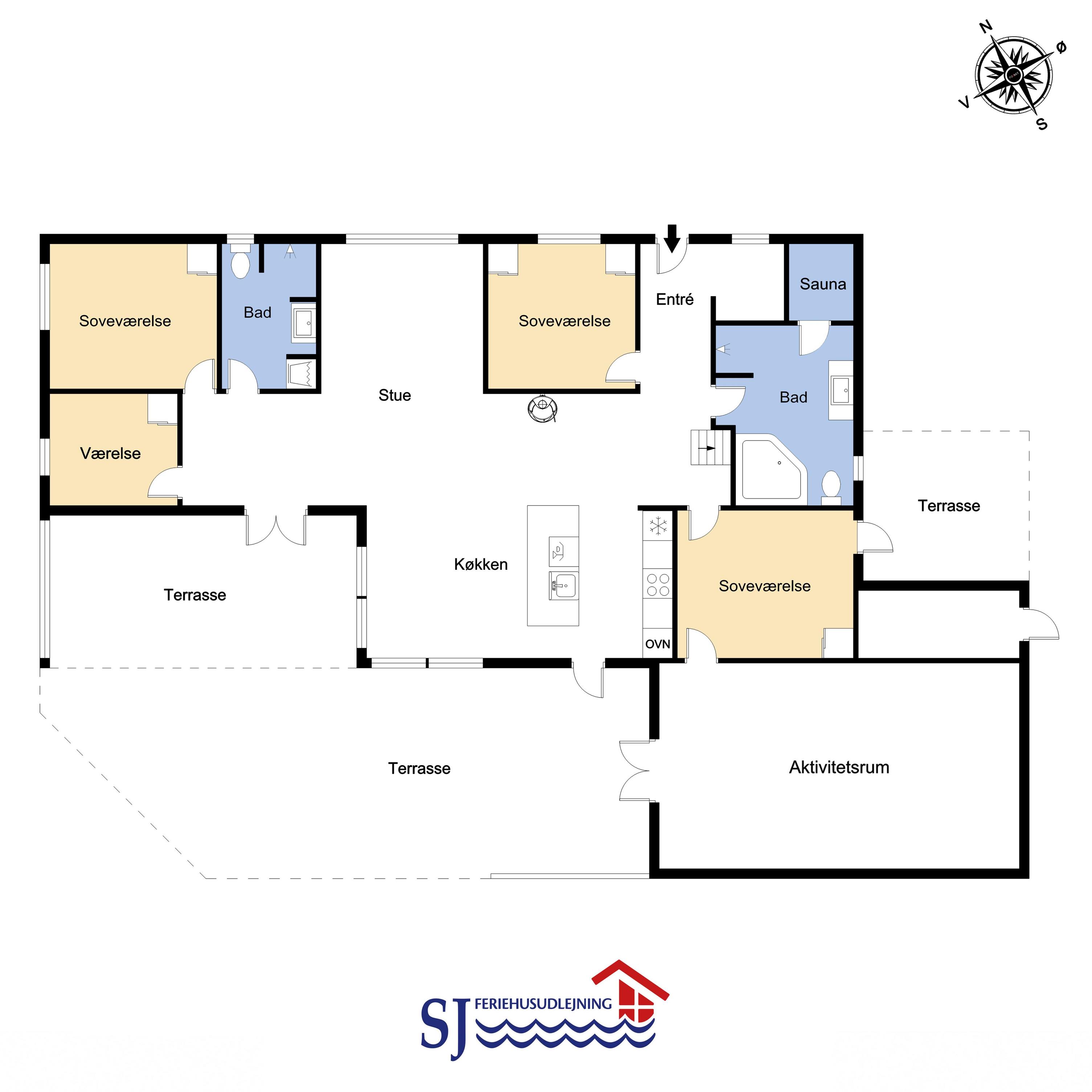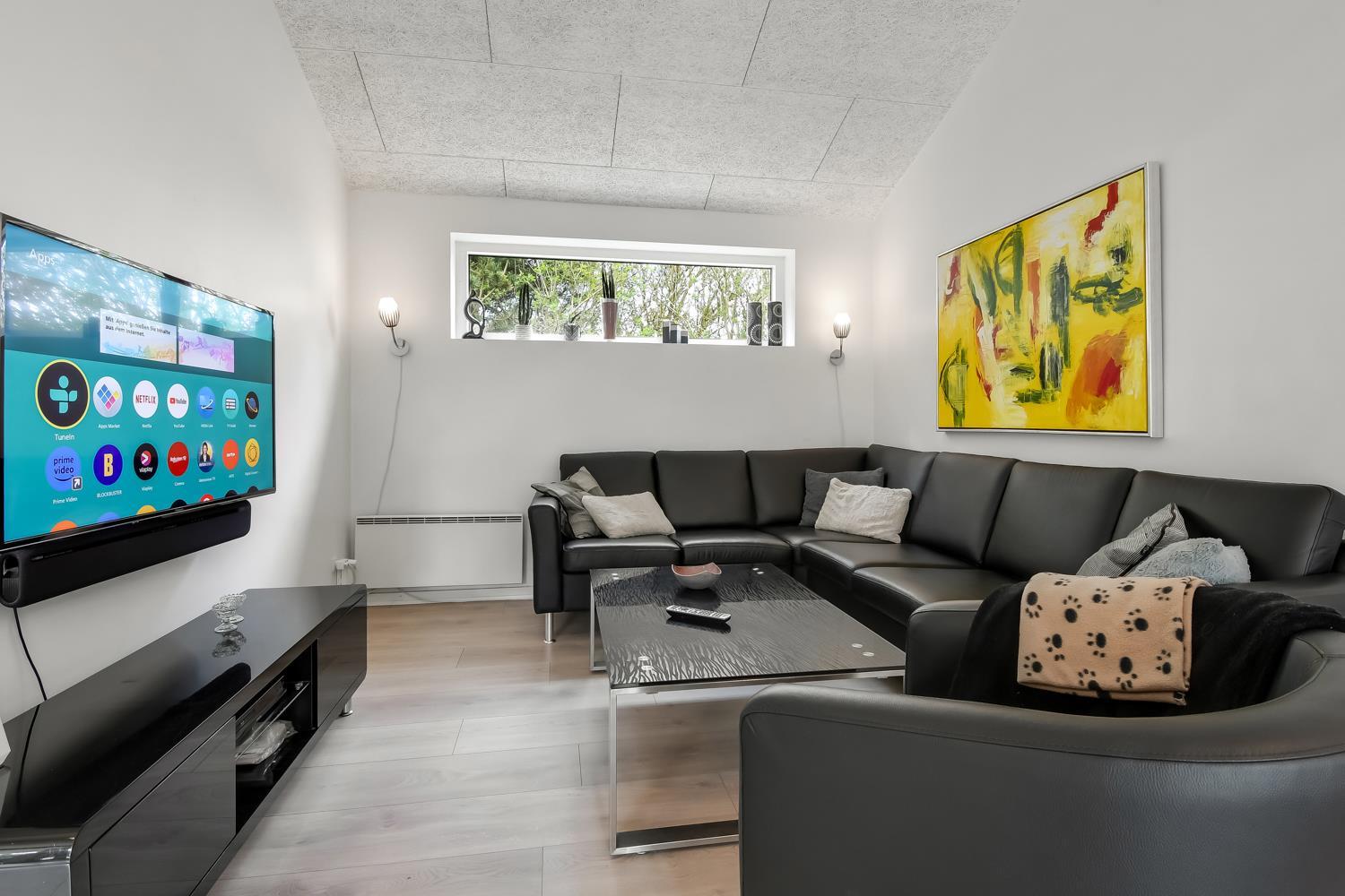 Fantastisk hus som er bygget i 2011 og er 160 m2 stort. Efter at have parkeret bilen ved huset byder en flot entré velkommen. Fra entréen er der adgang til husets flotte kombineret opholdsrum og køkkenhjørne. 4 rummelige soveværelser (1DS, 1DS, 1DS, 1DS+1S over dobbeltsengen) som alle har gode boksmadrasser og skabsplads. Huset har et fantastiske hovedrum, som består af et flot åbent samtalekøkken og en dejlig kombineret opholdsstue med spiseplads og lædermøbler. Det stilfulde åbne køkken er moderne indrettet og byder på alt i hårde hvidevare og service / køkkengrej. Opvasken klares nemt i opvaskemaskinen. Dagligvarerindkøbene opbevares på køl i det store køleskab / fryseskab og måltiderne klares ubesværet ved den keramiske kogeplade, mikroovnen og den indbyggede ovn. Mados suges væk af den kraftige emhætte i køkkenet. Selvfølgelig kan den tilberedte mad serveres på terrassen via døren fra køkkenet, som fører direkte ud til terrassen. Et flot spisebord med plads til alle mand er placeret praktisk lige ved køkkenet. Opholdsstuen byder på lædermøbler ved husets smart-TV, som har indbygget danske og tyske TV-programmer og mulighed for streamingstjenester og der er også radio / CD / DVD. Nyd flammerne i brændeovnen, som både sørger for god varme og ekstra hygge ligesom varmepumpen også hjælper til at spare på forbrugsomkostningerne og sørger for et super indeklima. Fra opholdsstuen er der også udgang til husets terrasseanlæg. Aktivitetsrum med billardbord, som også kan laves om til et bordtennisbord, bordfodbold, varmepumpe samt udgang til terrasseanlægget. I den ene ende af huset er det store, rummelige badeværelse har spabad, direkte adgang til saunaen, toilet, håndvask, klinkegulv med gulvvarme og bruseniche med glasdør. I den anden ende af huset er der endnu et badeværelse med toilet, håndvask, bruseniche, vaskemaskine og klinkegulv med gulvvarme.