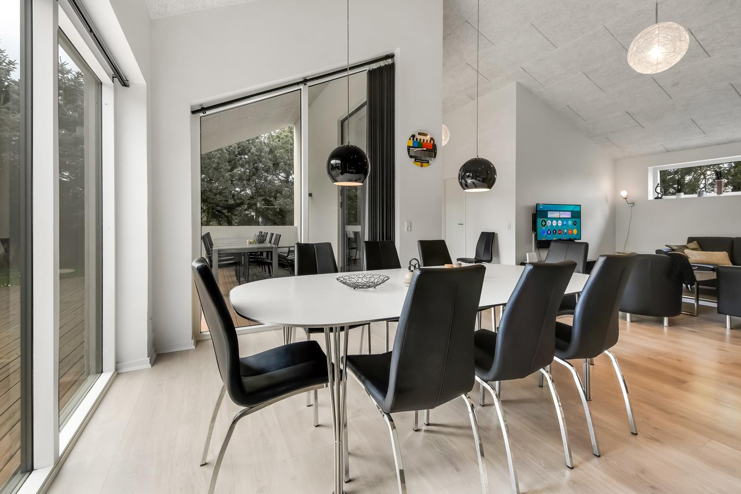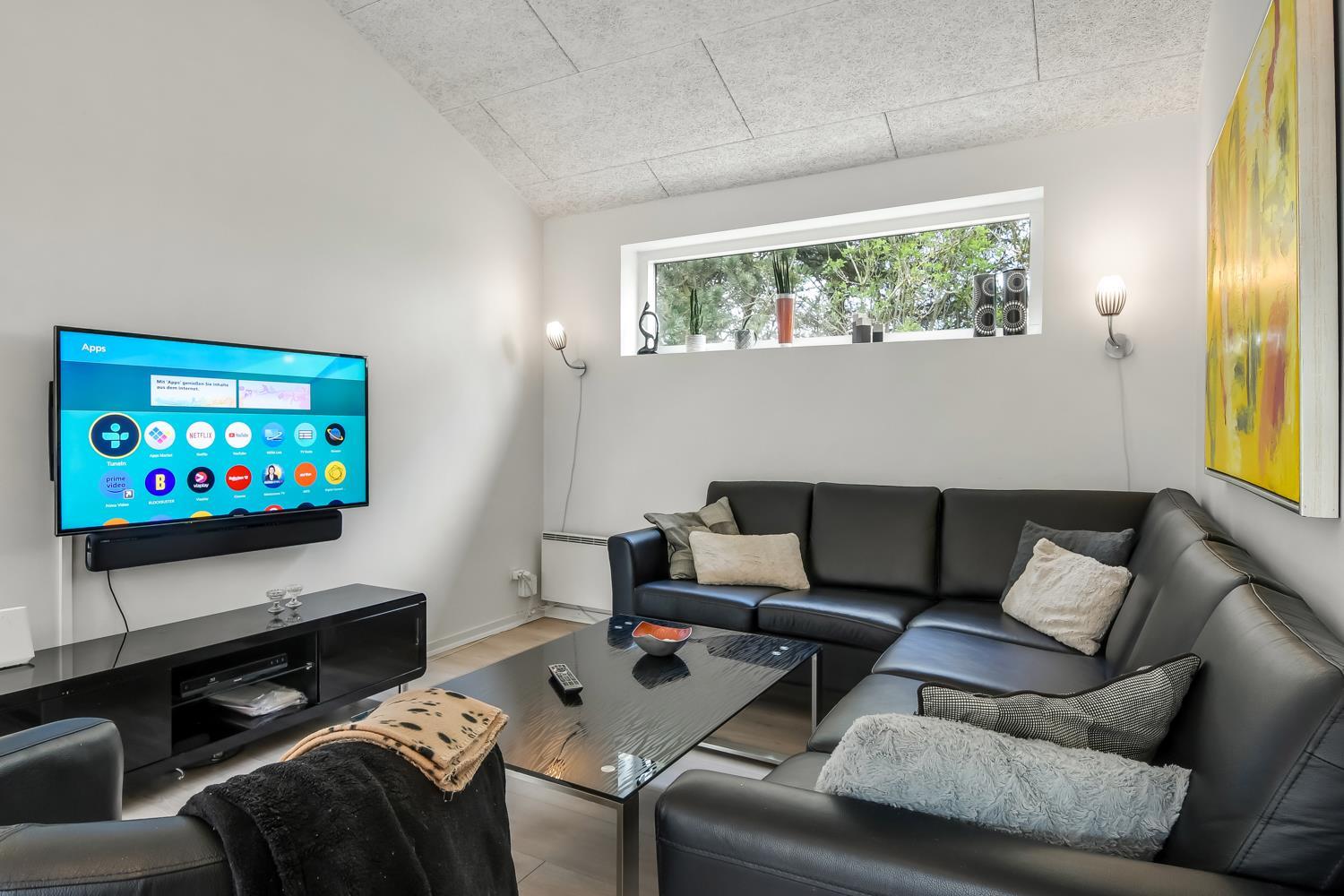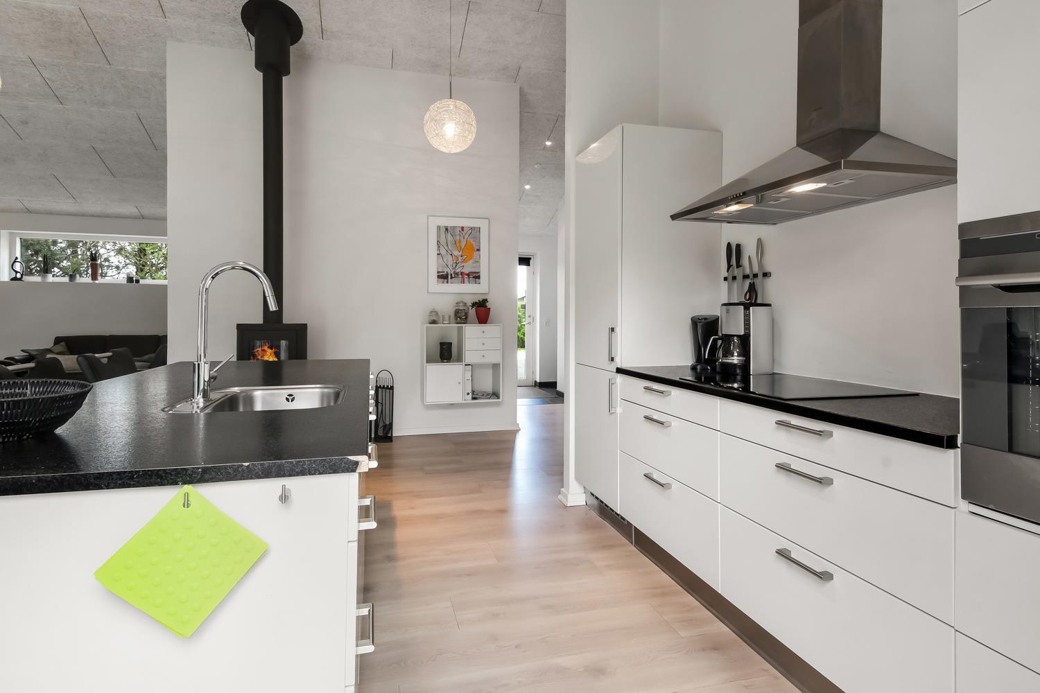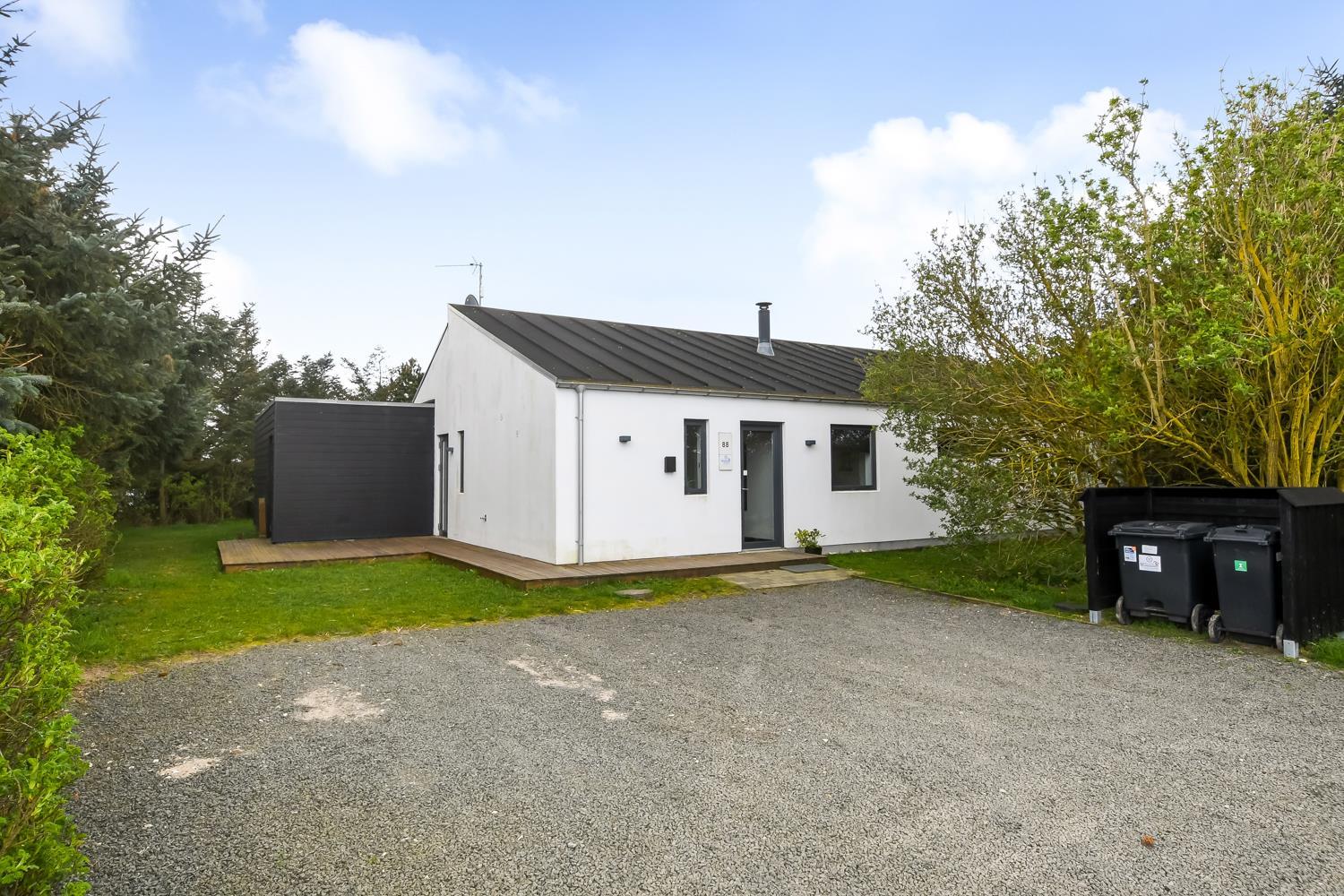 Hele huset er indrettet i lyse og venlige farver og et materiale valg som skaber sammenhæng. Det samme laminatgulv med trælook trægulv går igen i alle opholds- og soverum. I alle rum er der god plads og masser af luft, da hele huset er bygget i kip, hvilket gør at hemsen kan bruges til leg, opbevaring eller måske vil børn og barnlige sjæle finde det spændende med en overnatning under husets tag. Barnestol og barneseng er i huset. Har man el-bil eller en Plug-In hybrid, så er der opsat ladeboks ved huset. Ikke-ryger hus. Max 2 husdyr tilladt.