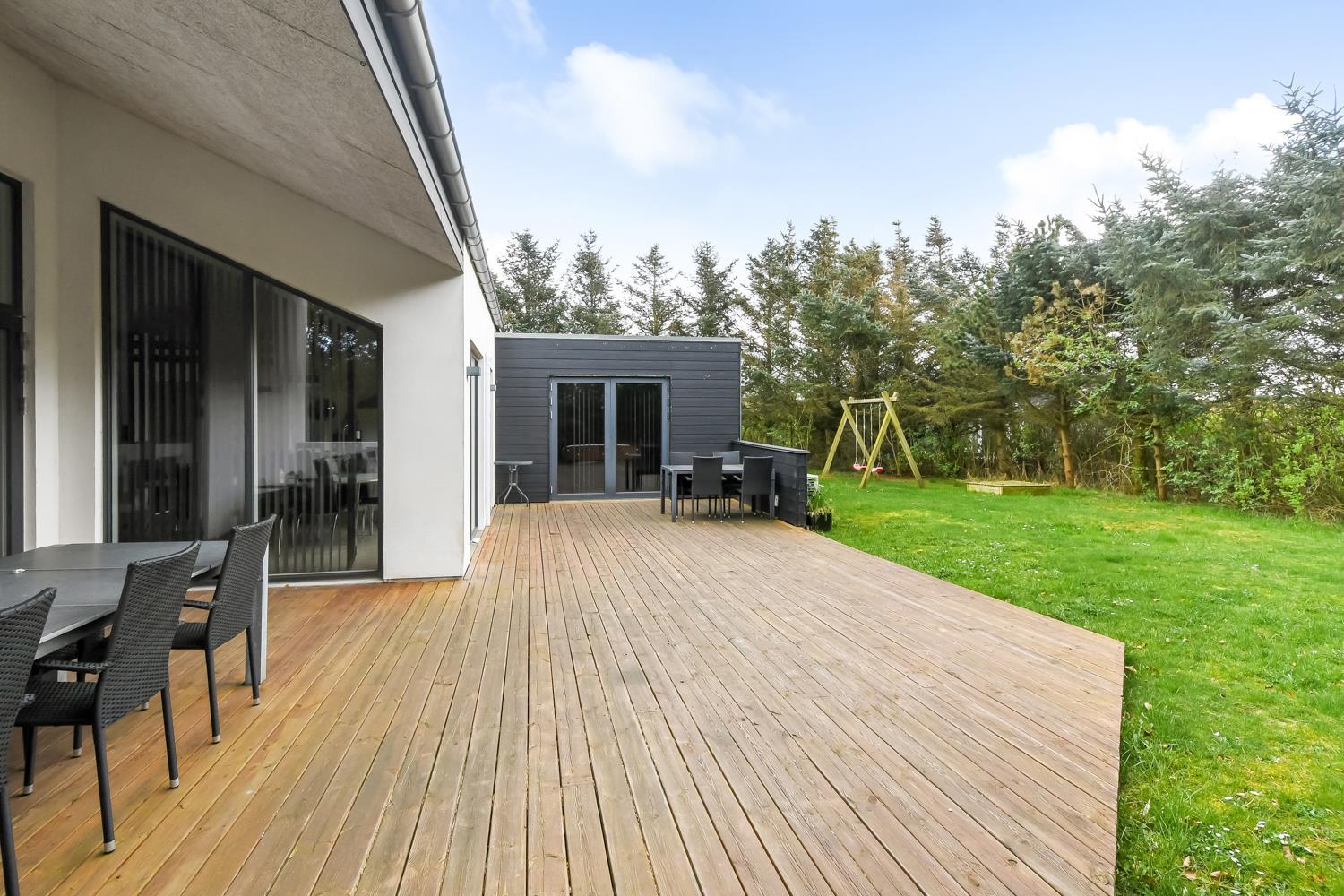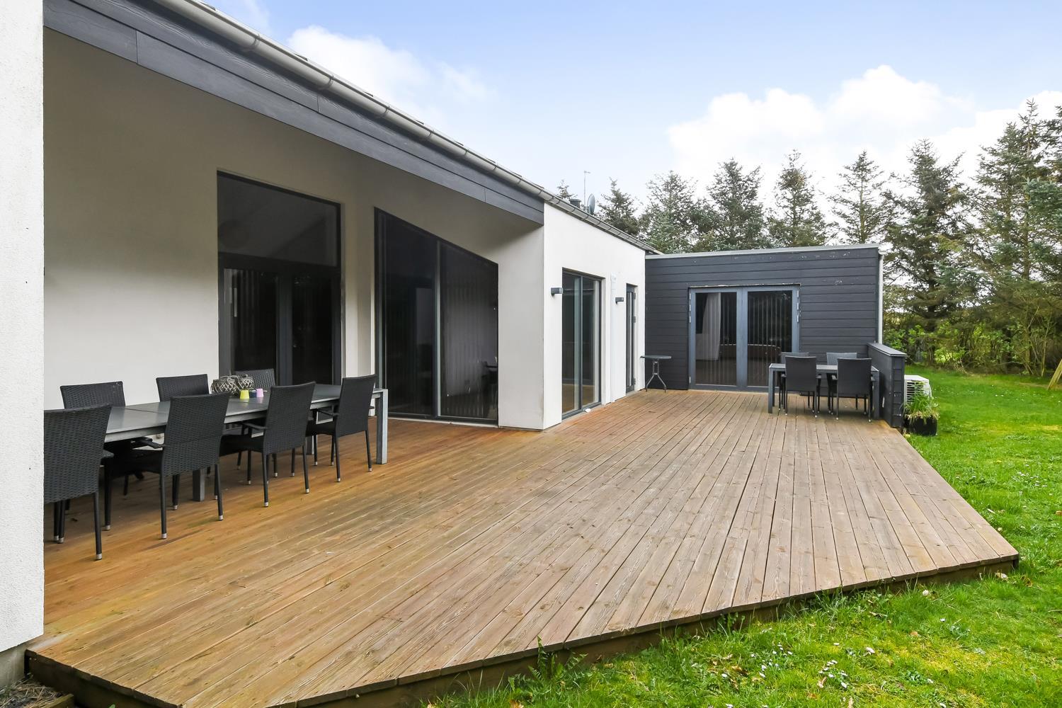Flot, energispare- og kvalitets hus i de bedste materialer til 9 personer. Huset har alt hvad man kan ønske sig og byder bl.a. på gratis internet, aktivitetsrum og en dejlig stor, delvis overdækkes terrasse. Der er god plads til alle husets beboere. Den perfekte ramme til en fantastisk ferie tæt ved Vesterhavet.