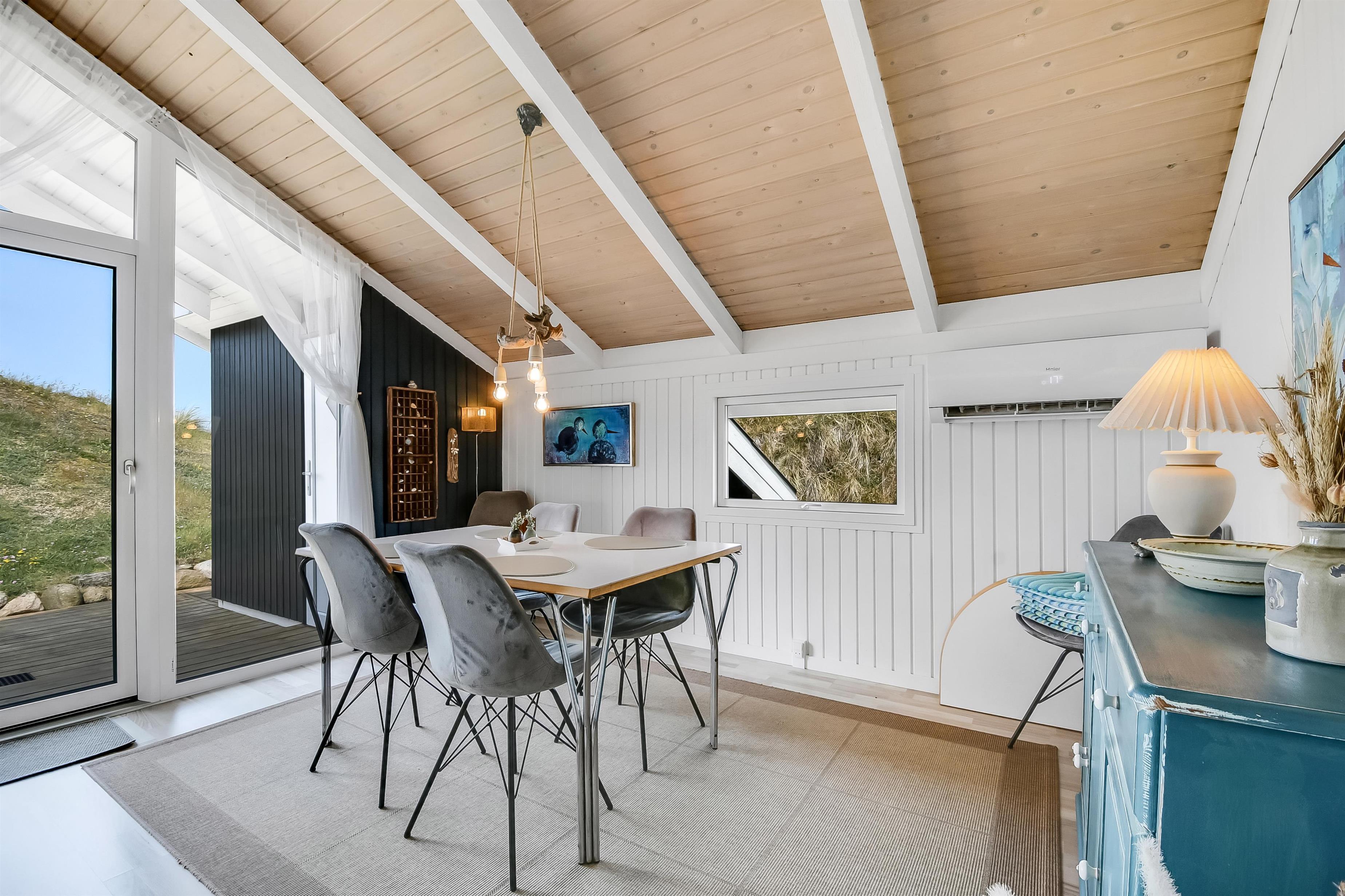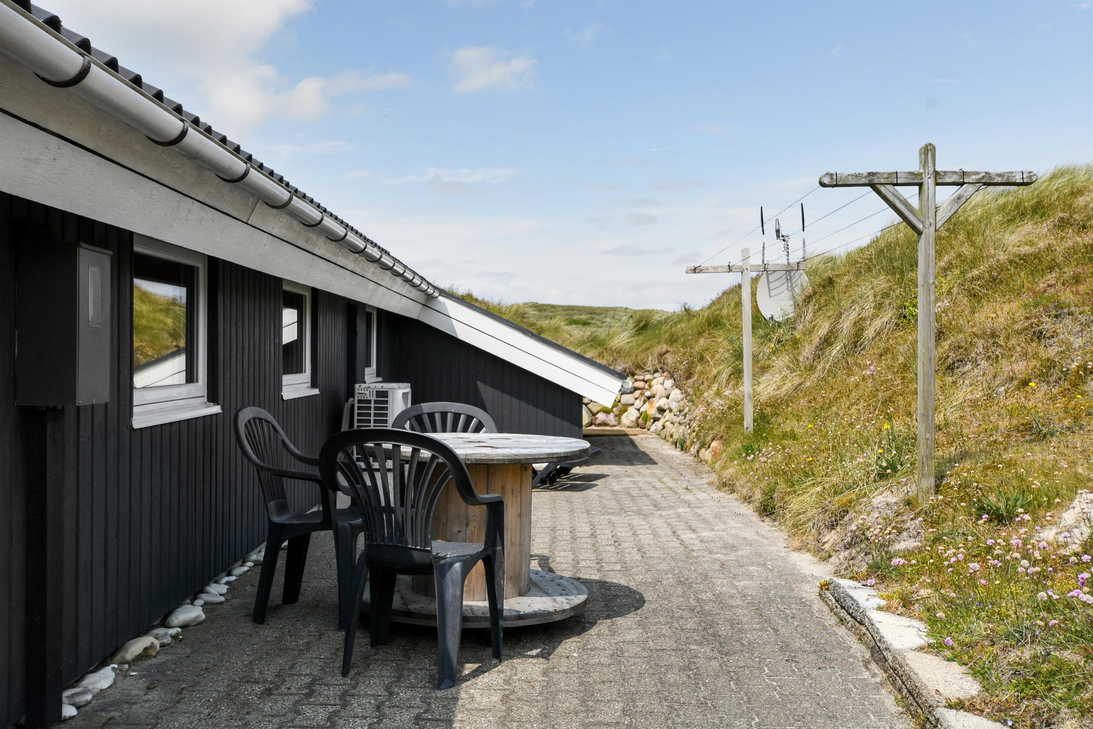 Huset er beliggende på en klitgrund i et skønt område i Vejlby Klit. Fra huset er der udgang til nyrenoverede åbne terrasser, som er indrettet med havemøbler, solvogne og grill. Når man opholder sig på terrassen er man så tæt på Vesterhavet, at man kan høre bølgernes brusen. Huset har i 2025 fået nye vinduer over det hele.
