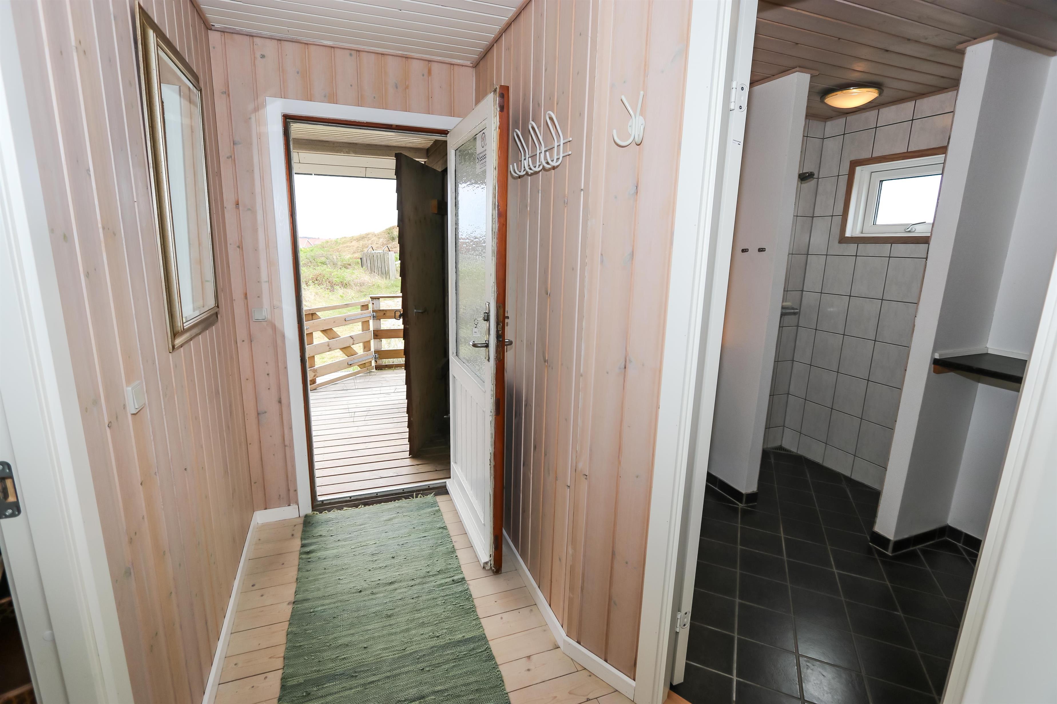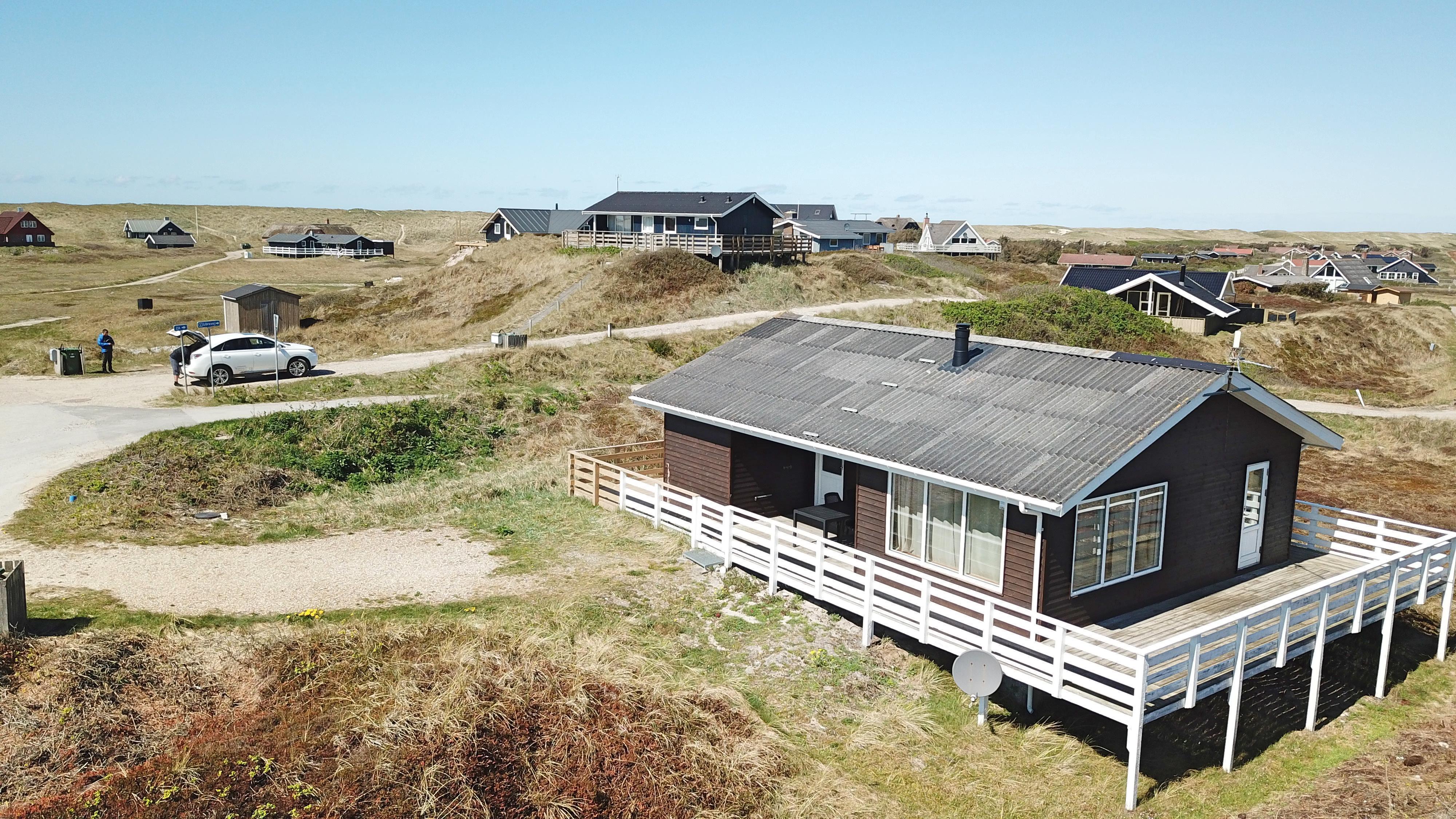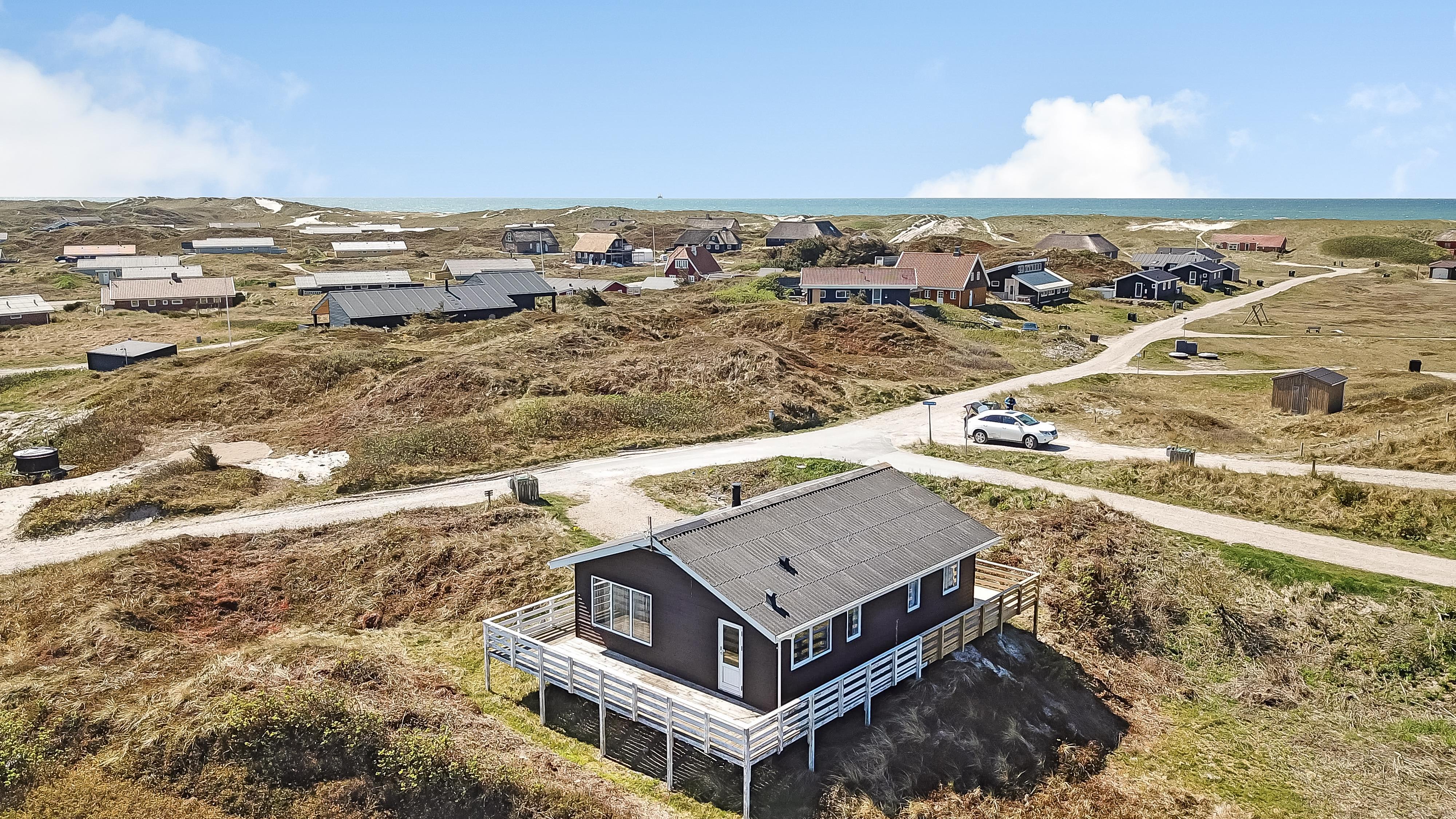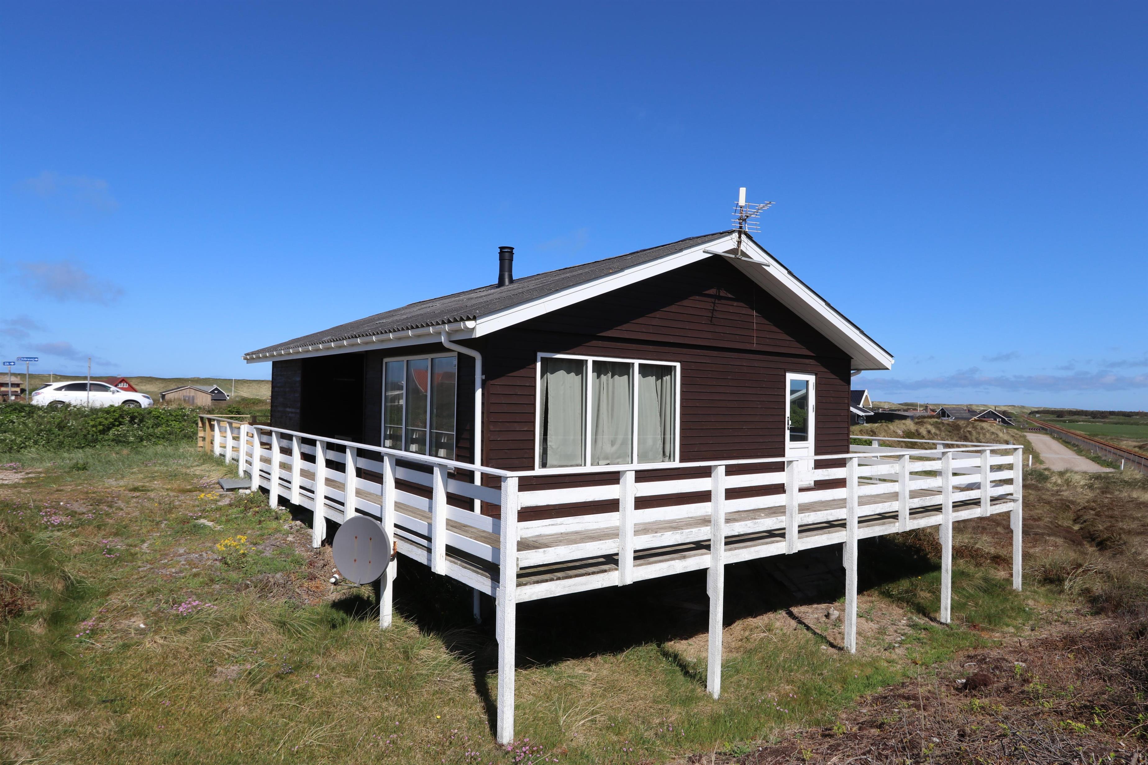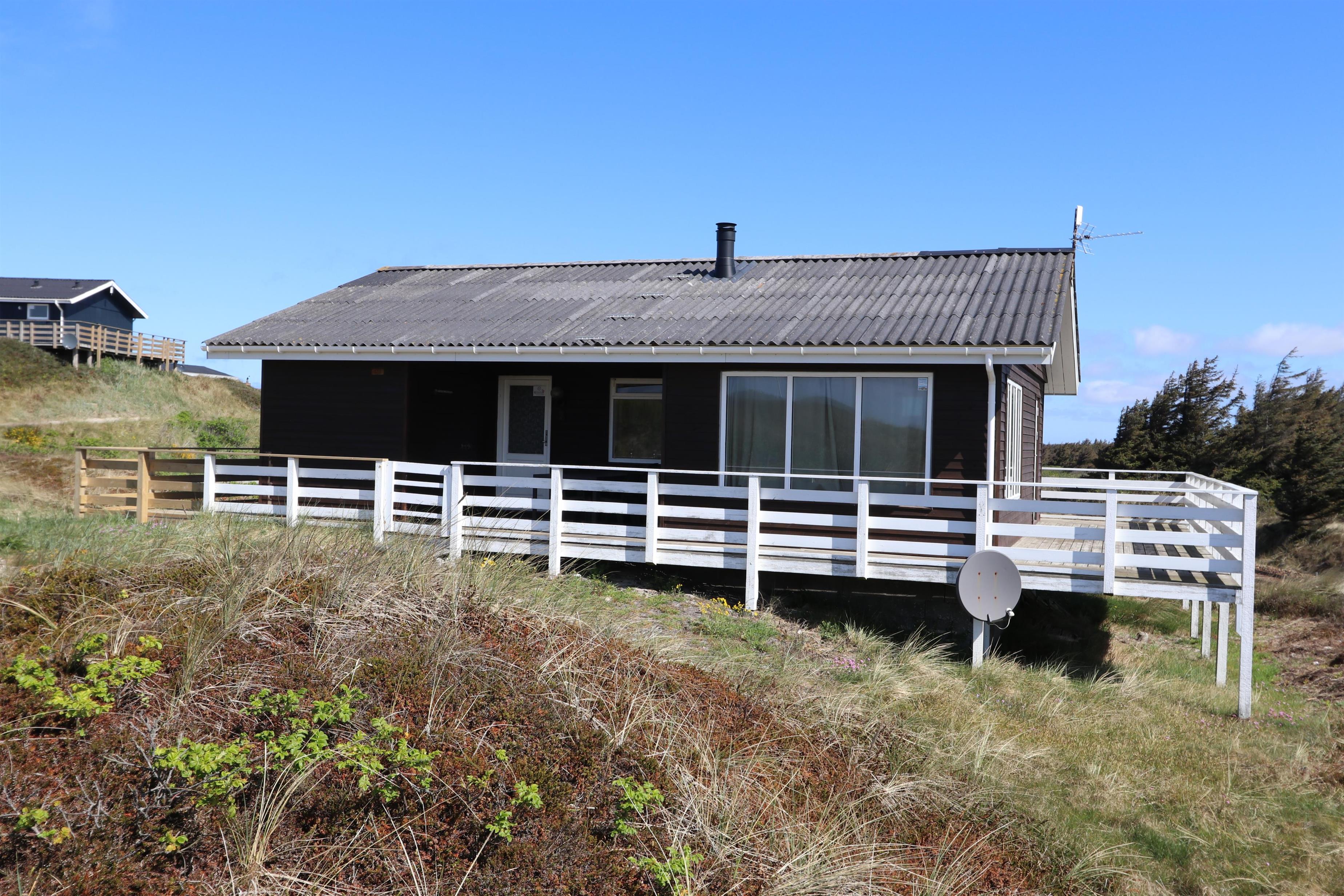 Udendørs ligger huset højt placeret på en stor, 2.500 m² naturgrund, hvor I kan nyde ro, frisk havluft og en flot udsigt over det omkringliggende landskab. Vesterhavet ligger blot ca. 200 meter fra huset og byder på lange gåture, badning, fiskeri og uforglemmelige solnedgange. Terrassen løber hele vejen rundt om huset og er udstyret med havemøbler og grill, så I altid kan finde en sol- eller lækrog og nyde ferien udendørs.