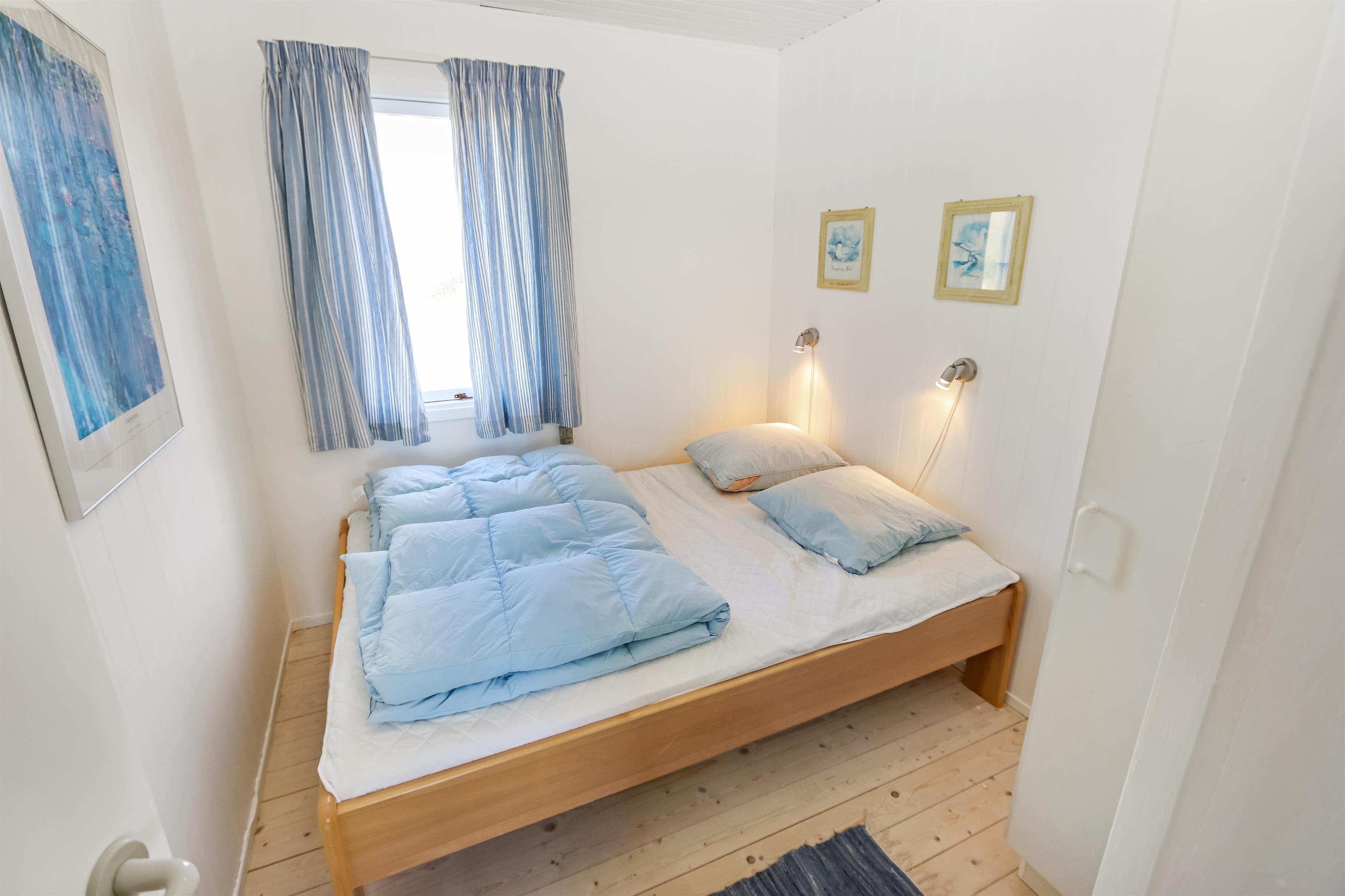 Huset rummer tre gode soveværelser: to med dobbeltsenge og ét med enkeltseng – velegnet til både familie og par. Badeværelset er lyst og moderne med klinkegulv, bruseniche og behagelig gulvvarme. Til familiens mindste gæster er der barnestol.