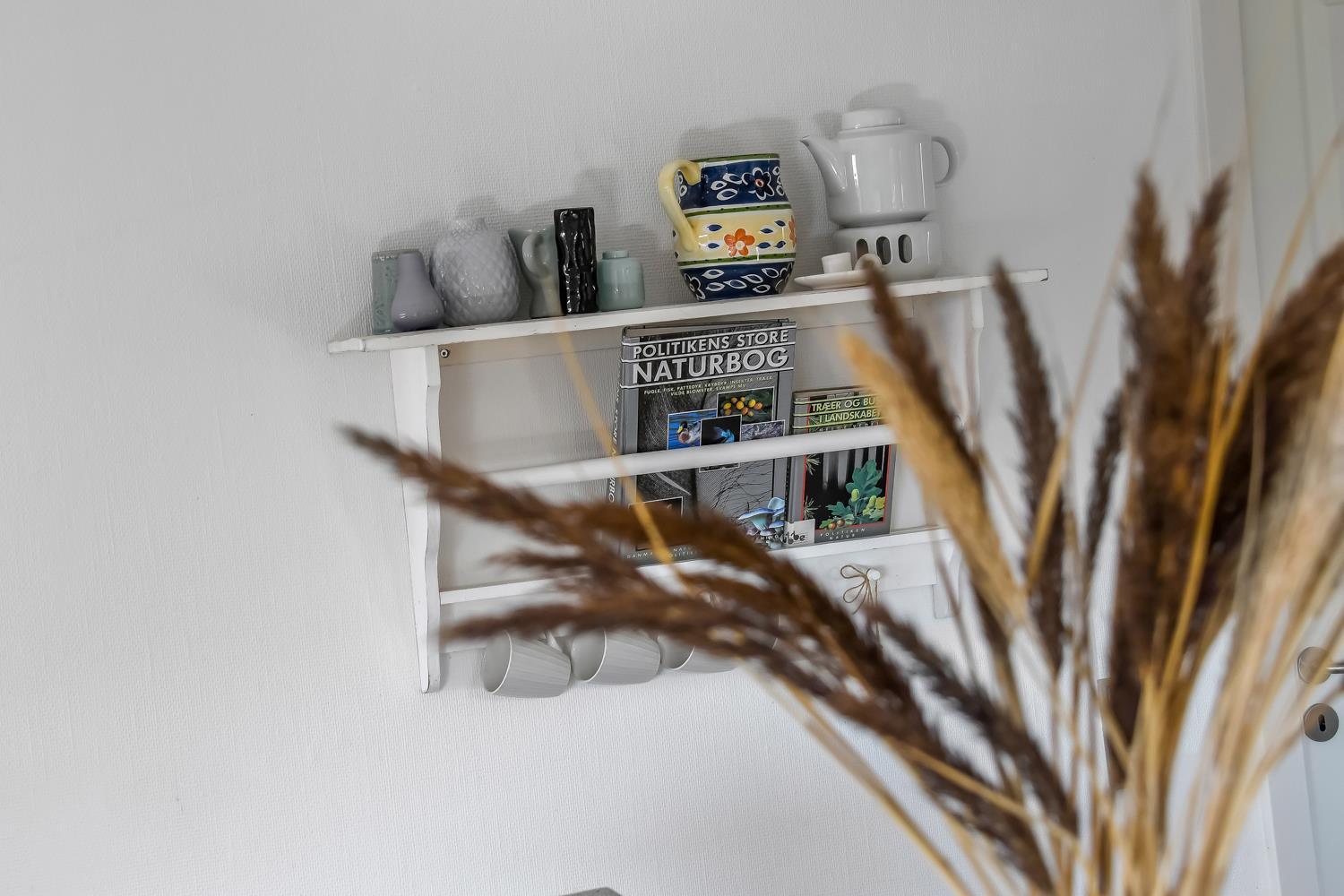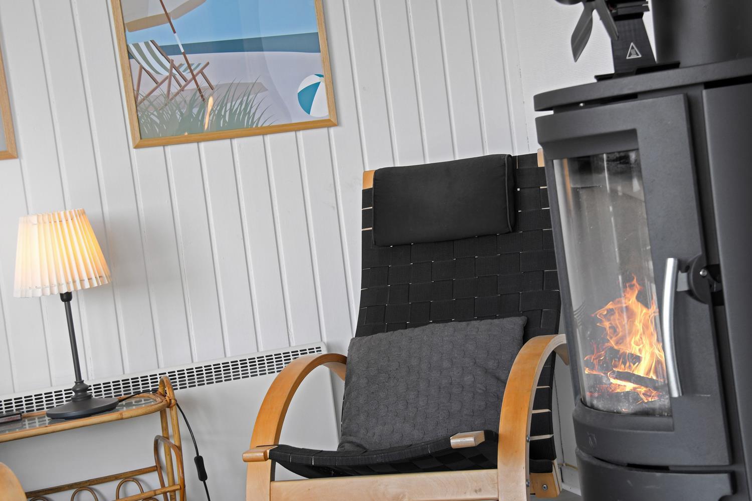 Rummeligt feriehus. Vinkelstue med polstermøbler, farvetv med danske og tyske kanaler, god spiseplads, varmepumpe og hyggekrog ved brændeovnen. Køkkenhjørnet er i åben forbindelse med opholdsstuen og råder over alt i service, keramiske kogeplader, indbygningsovn, emhætte, køleskab med lille fryseboks, opvaskemaskine og mikroovn. Badeværelse med toilet, håndvask, vaskemaskine og bruser. 3 gode seoveværelser: 1DS, 2ES, 2ES. Ikke rygerhus. Max 2 husdyr tilladt. Huset har obl. rengøring.