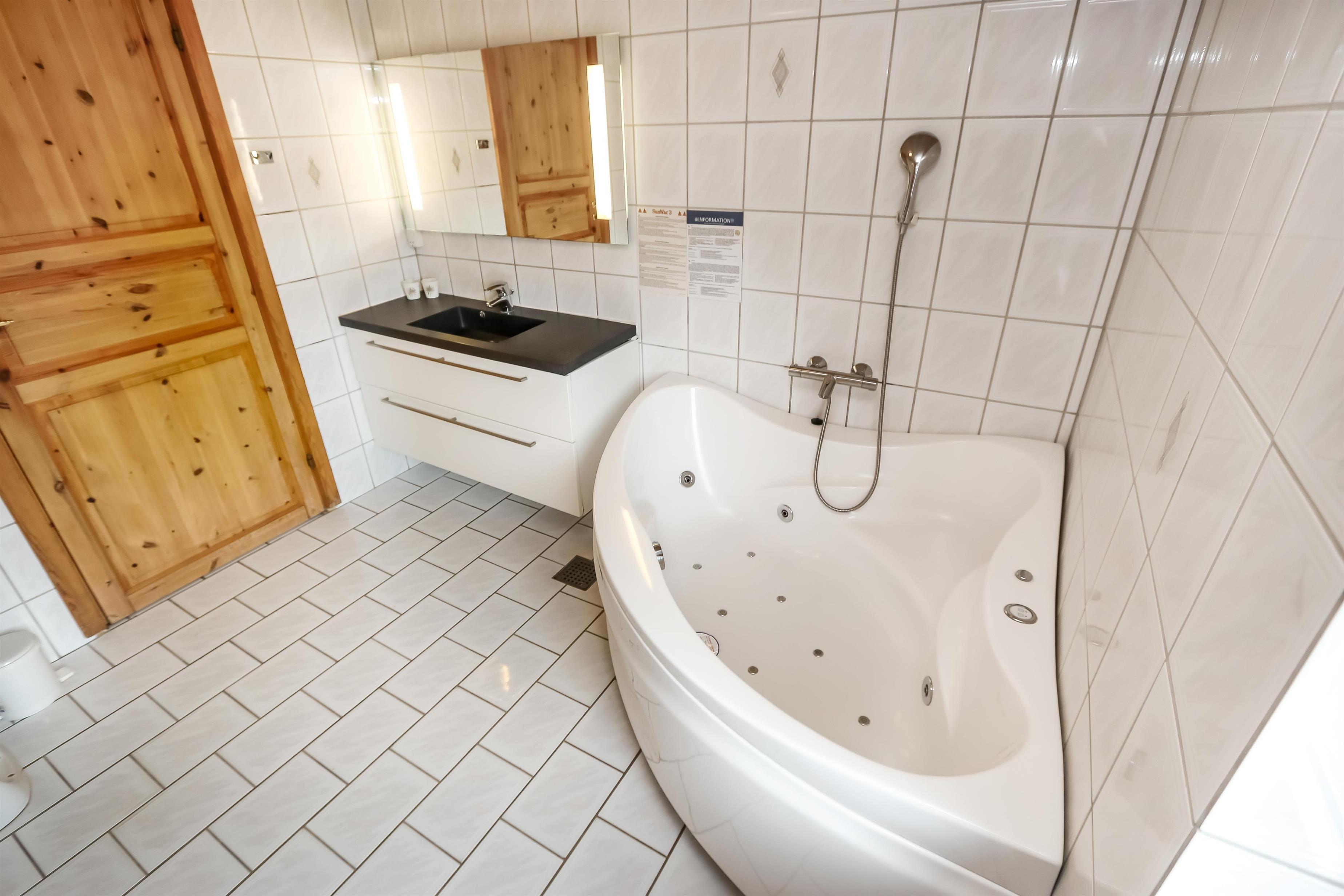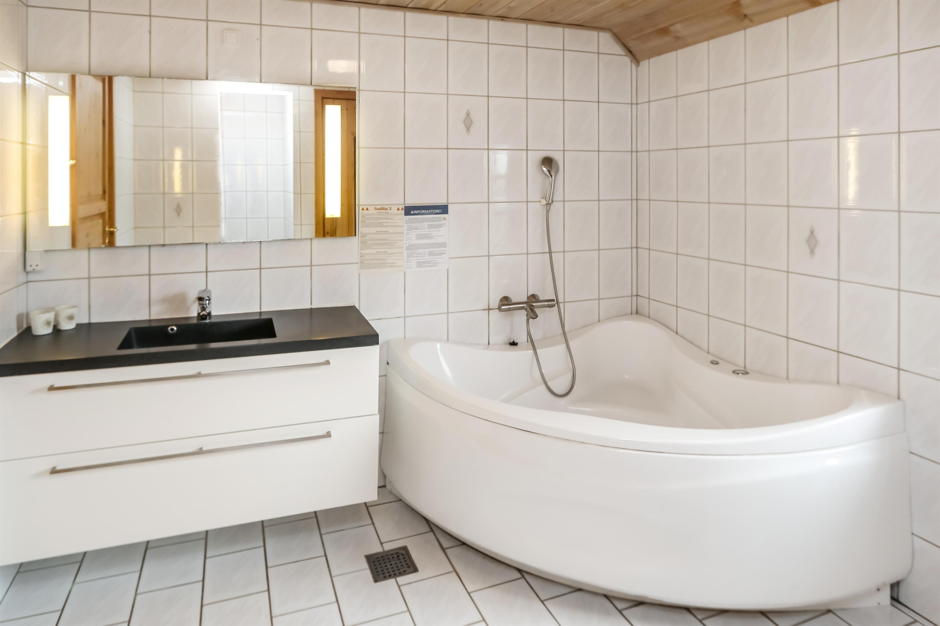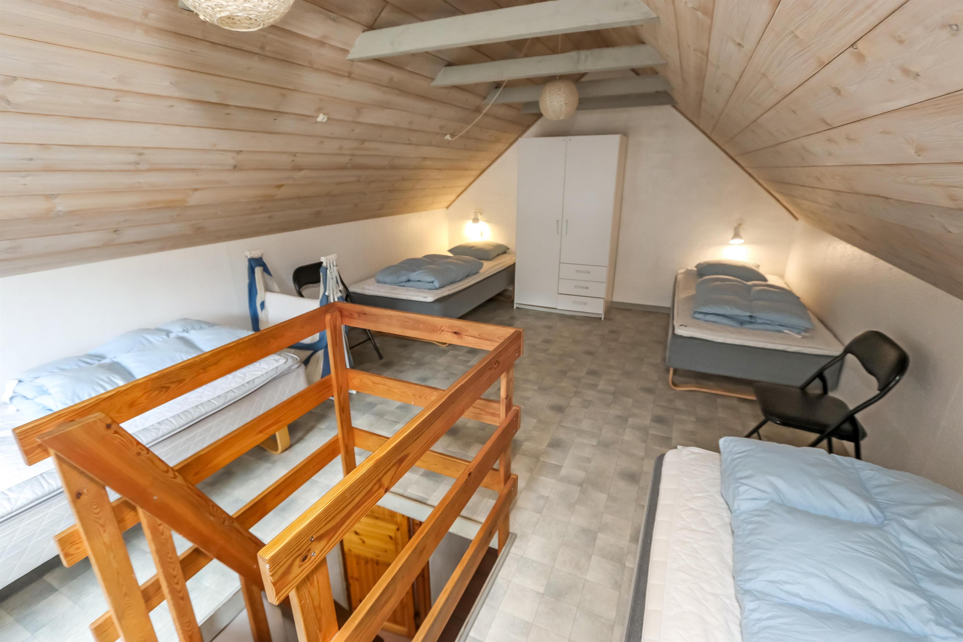 Der er to badeværelser i huset, hvoraf det ene byder på ren wellness med en skøn 2-personers spa, bruseniche og direkte adgang til sauna. Huset har fire soveværelser, herunder to med dobbeltsenge, et med to enkeltsenge og et stort værelse på første sal, der nås via en stejl trappe og har fire sovepladser. Der findes også vaskemaskine, barneseng og høj barnestol, så både store og små nemt kan finde sig til rette. Udendørs kan børnene glæde sig over både sandkasse og gynge, mens de voksne nyder, at huset naturligvis har gratis internetadgang.