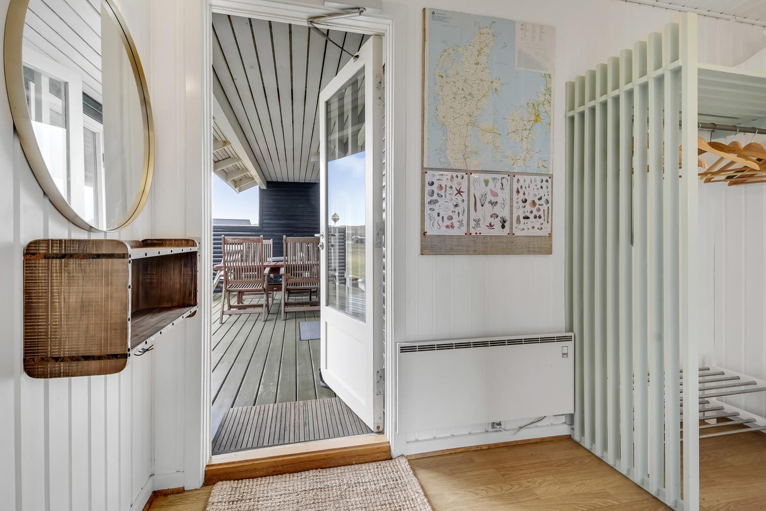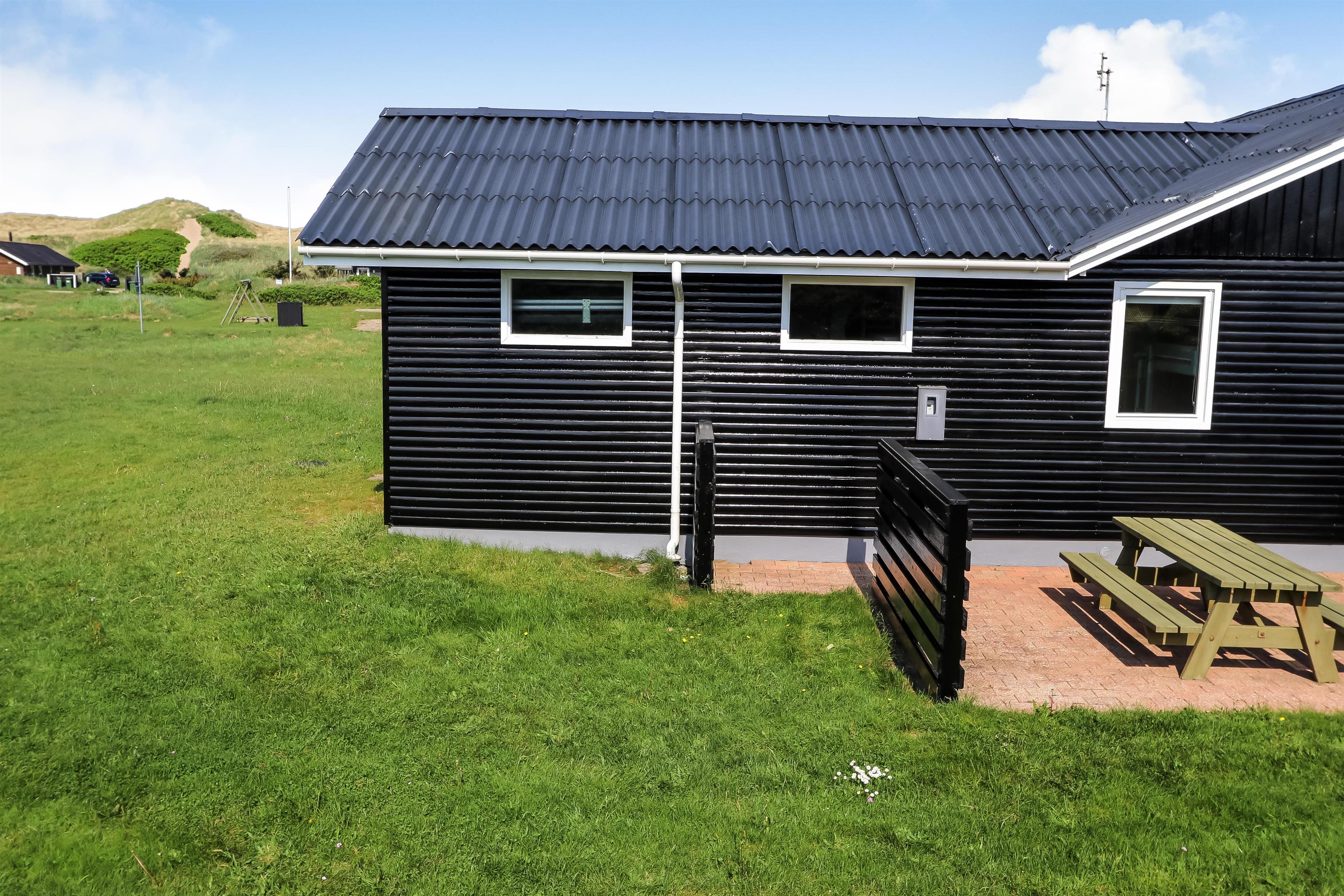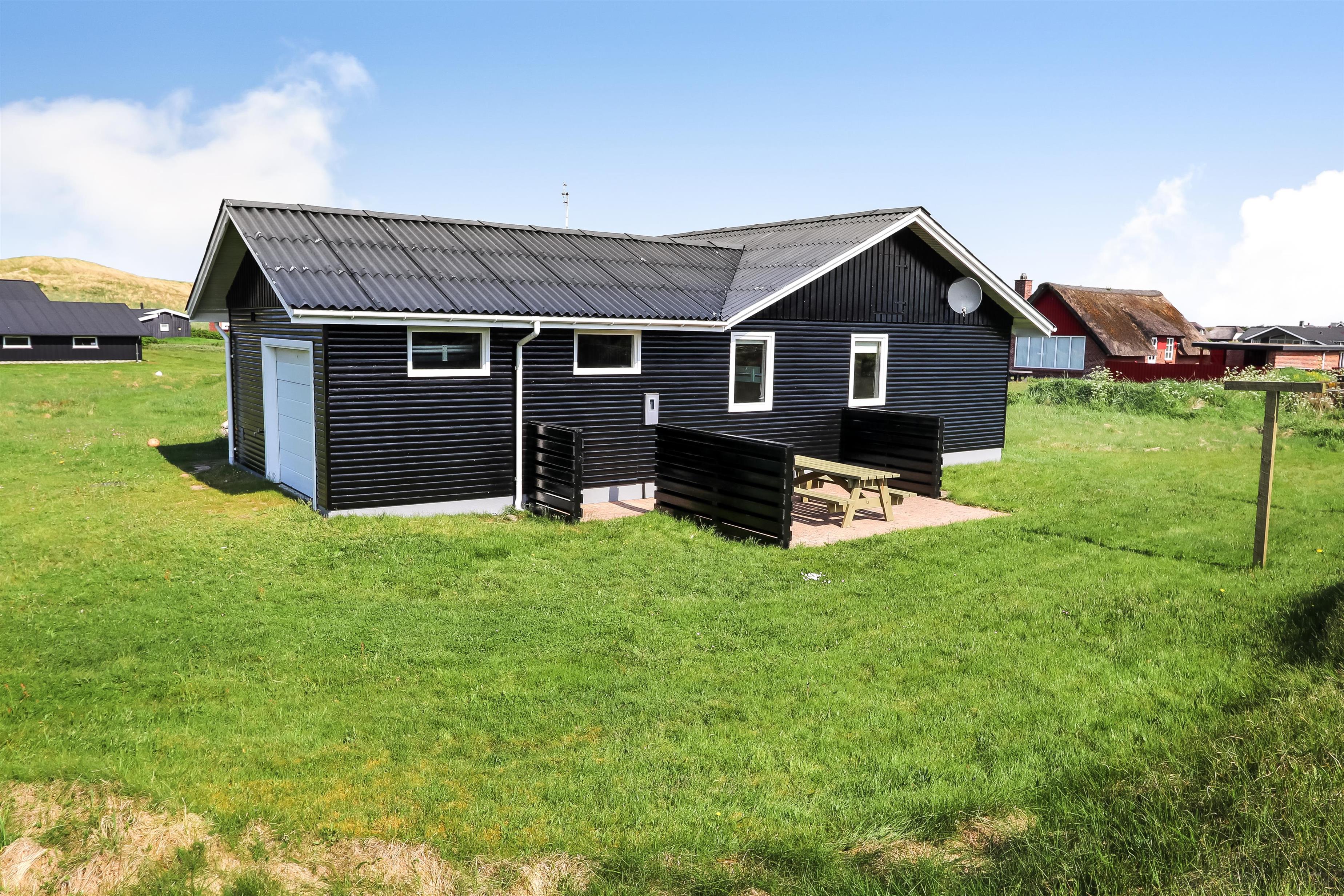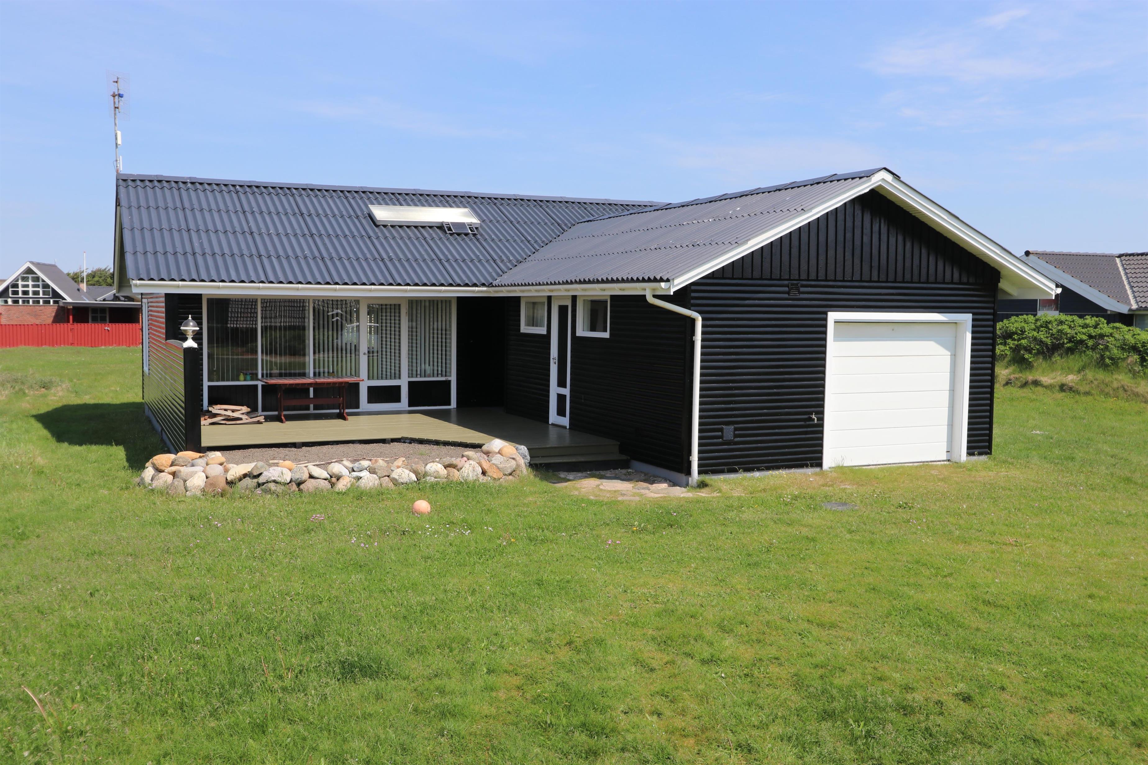 Huset ligger på en ca. 2.418 m2 stor grund. Fra opholdsstuen er der udgang til en dejlig, delvis overdækker terrasse med havemøbler, liggestole, grill og udsigt til de høje klitter. Parker bil og nyd dette charmerende sommerhus tæt ved Vesterhavet. Tænd grillen og spis aftensmaden på den dejlige terrasse til lyden af bølger der som skyller i land, lige på den anden side af de betagende klitter, som ligger ca. 150 m fra huset. Det perfekte hus til parret eller den lille familie som ønsker et godt overskueligt sommerhus tæt ved havet.