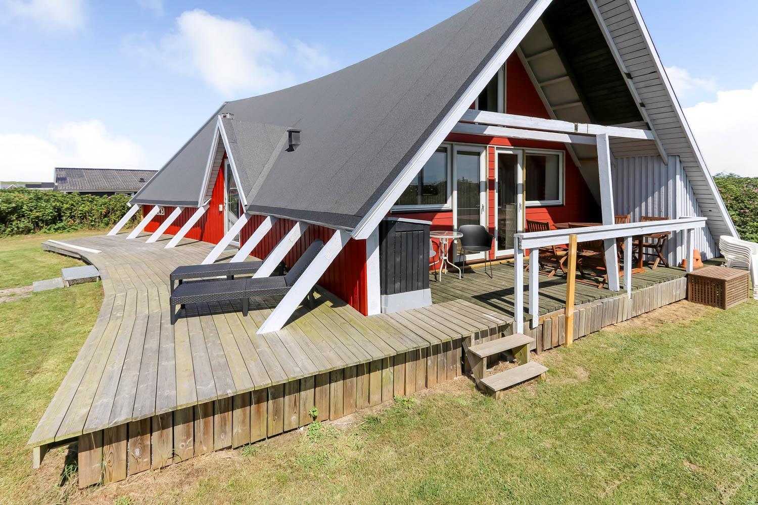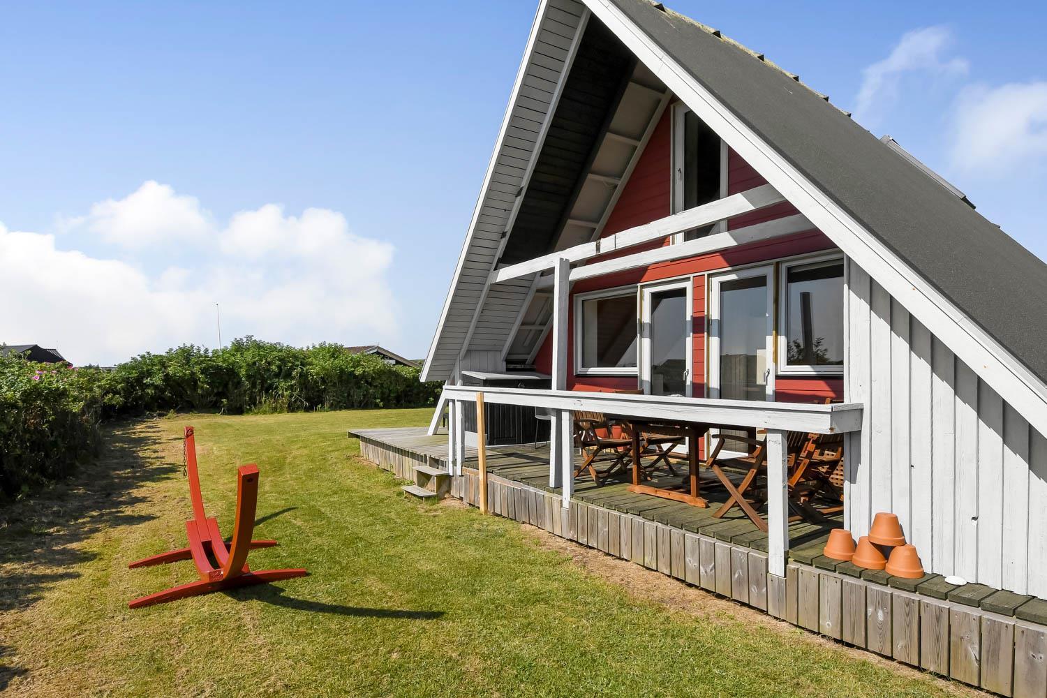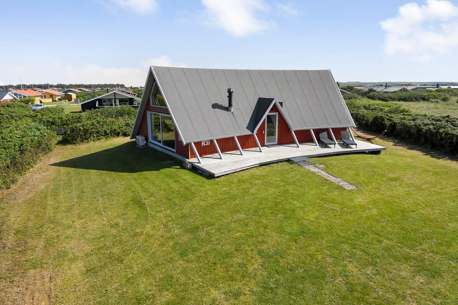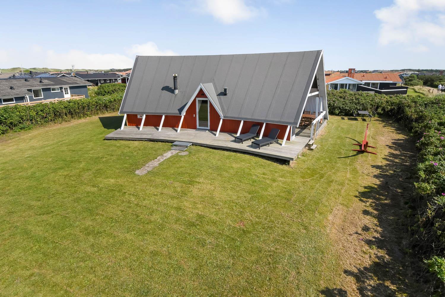 Delvis renoveret, hyggeligt indrettet, feriehus i træ med træterrasse. Huset har sin helt egen charmerende byggestil. Beliggende på sin 1.200 m2 store naturgrund, kun 400 meter fra Vesterhavet og kun 250 m fra Ferring Sø. Her er desuden gratis trådløs internetadgang (fiberforbindelse). Fra huset er der udsigt til klitterne, og fra 1. salen er der udsigt ud over Ferring Sø. Huset er ideelt til parret eller den lille familie.